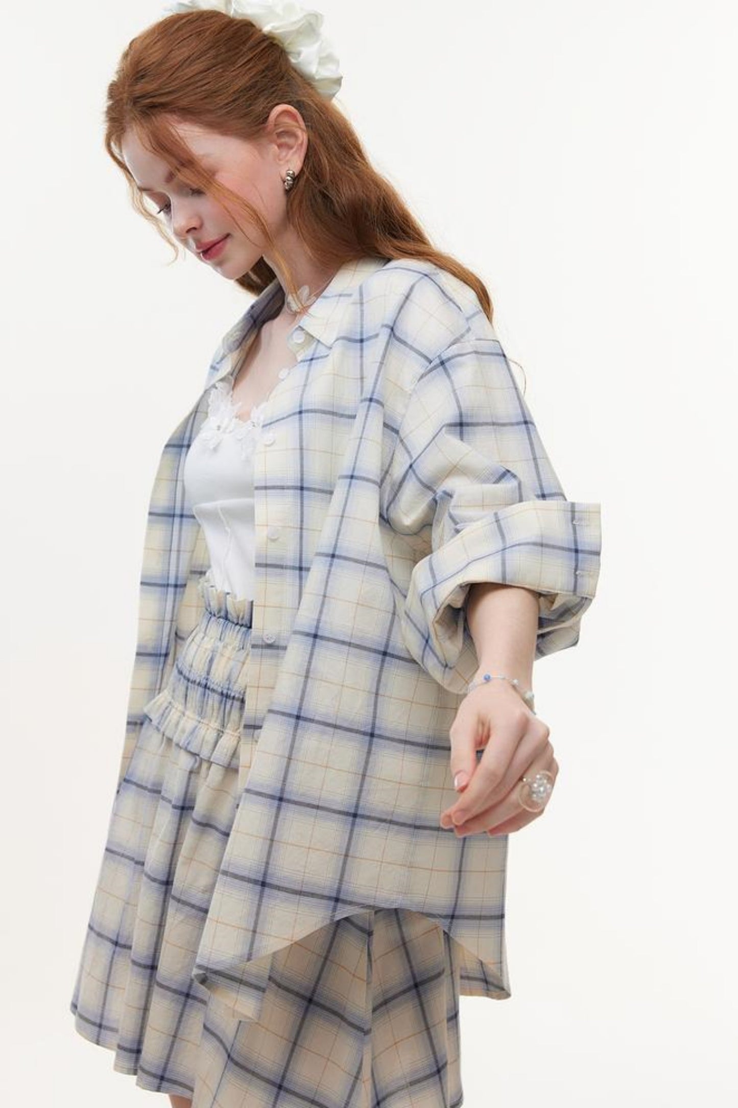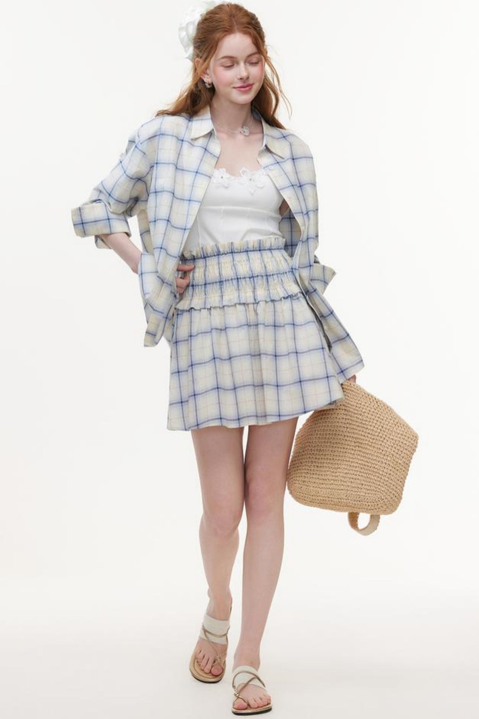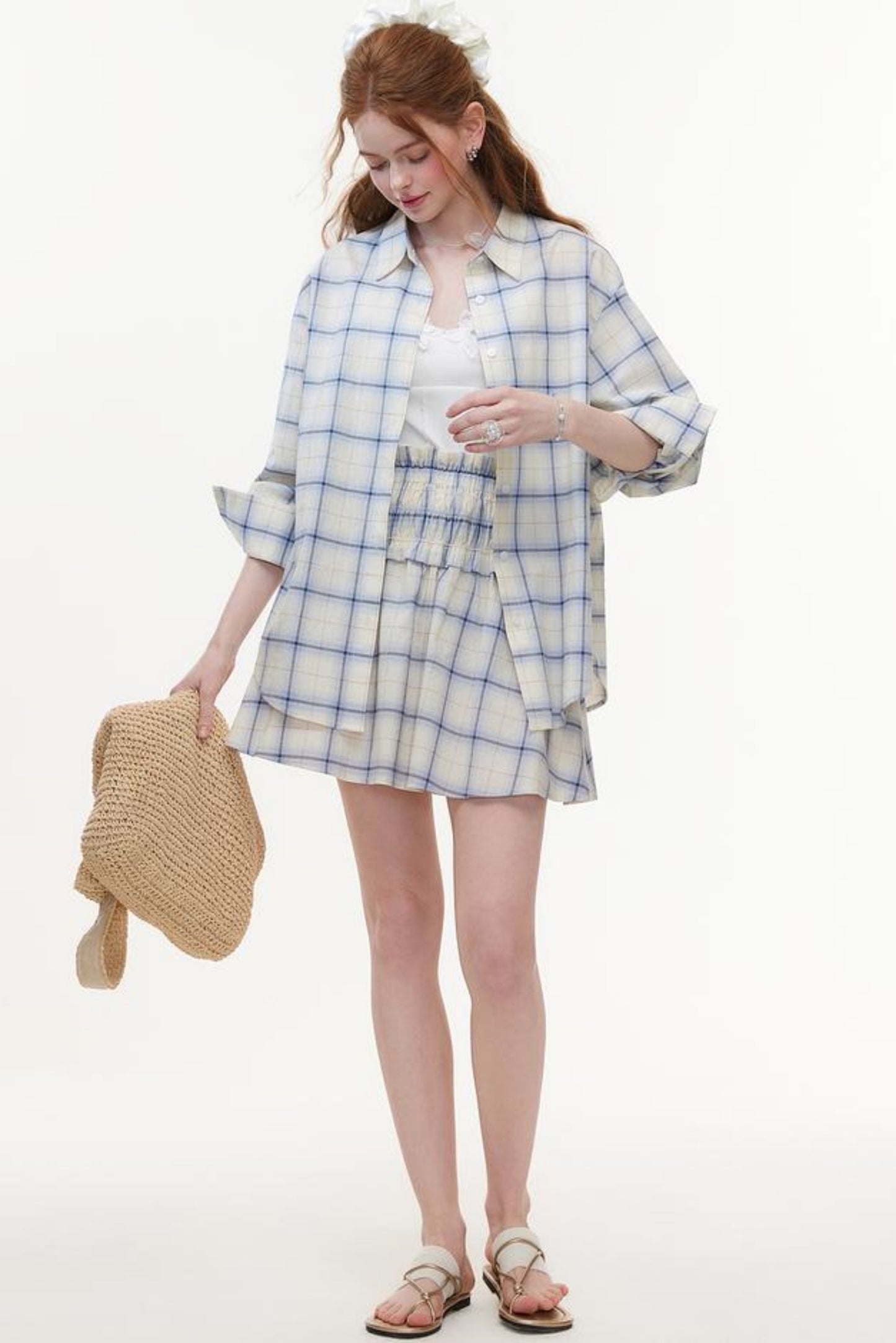 Long-Sleeve Cotton Shirt & Midi Skirt Set-Up
