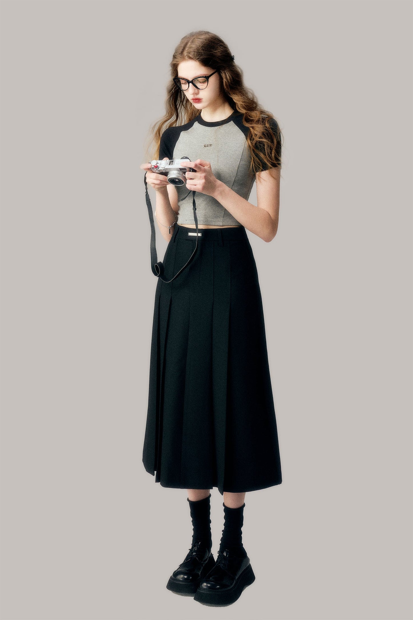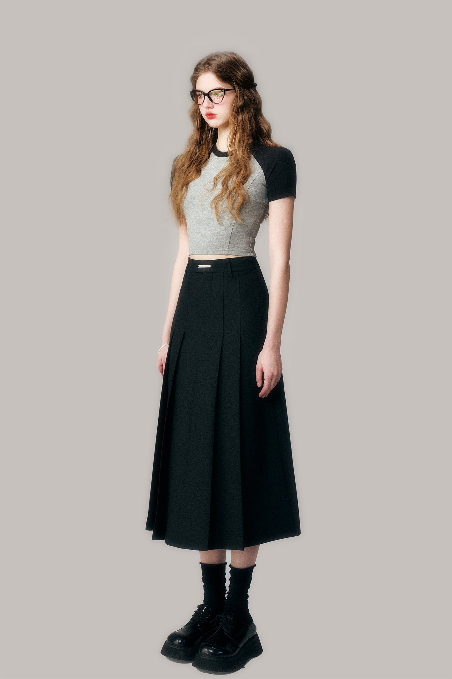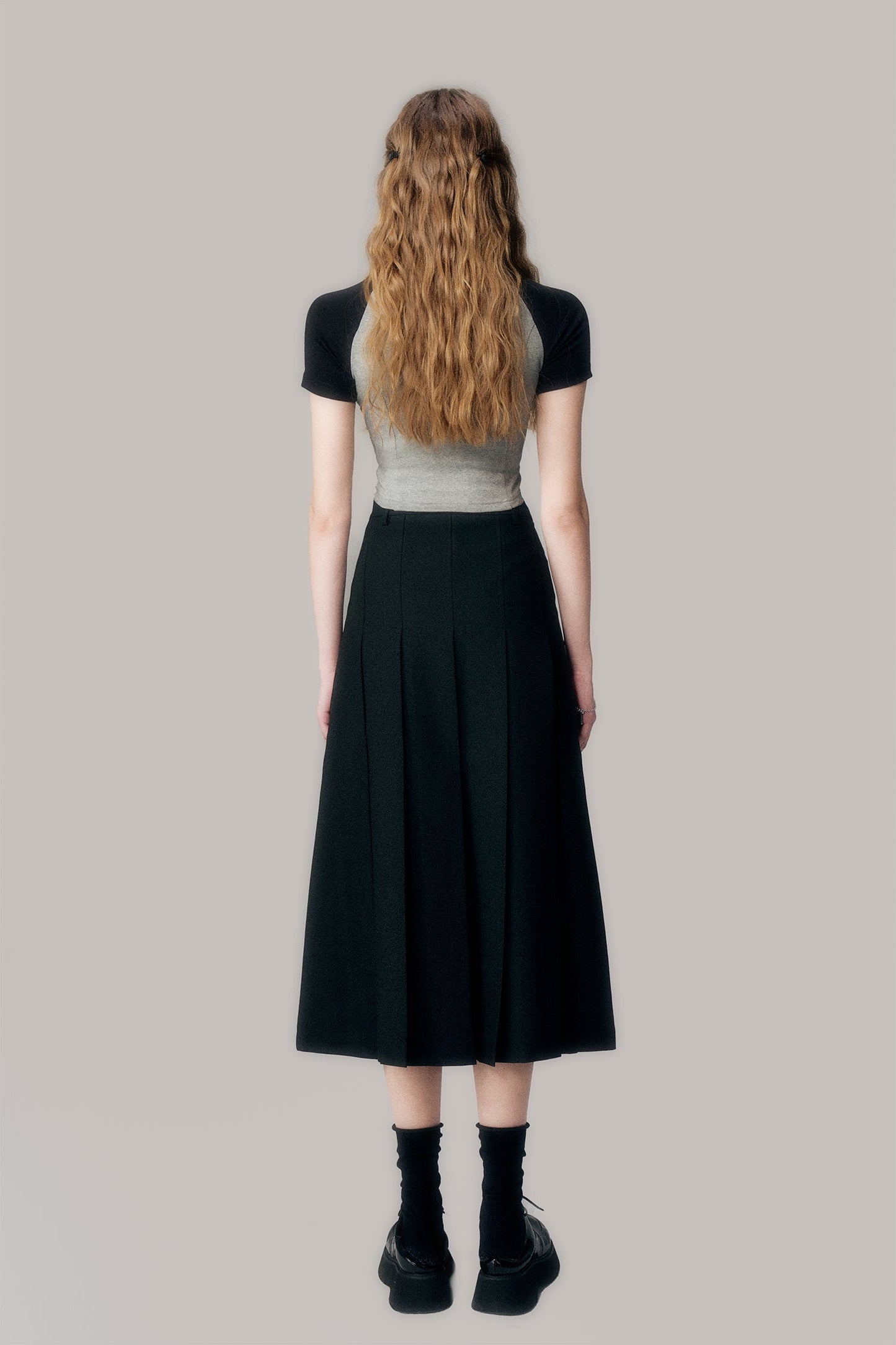 Black Pleated Long Skirt