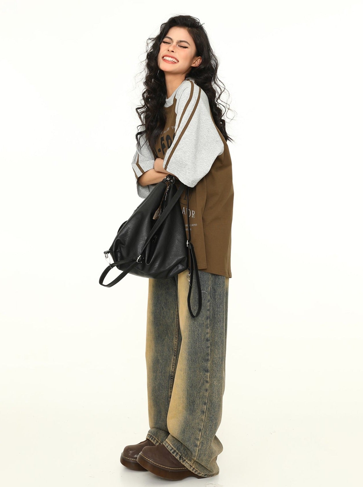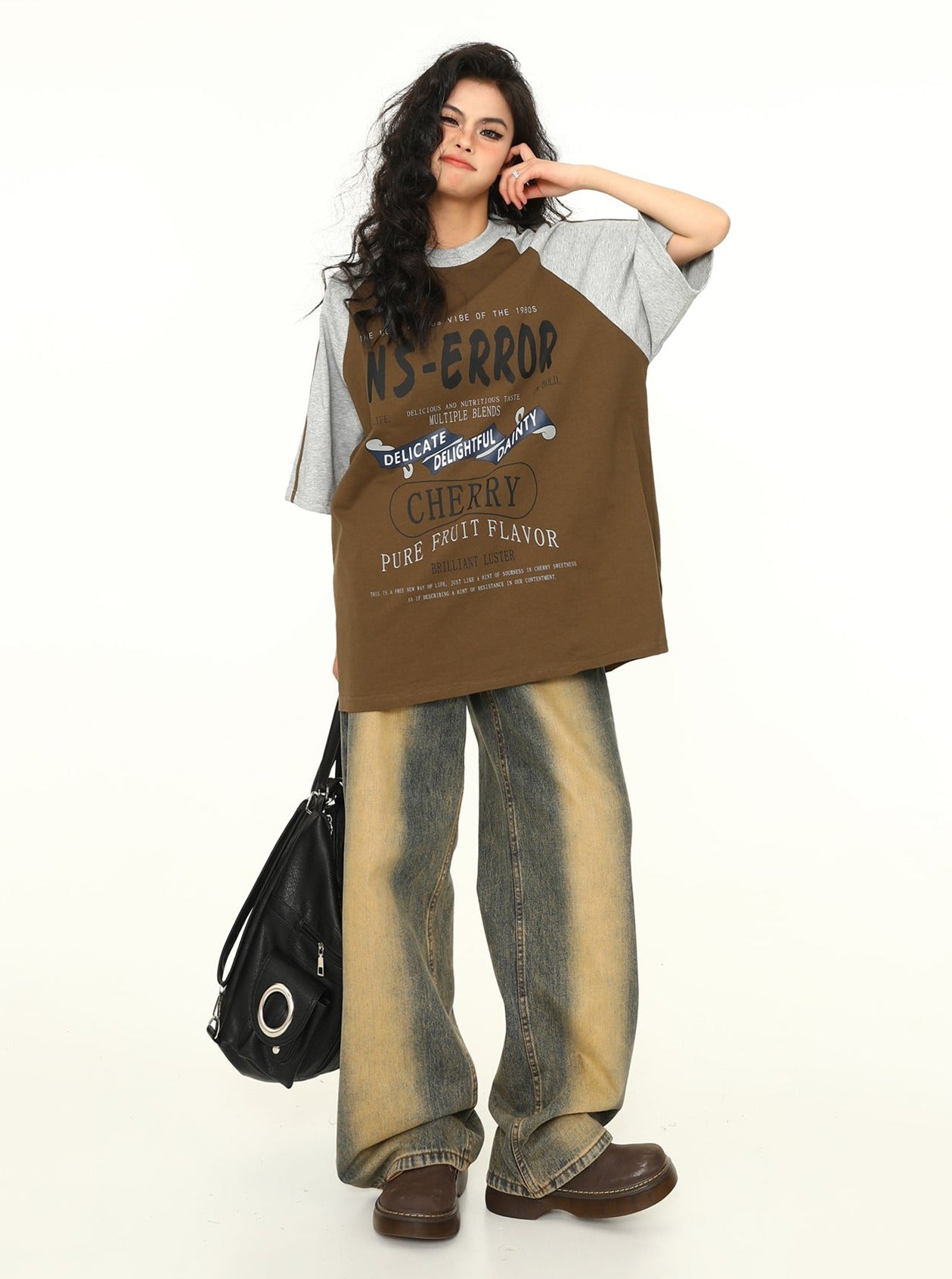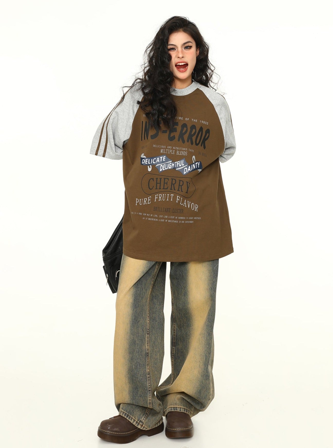 Maillard Stitching Letter Print Trendy Top