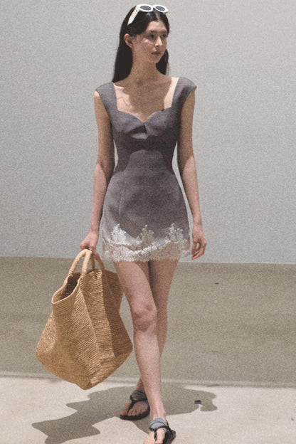Nightfall Gingham Lace Mini Dress