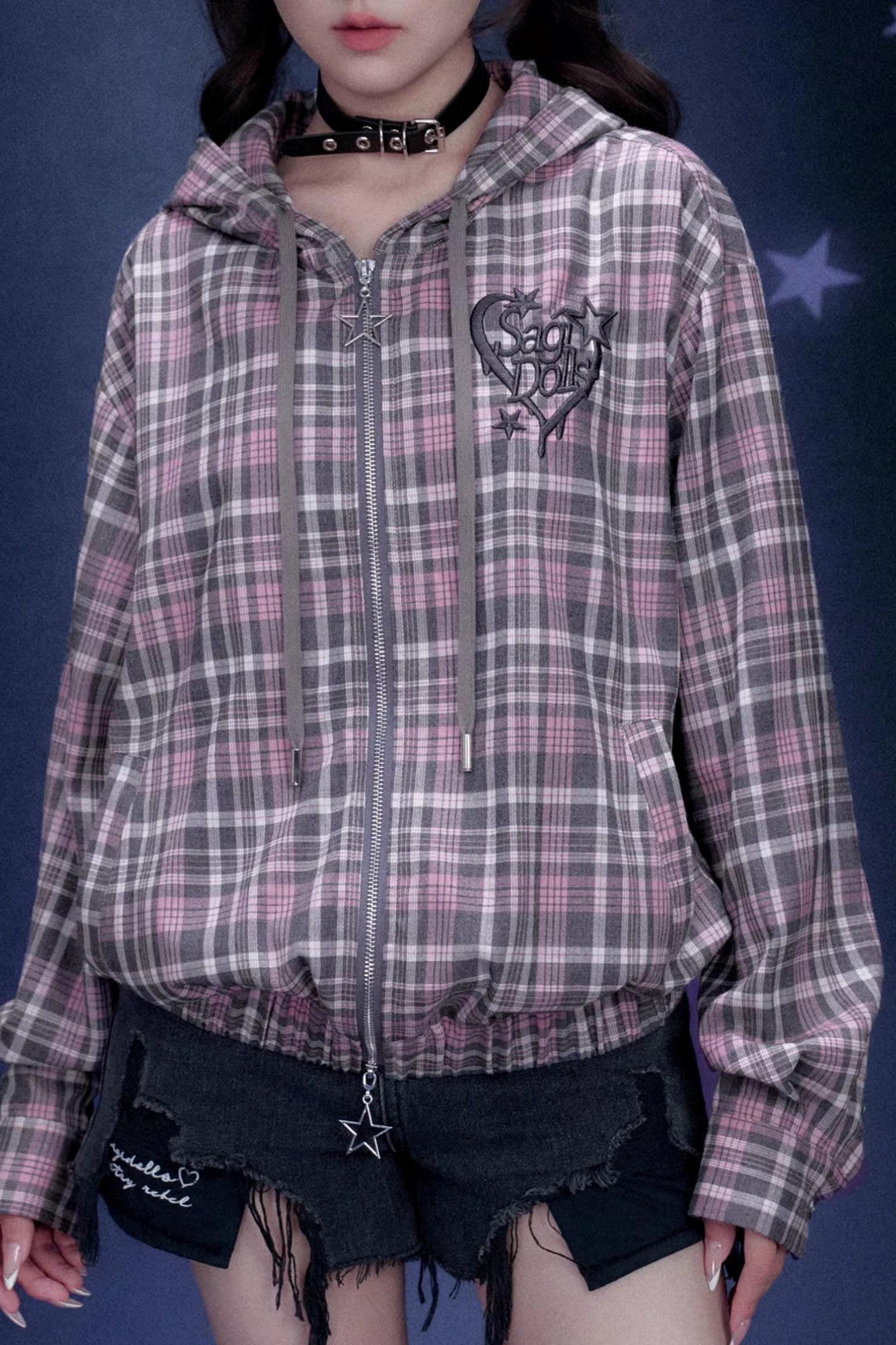 Pink Plaid Hooded Jacket