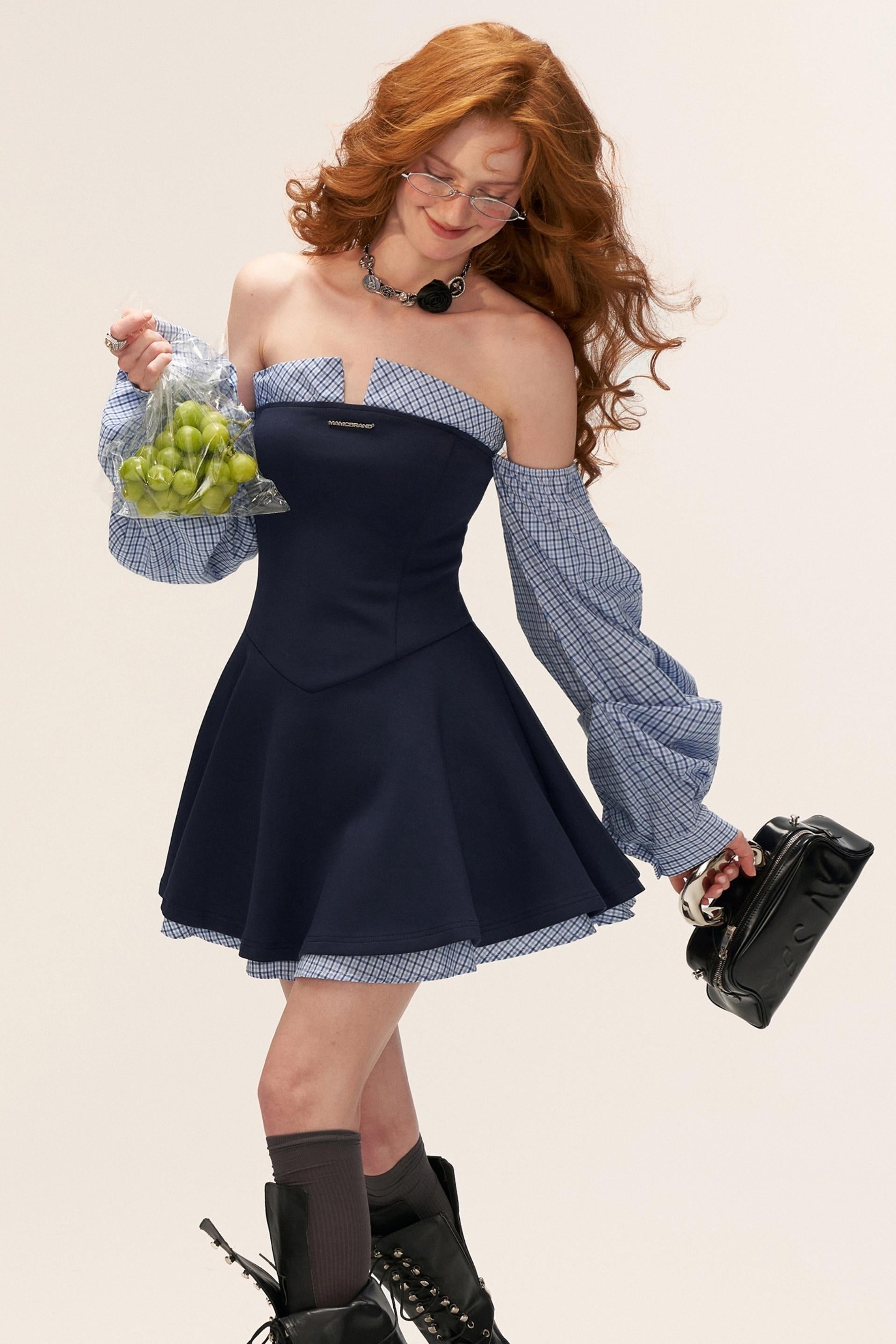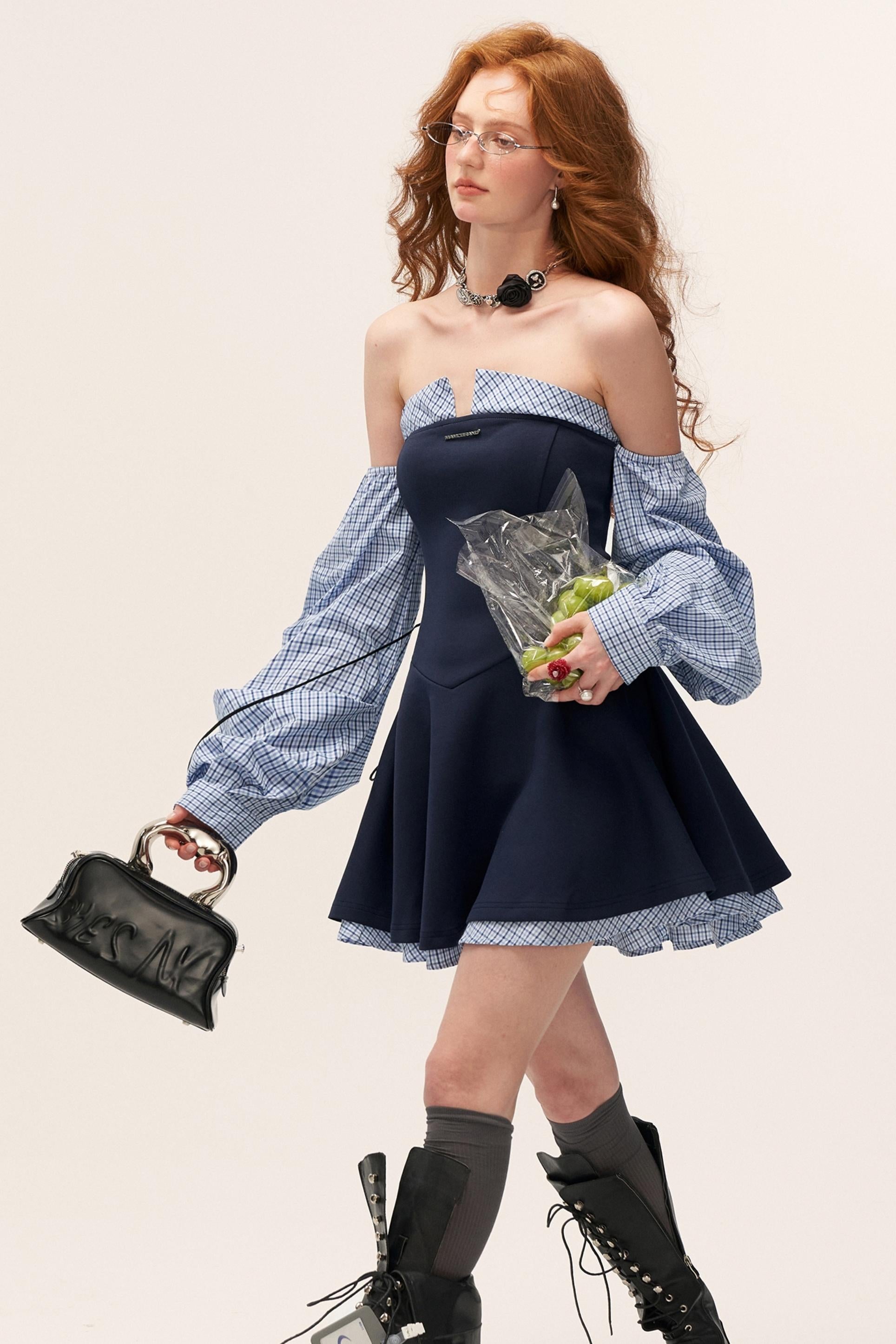 Plaid Lantern Sleeve Dress