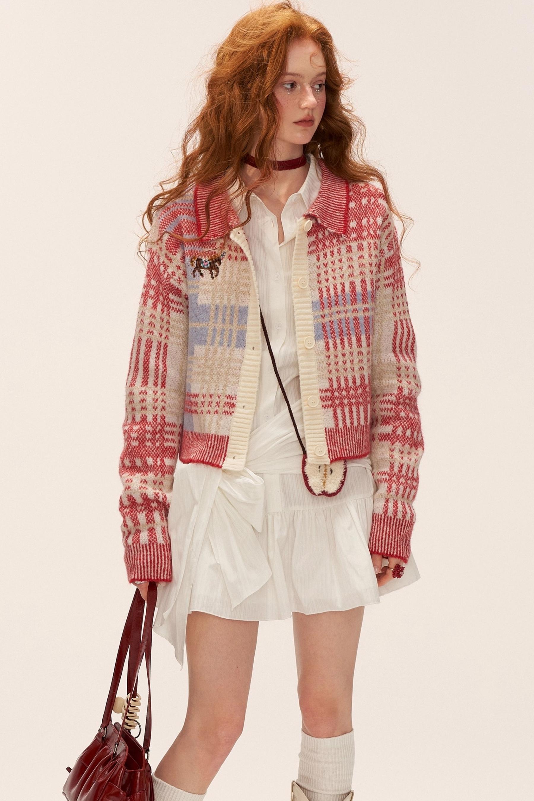 Plaid Red Knit Cardigan