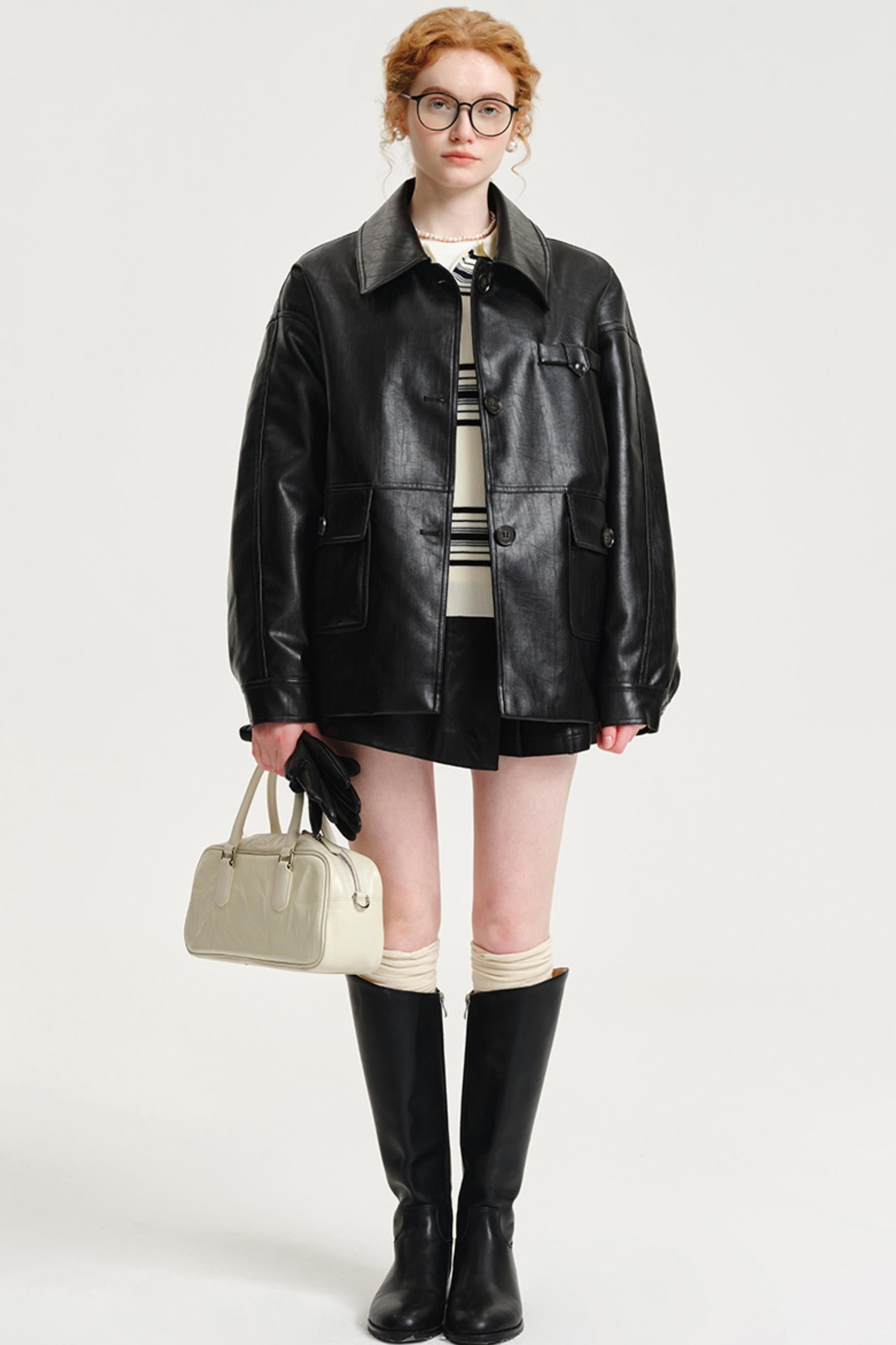 Plus Lapel Leather Jacket