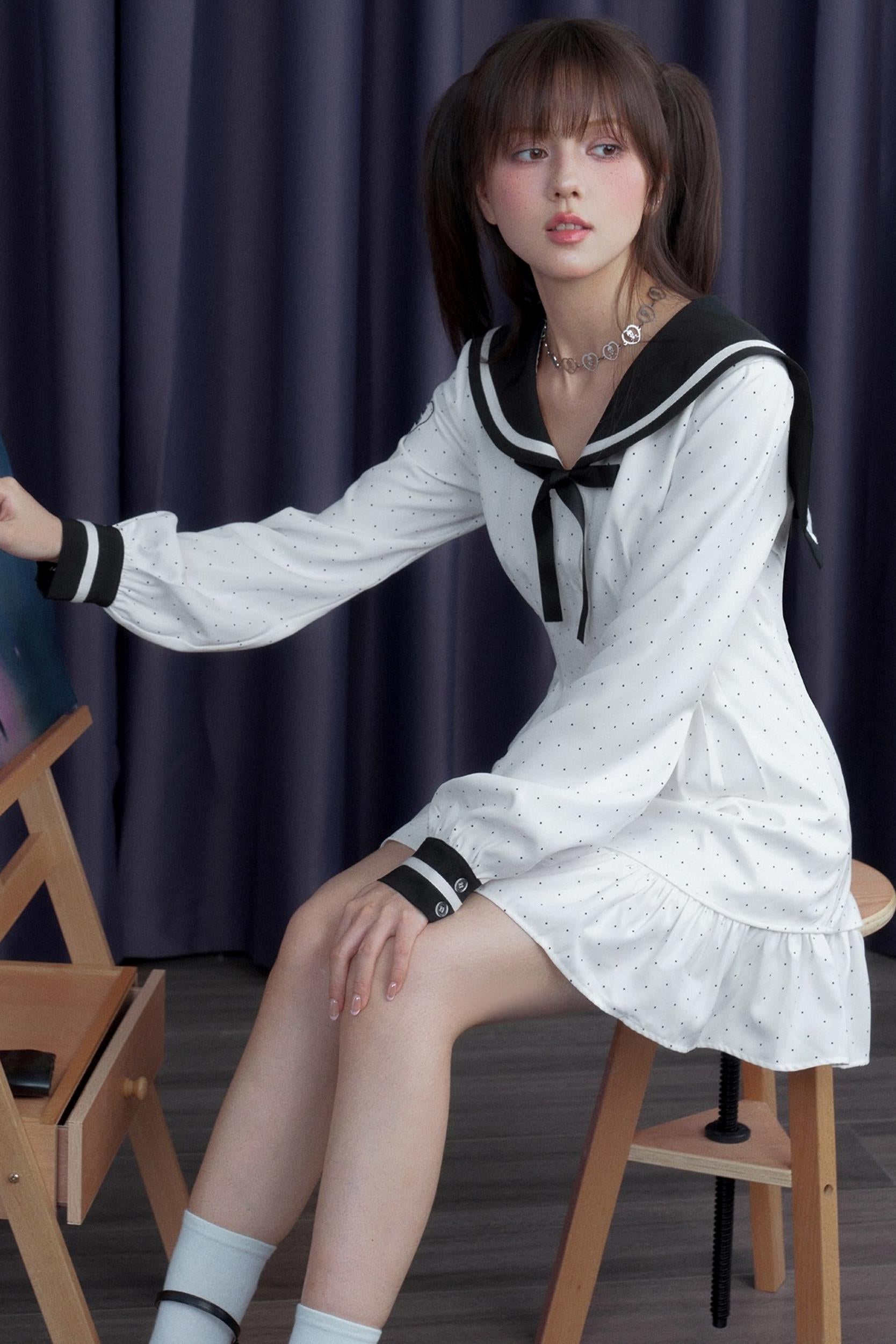 Polka Dot Sailor Neck Dress