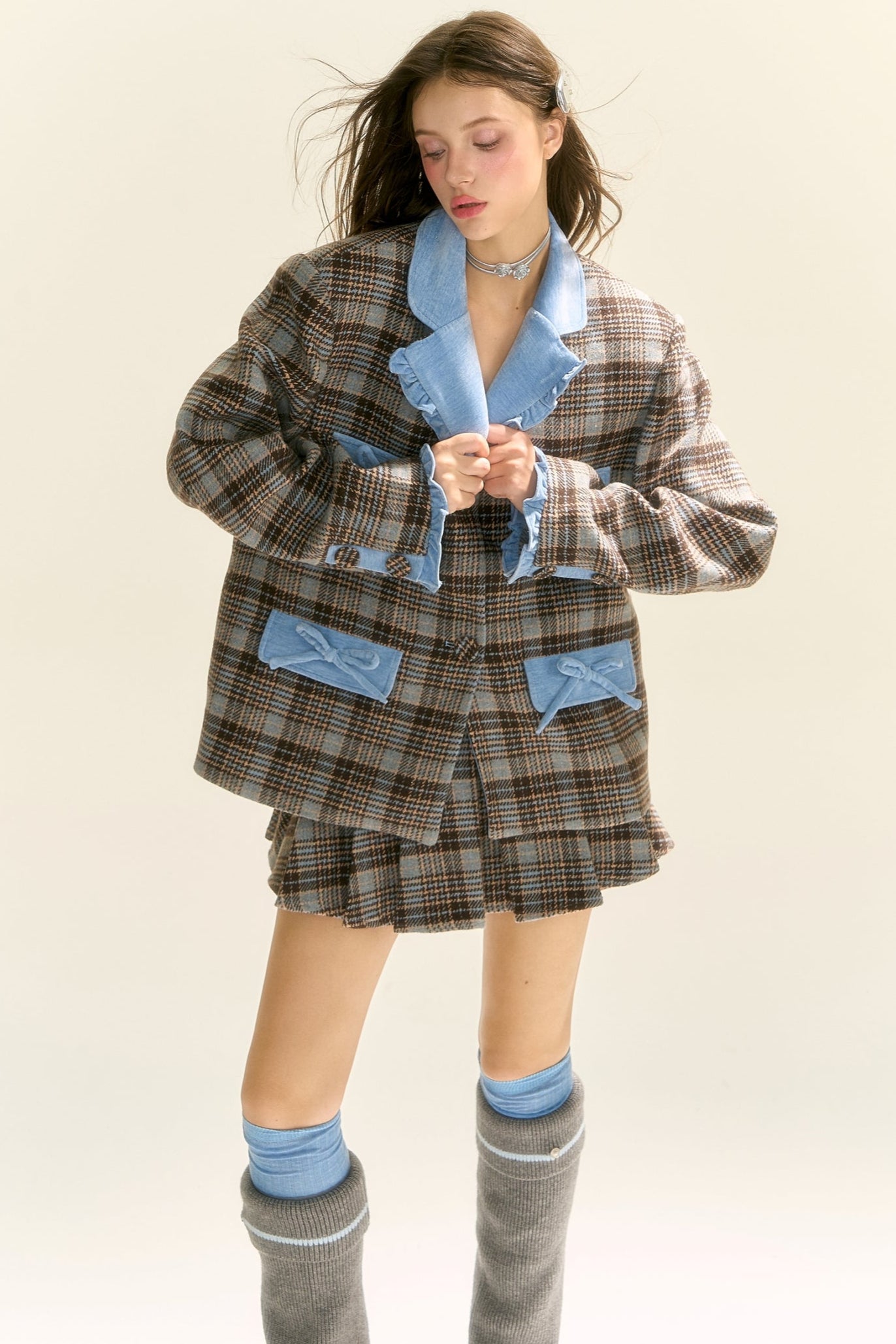 Preppy Checked Panelled Blazer Set-Up