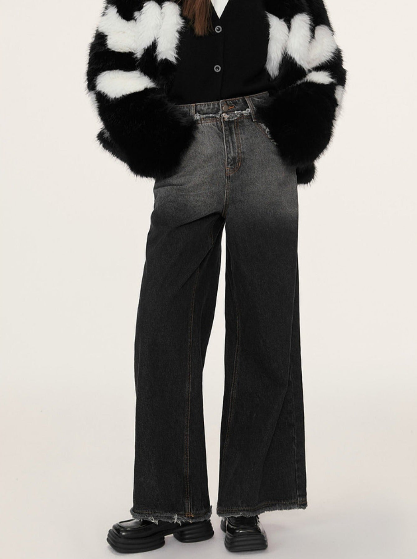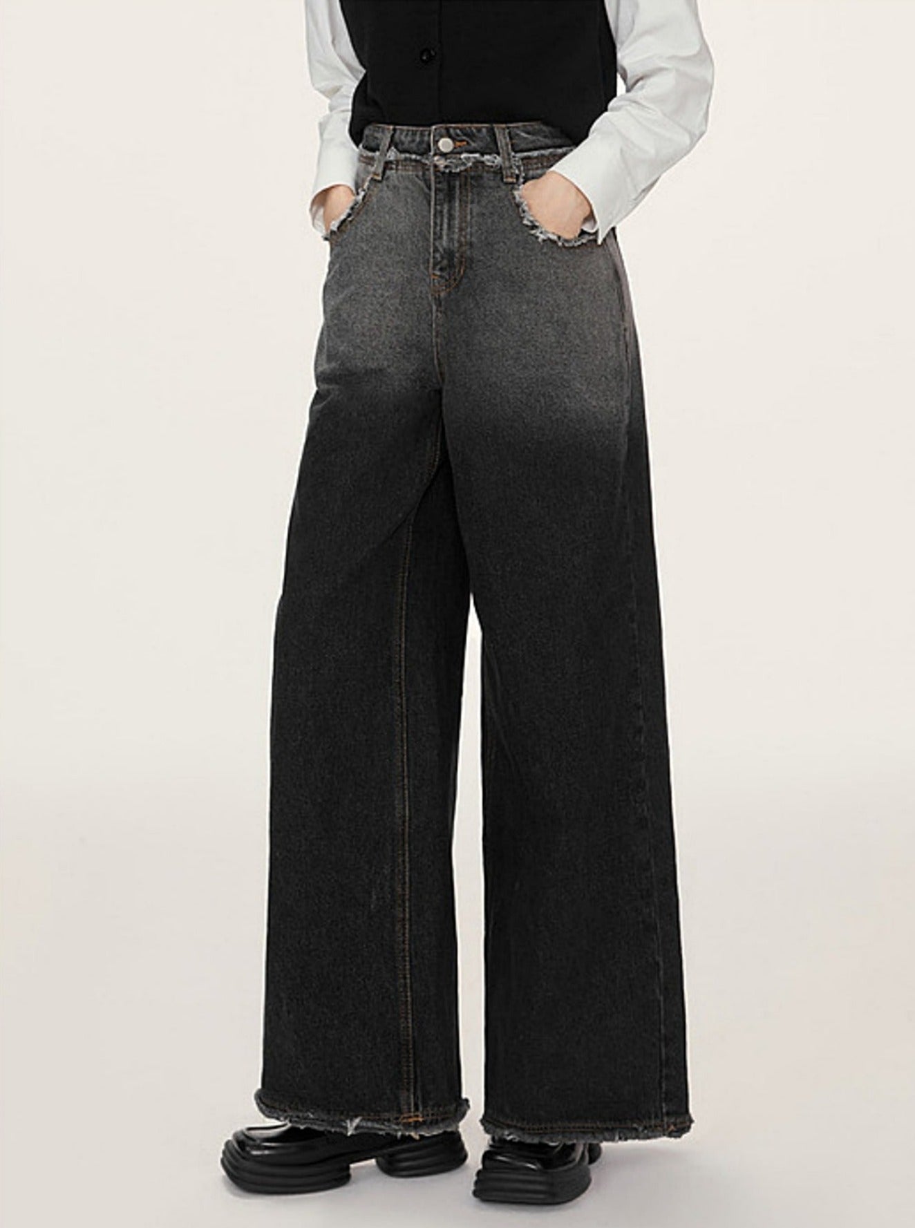 Raw Edge Gradient Wide-Leg Jeans Pants