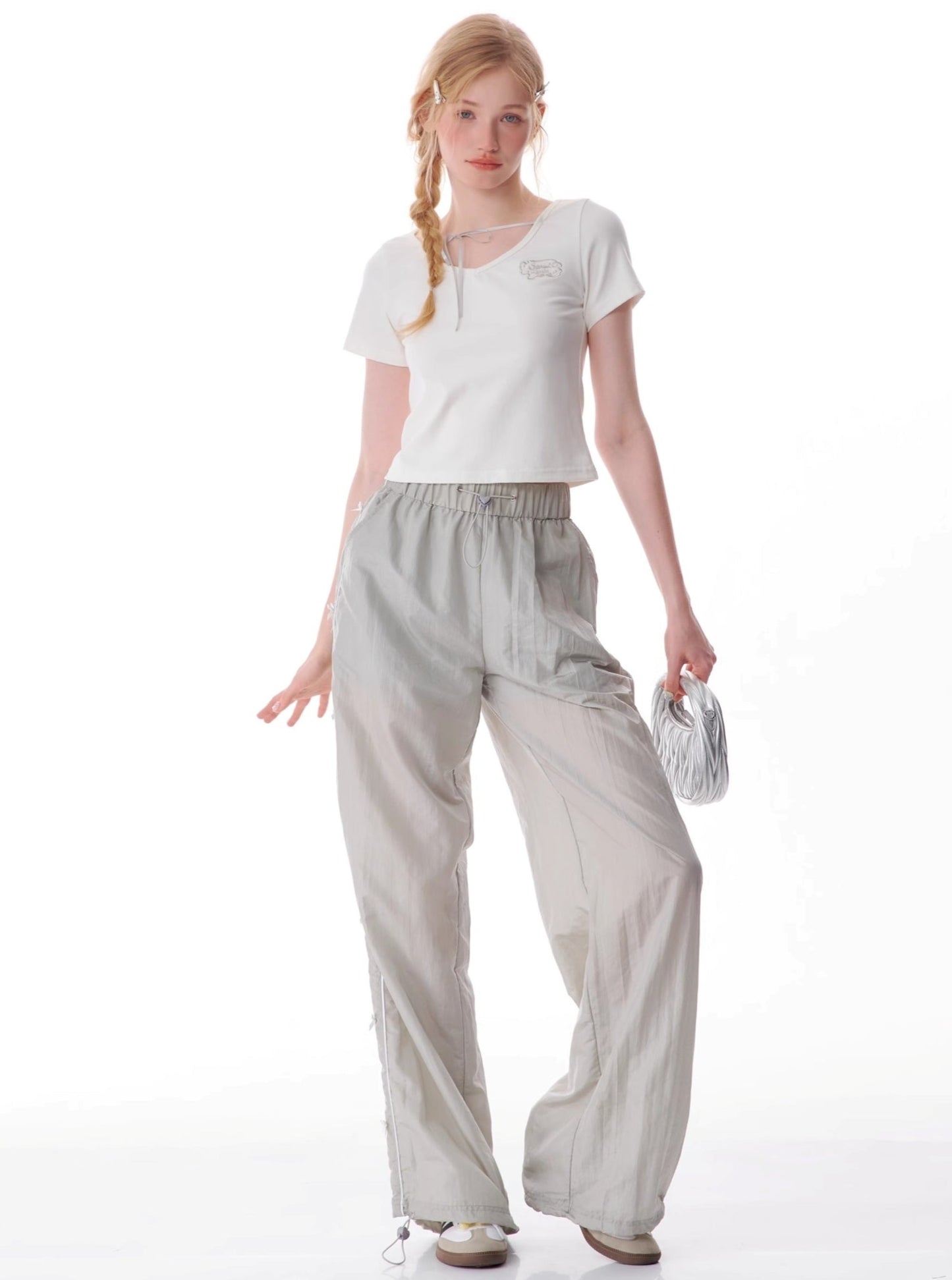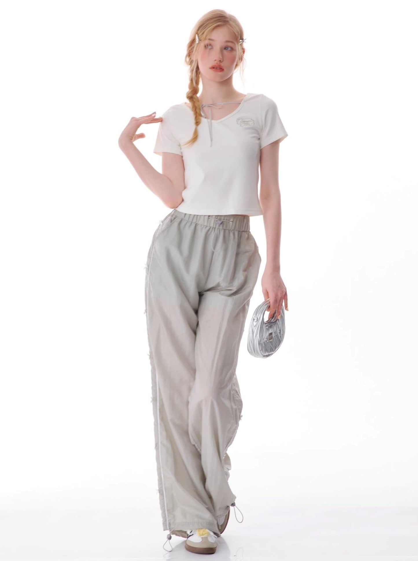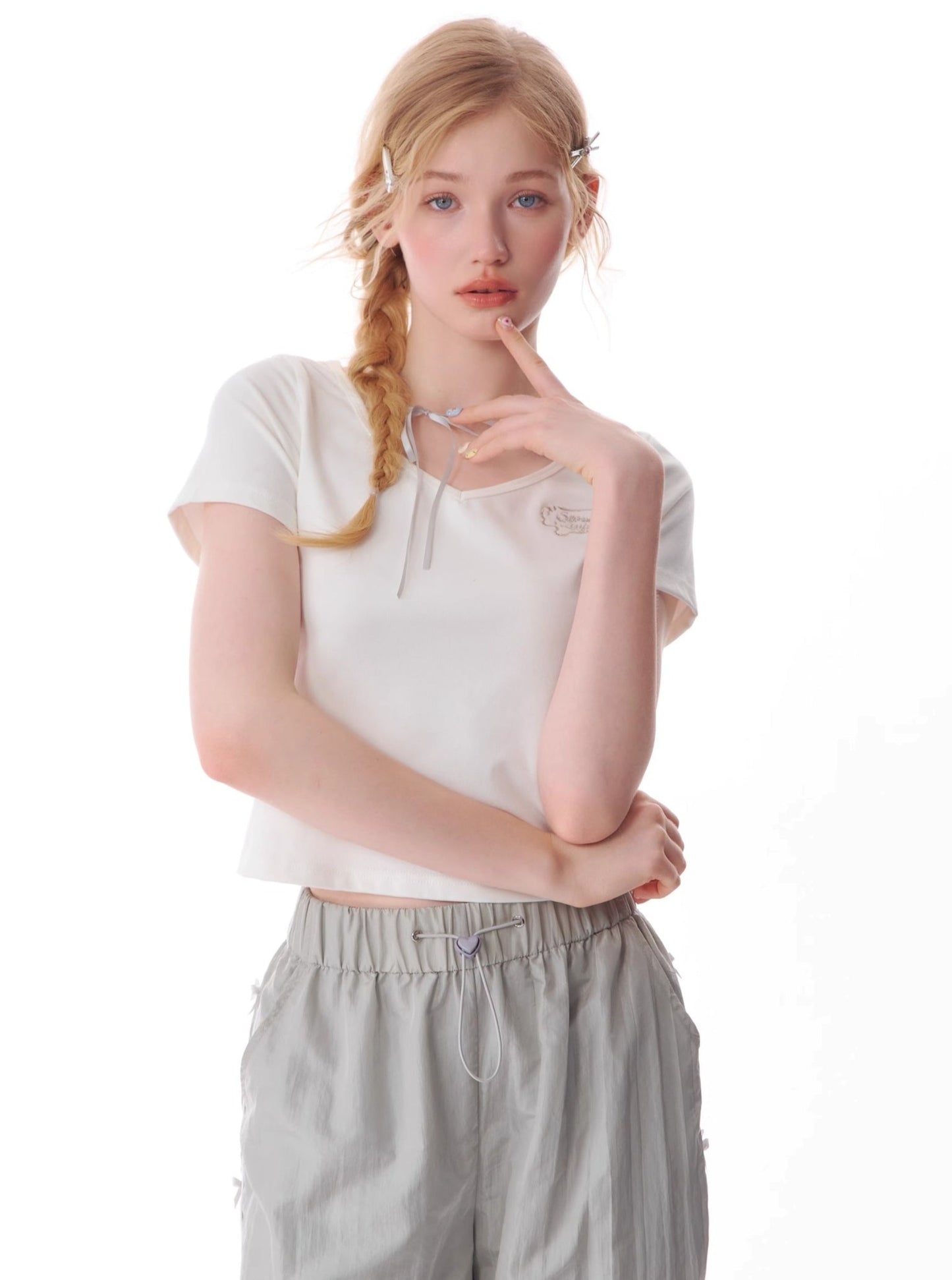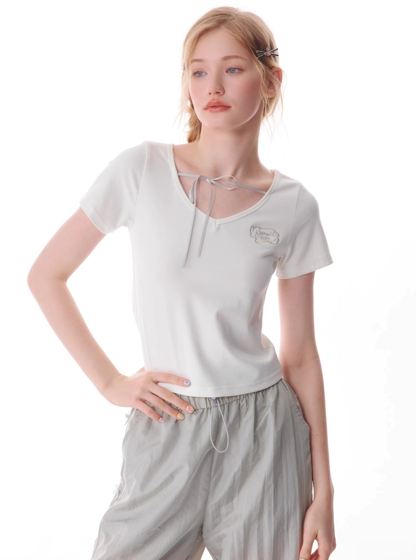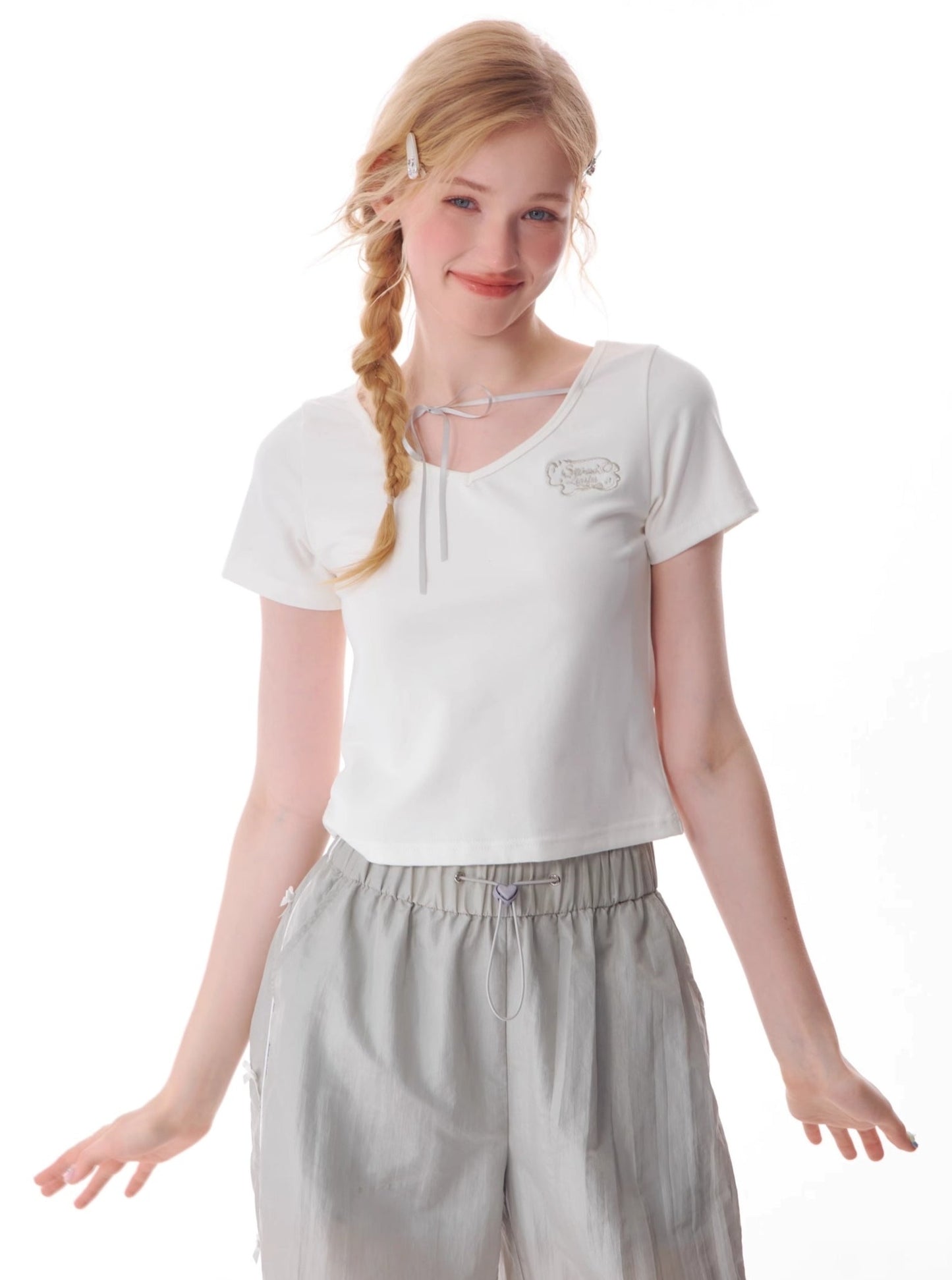 Retro Lace-Up V-Neck T-Shirt