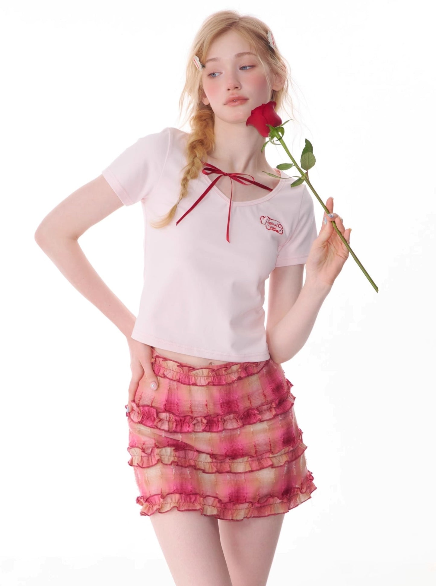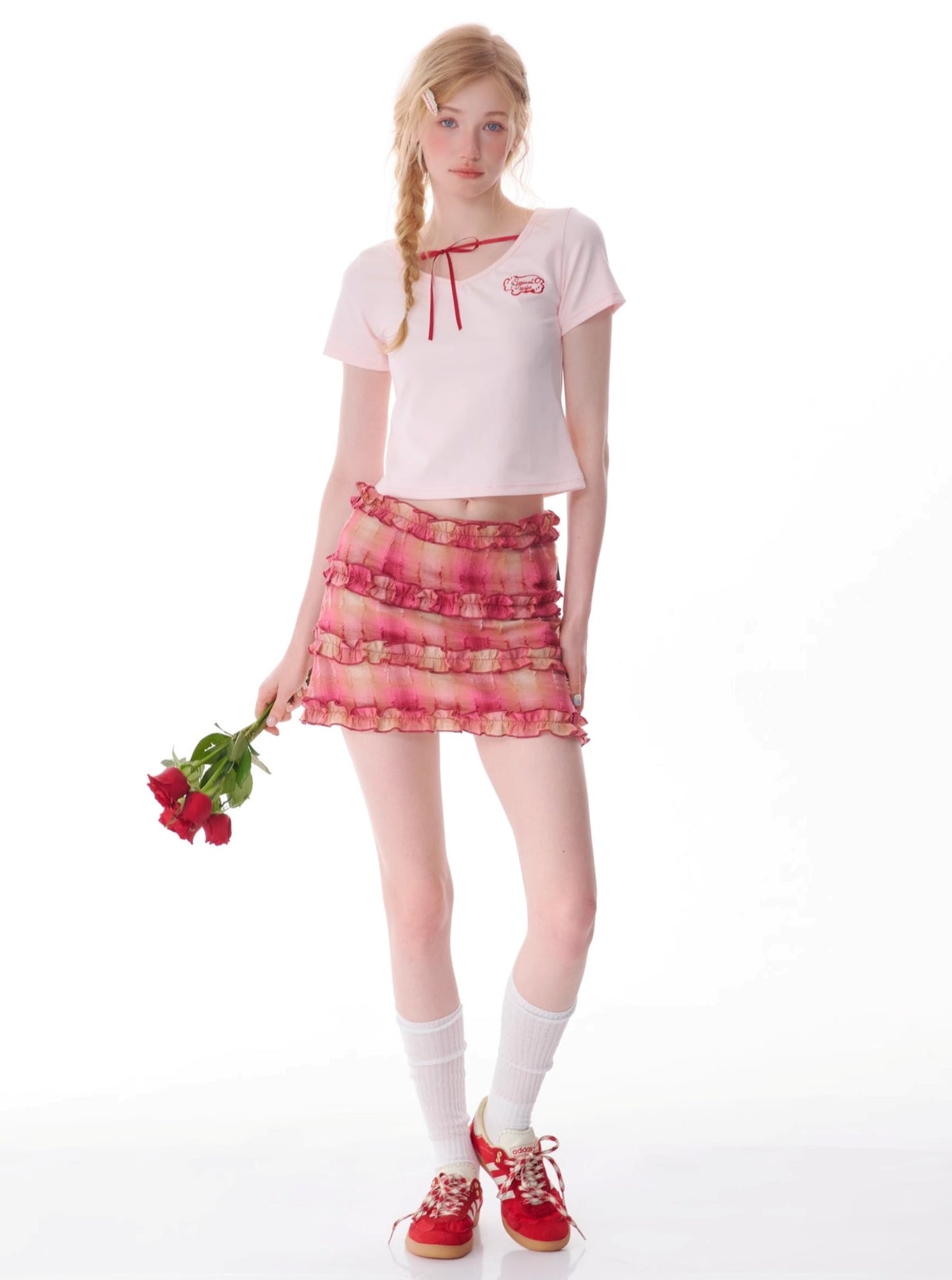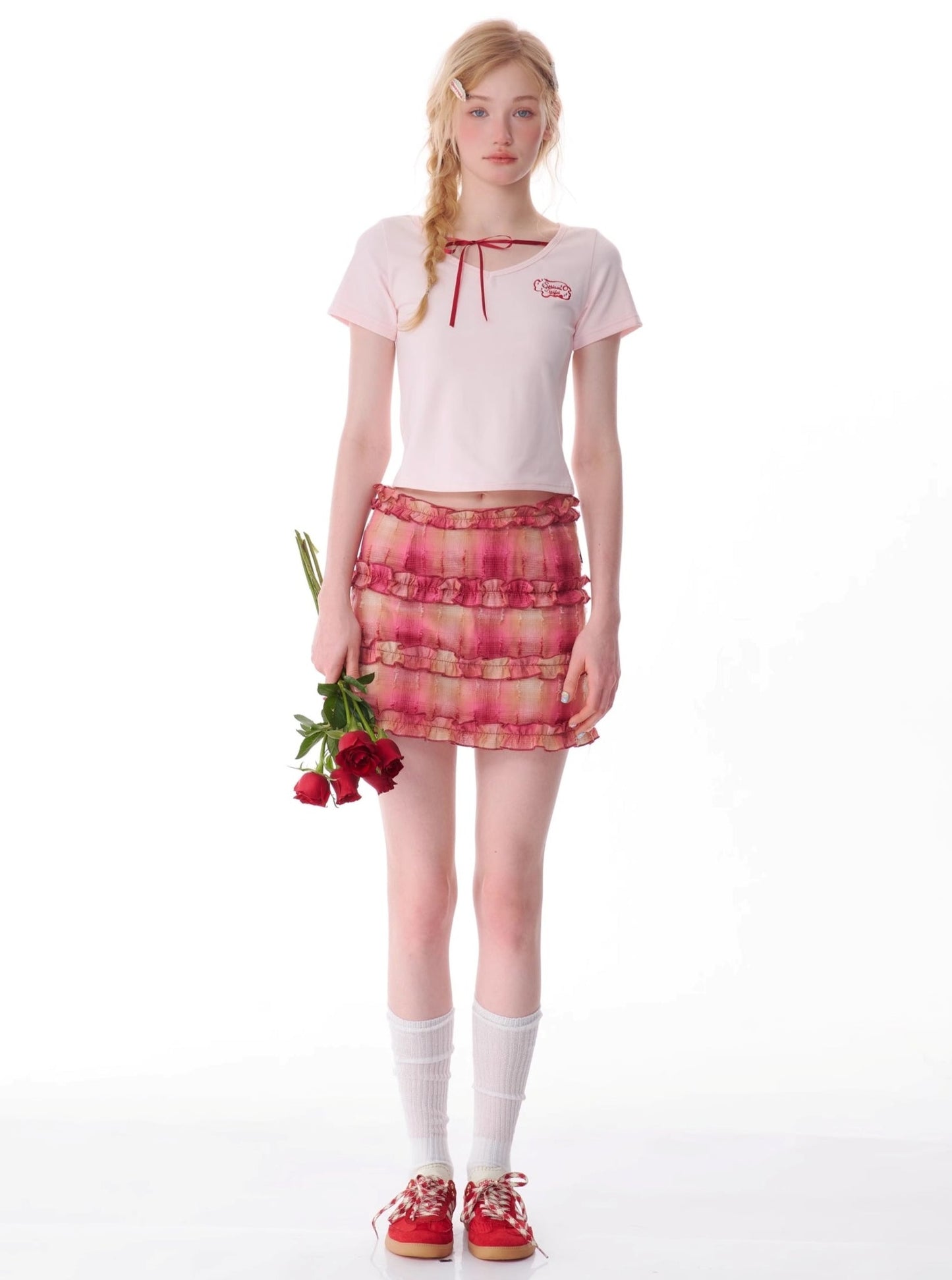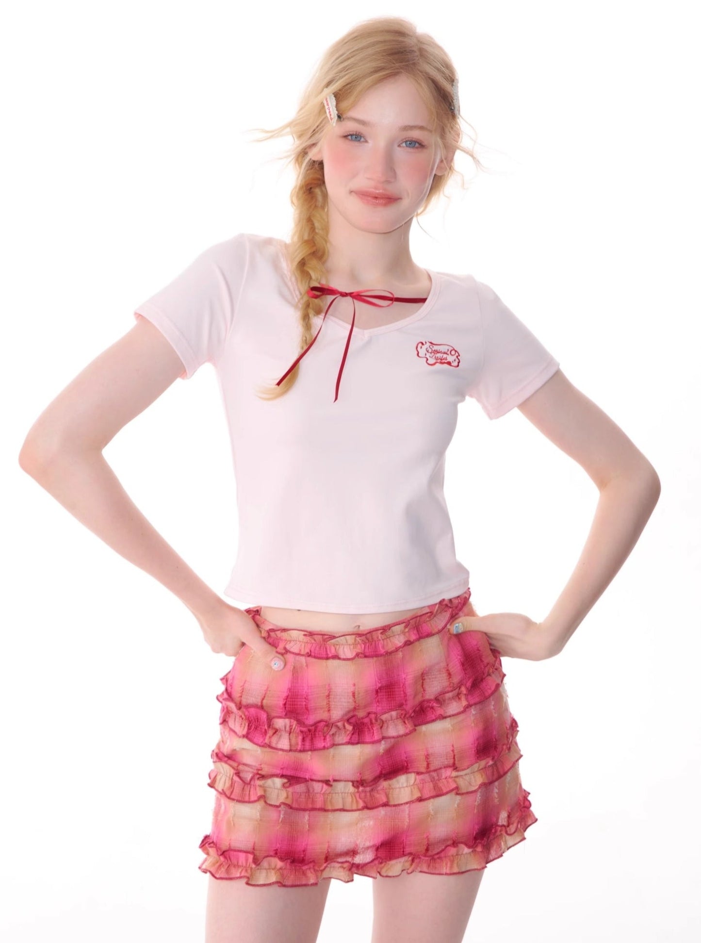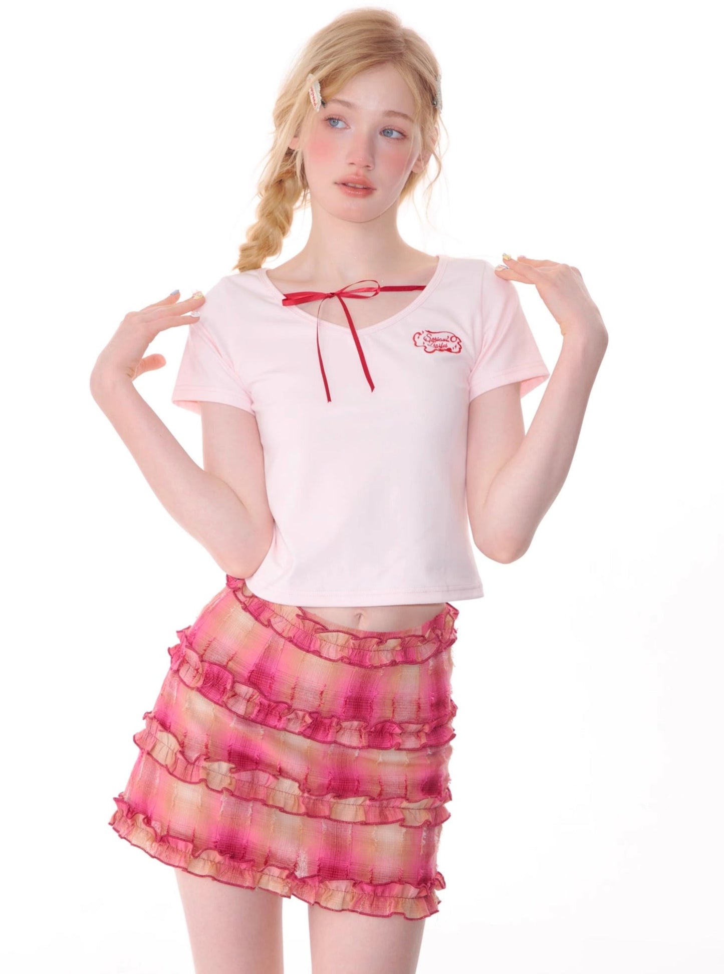 Retro Lace-Up V-Neck T-Shirt
