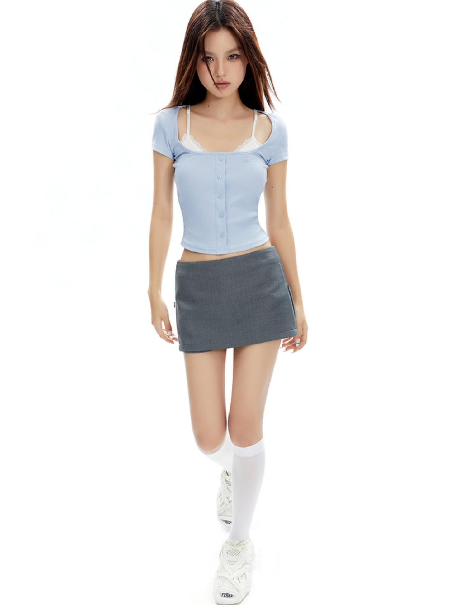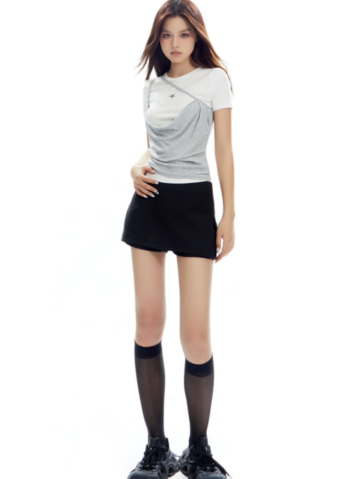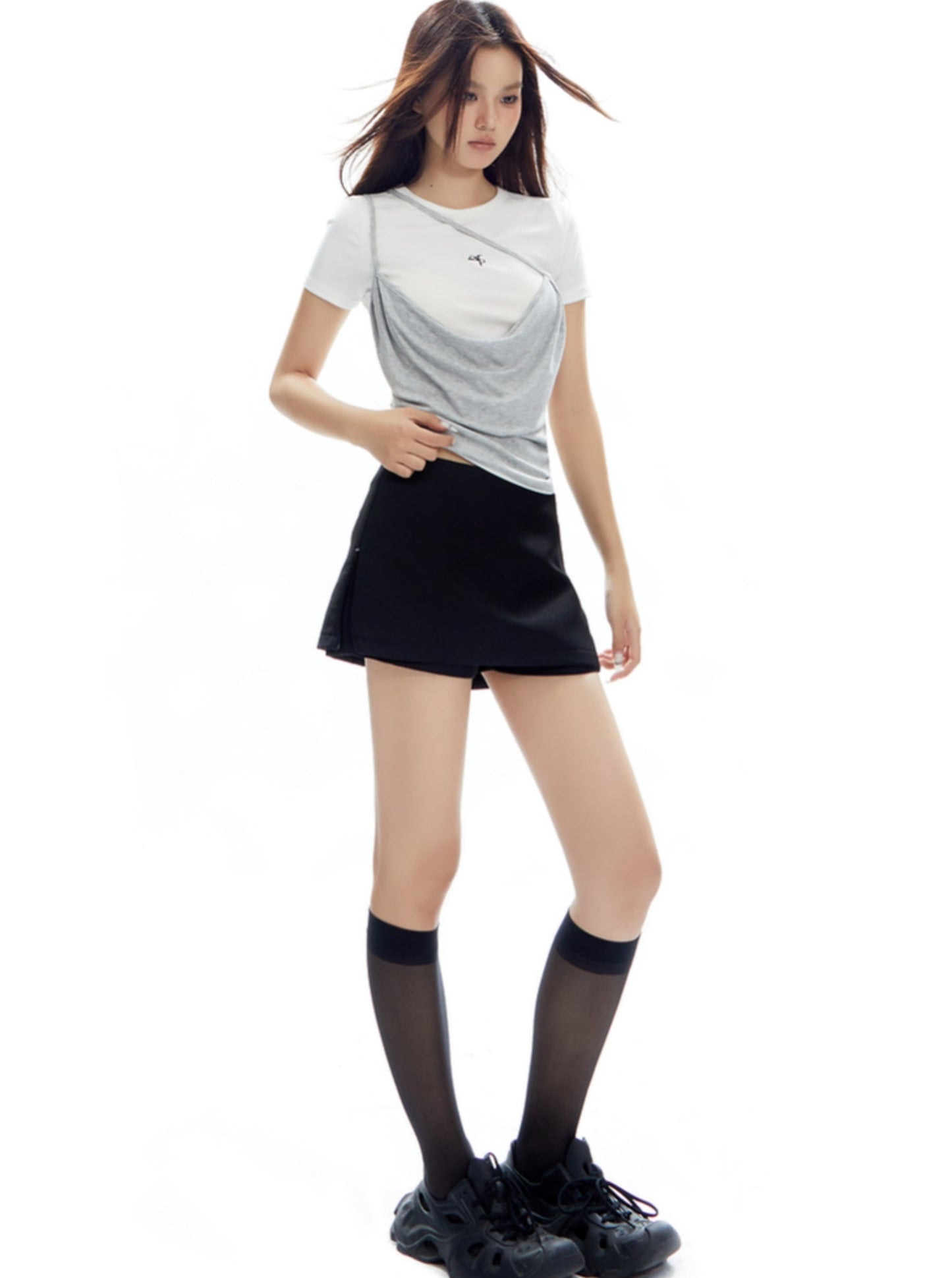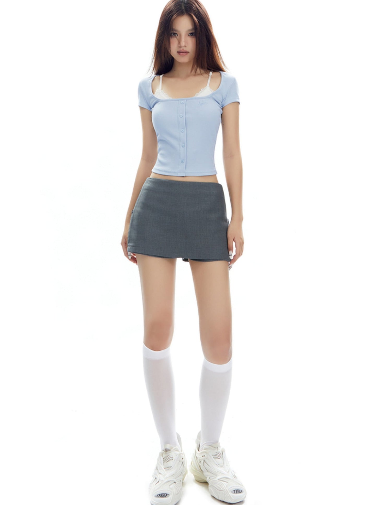 Retro Low-Waist Slit Skirt