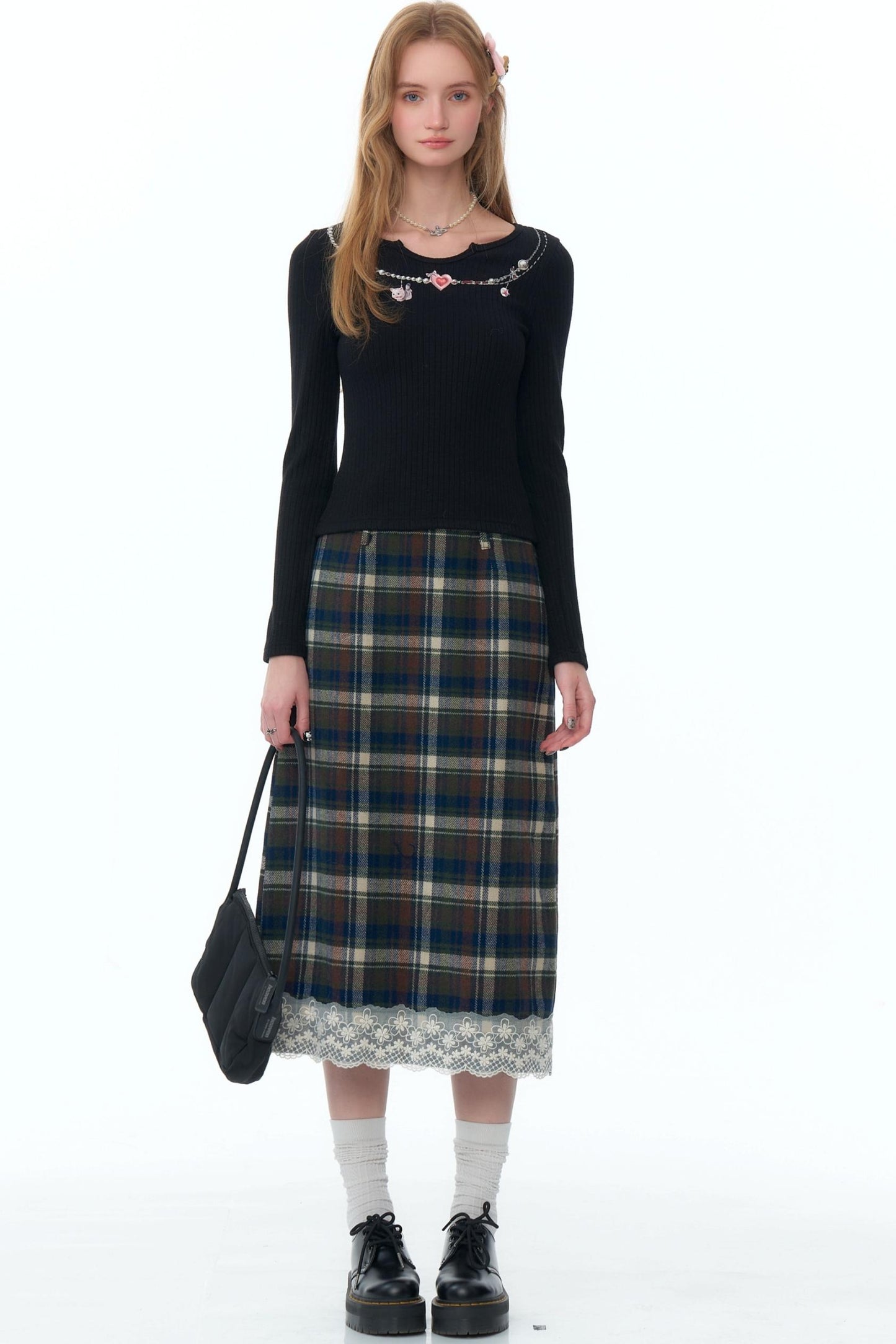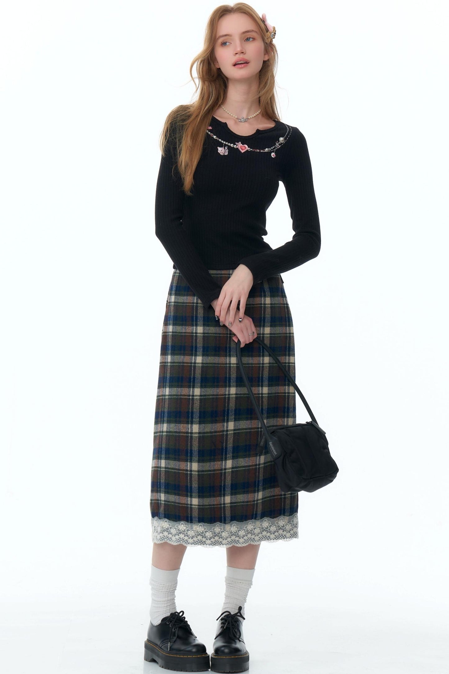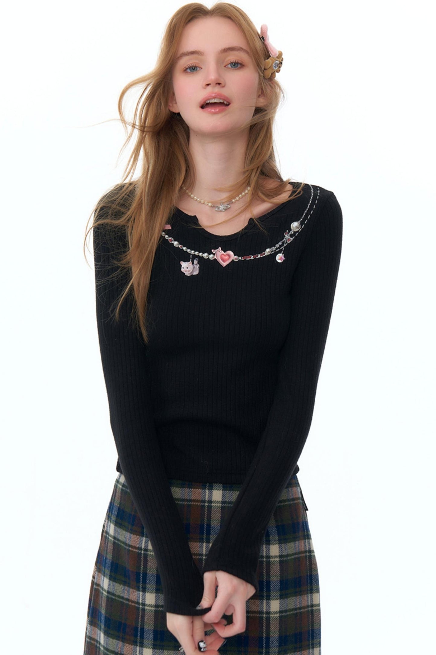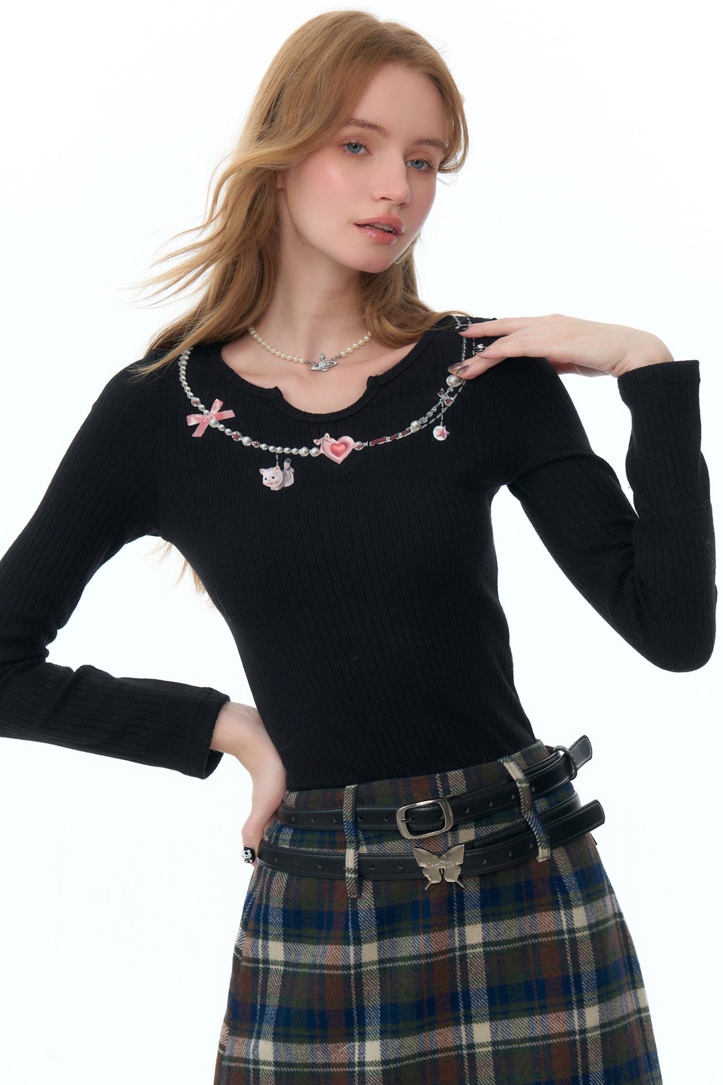 Retro Necklace Print Knitted Shirt