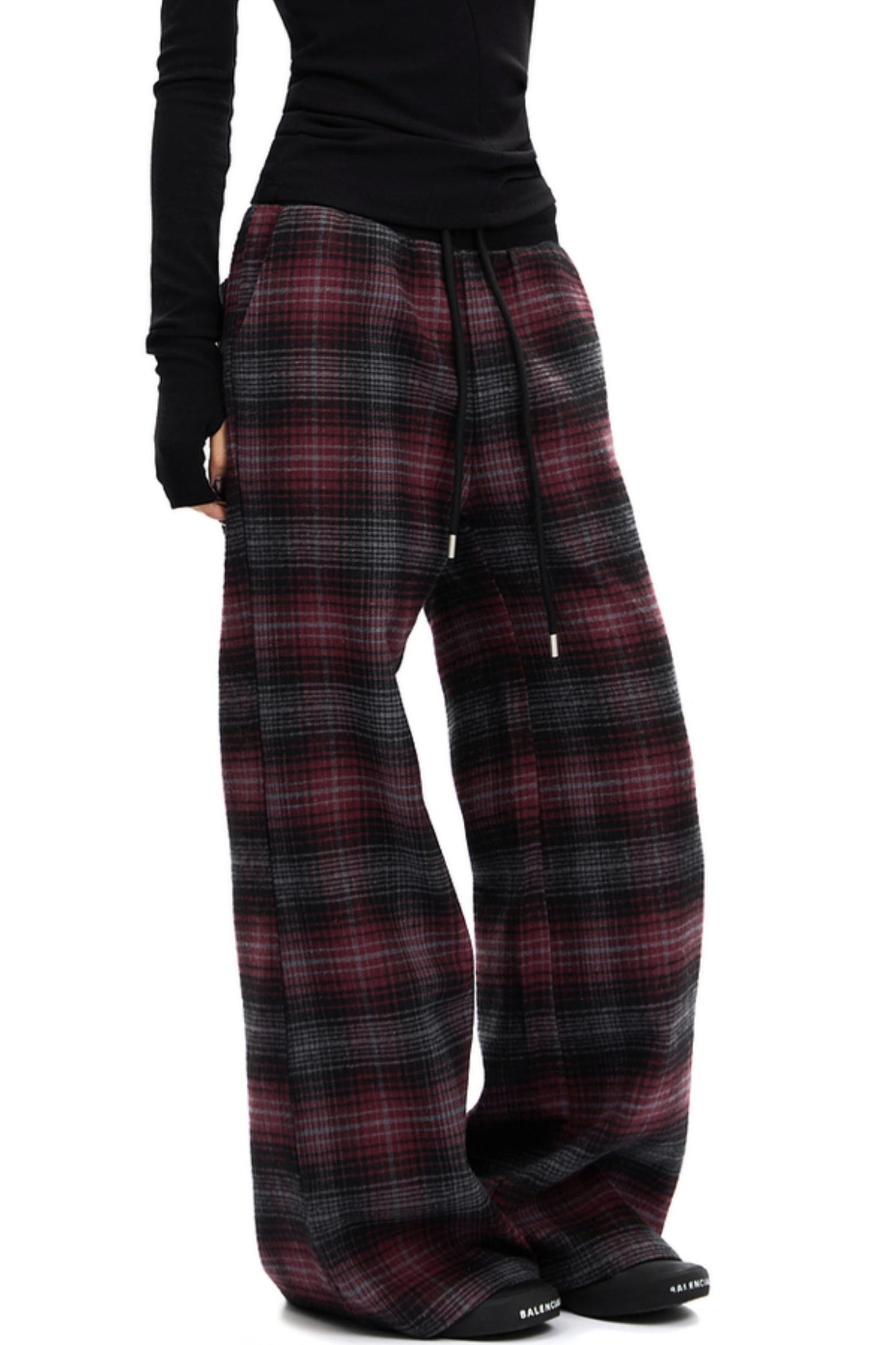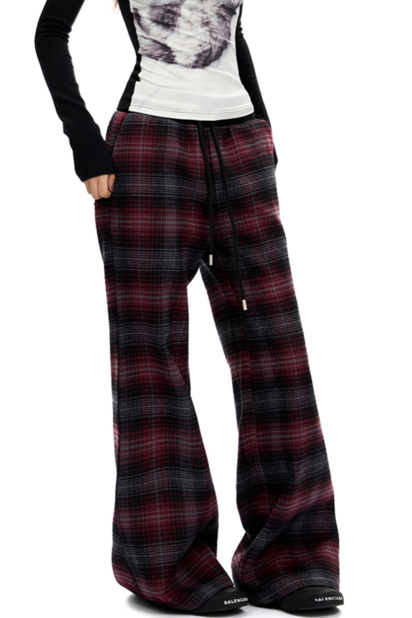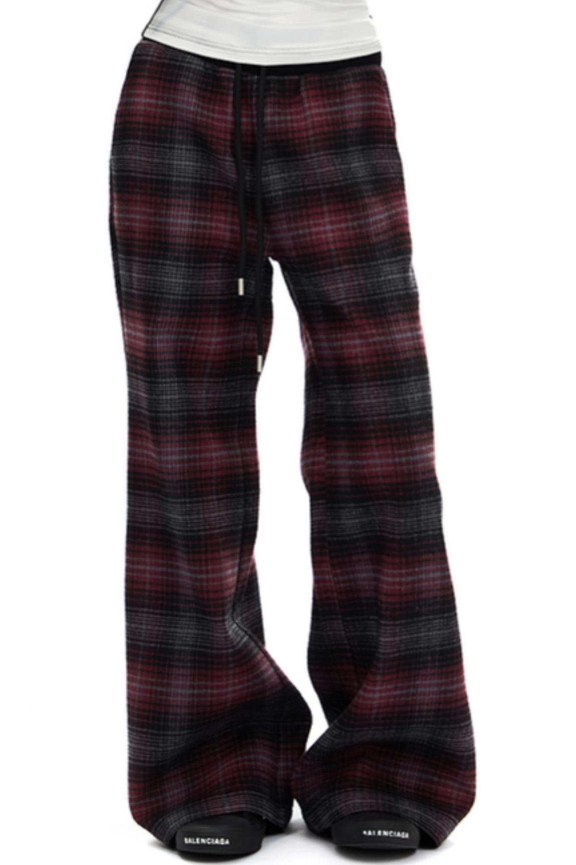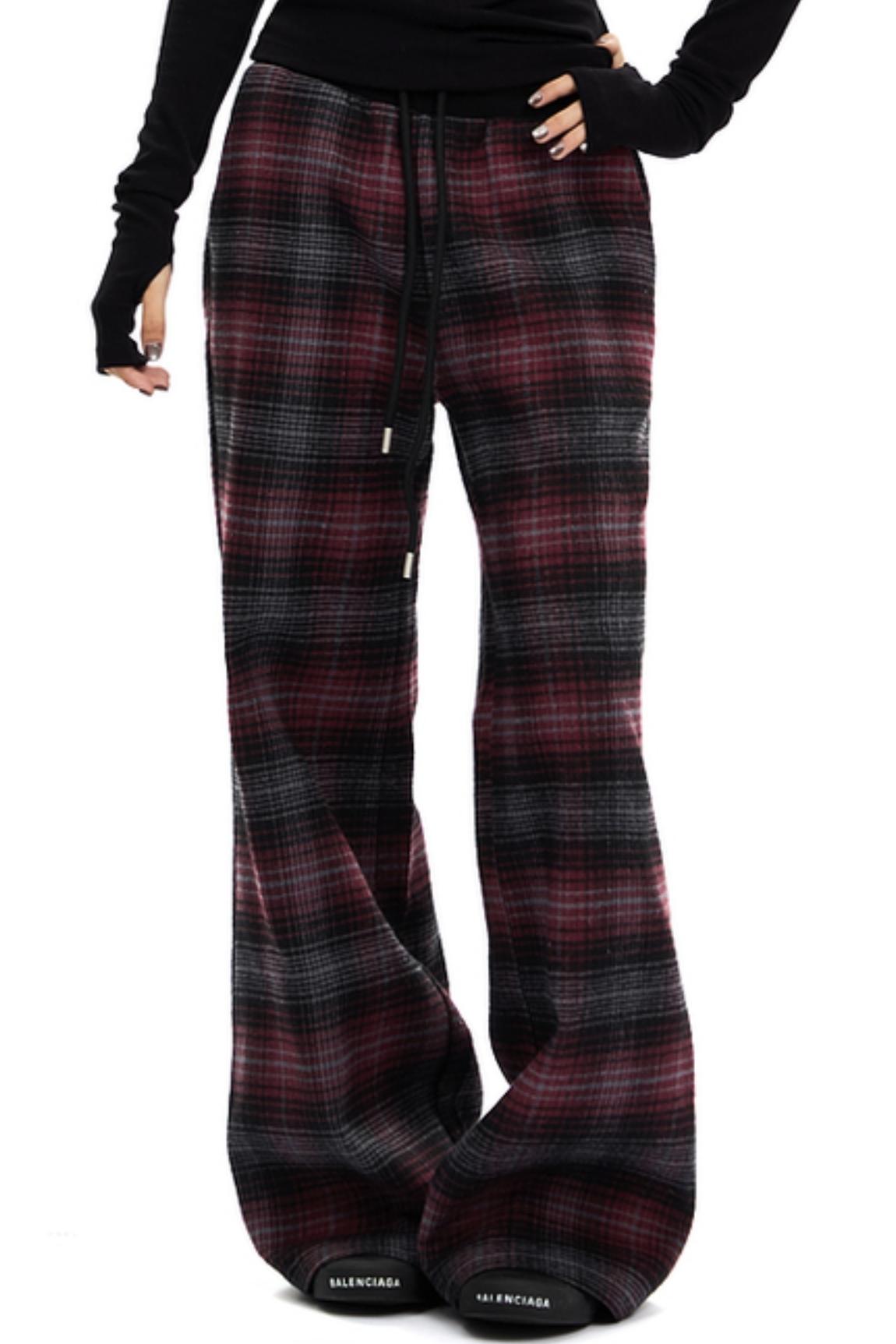 Retro Red Plaid Straight Pants