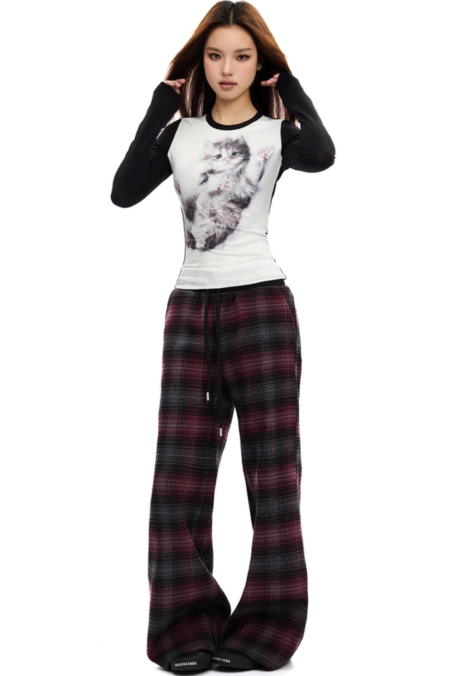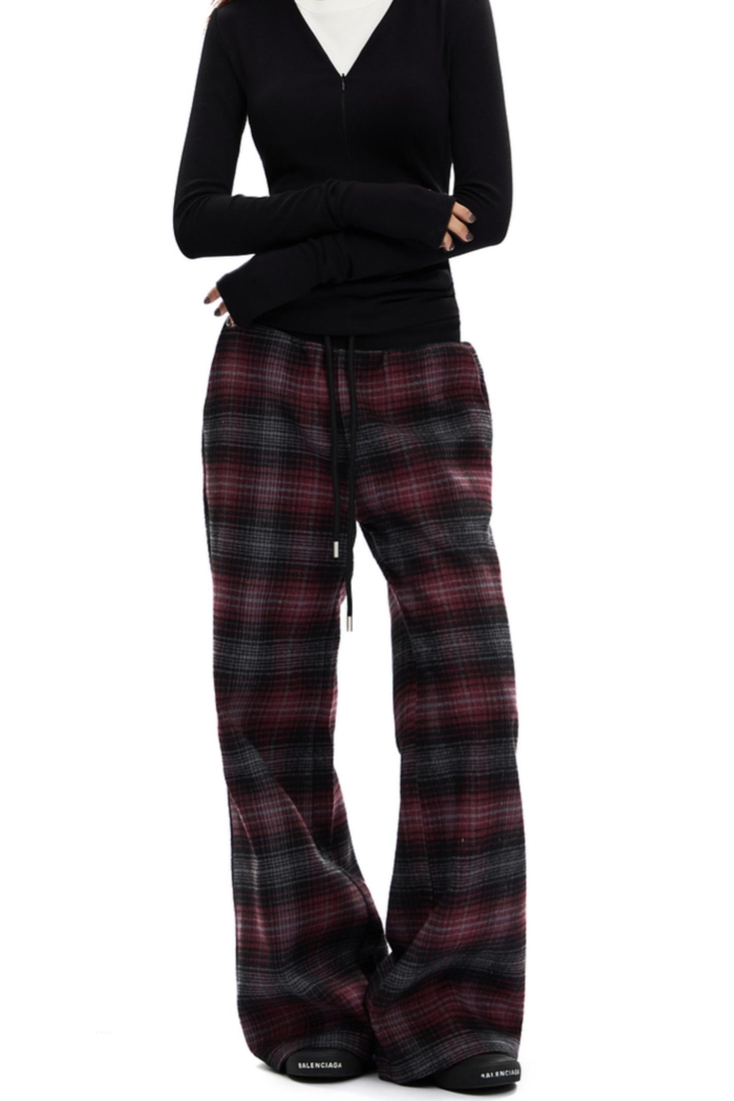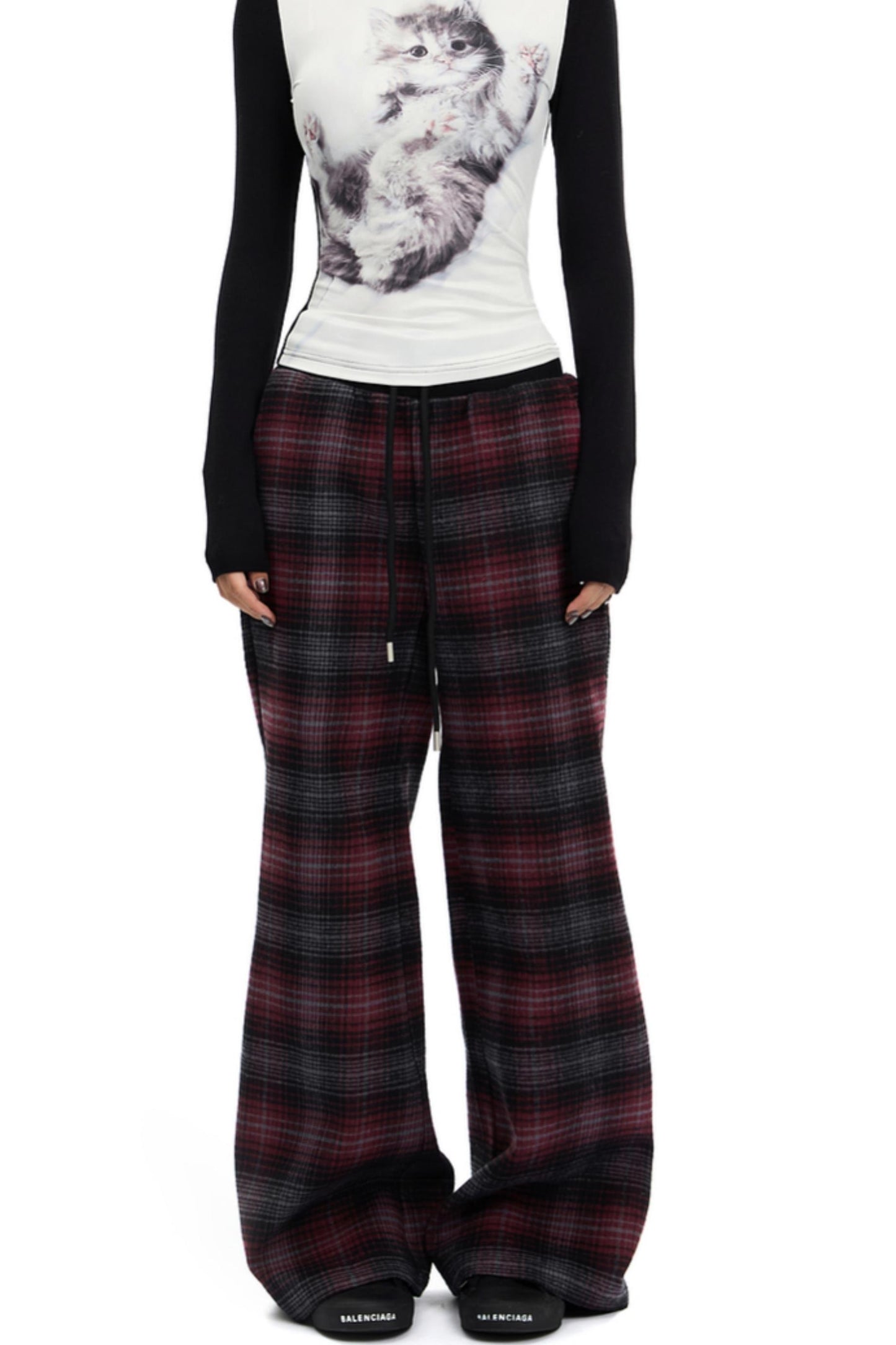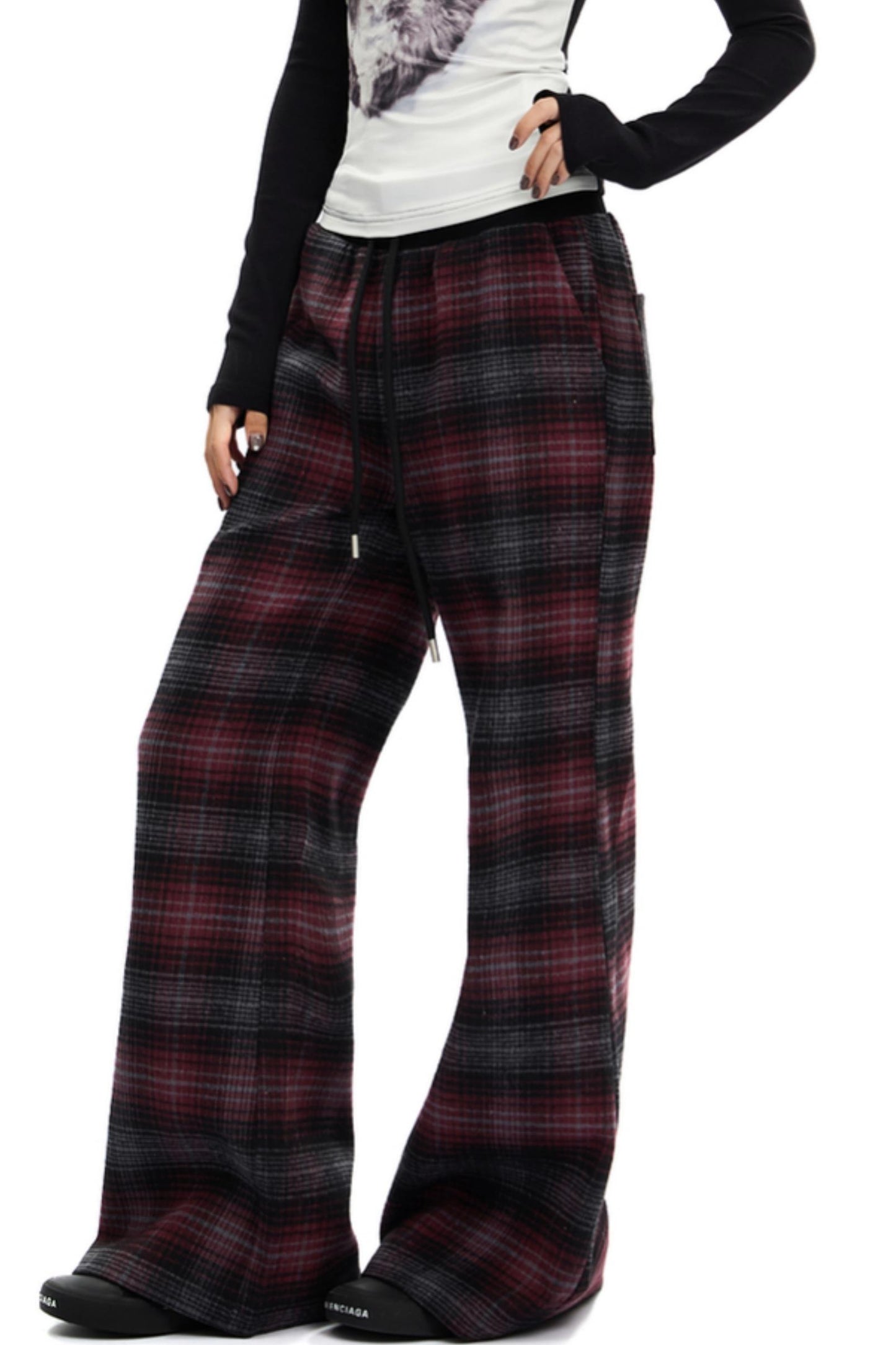 Retro Red Plaid Straight Pants