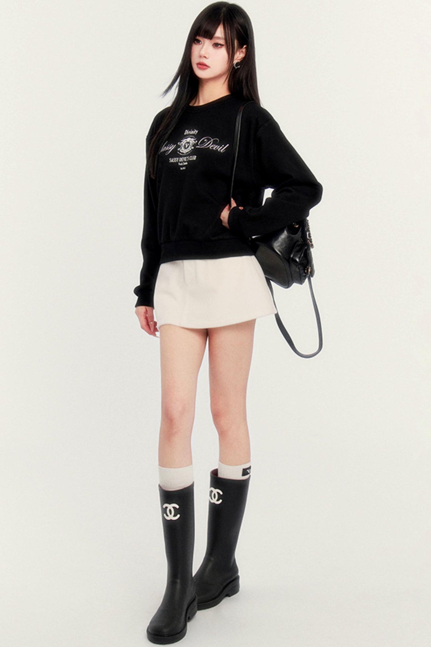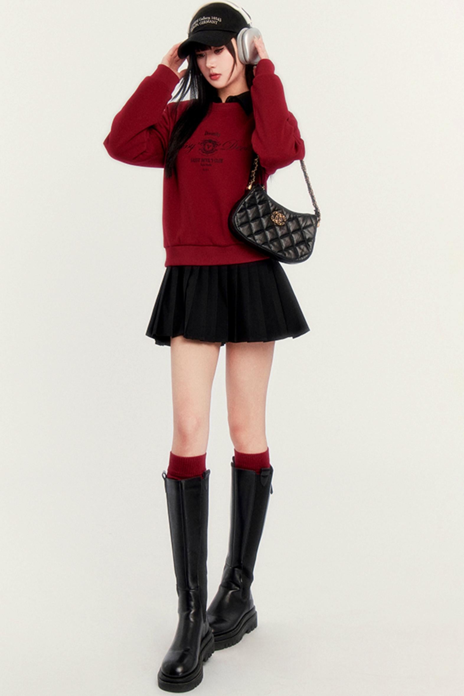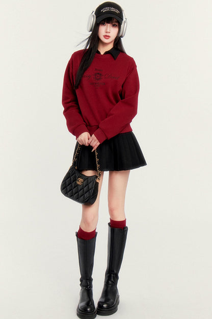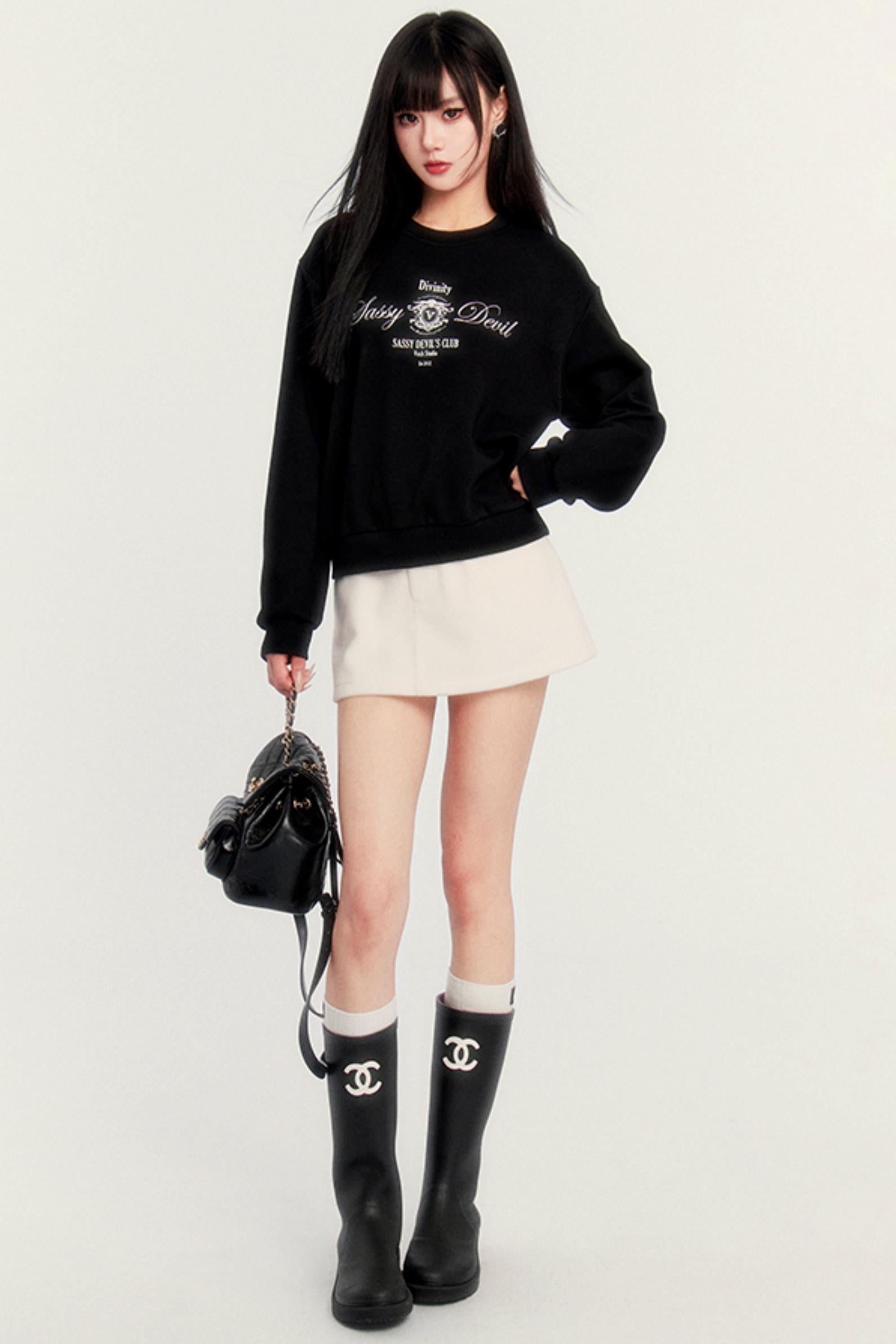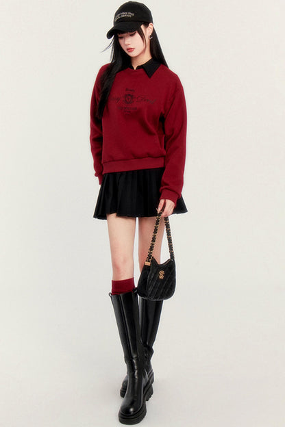 Round Neck Velvet Crop Sweatshirt