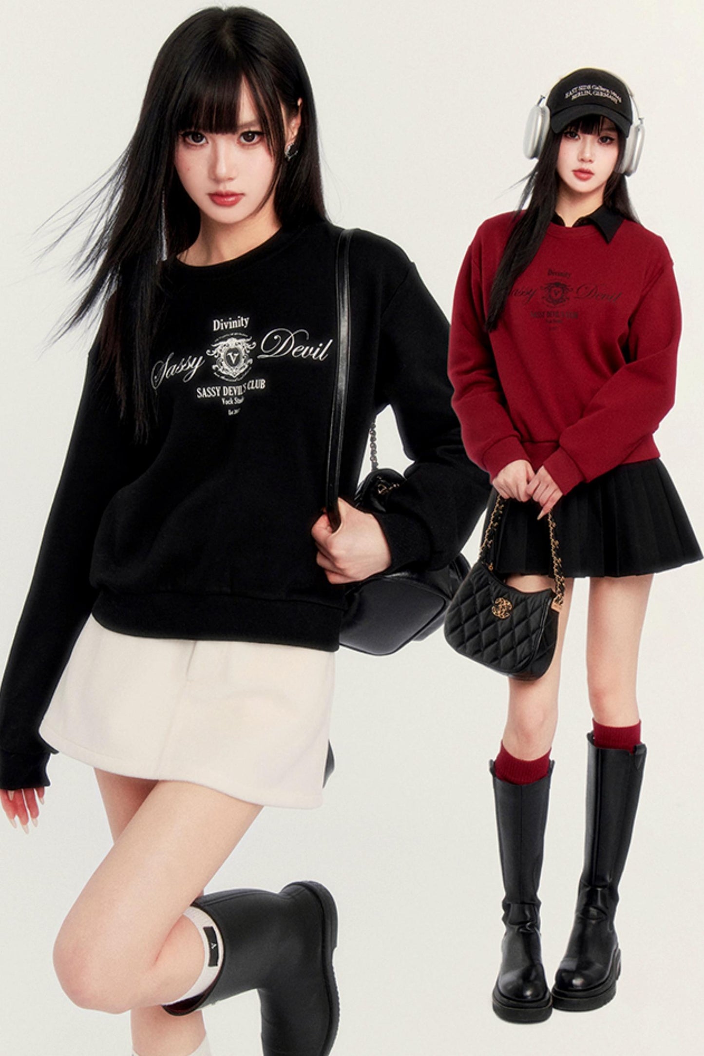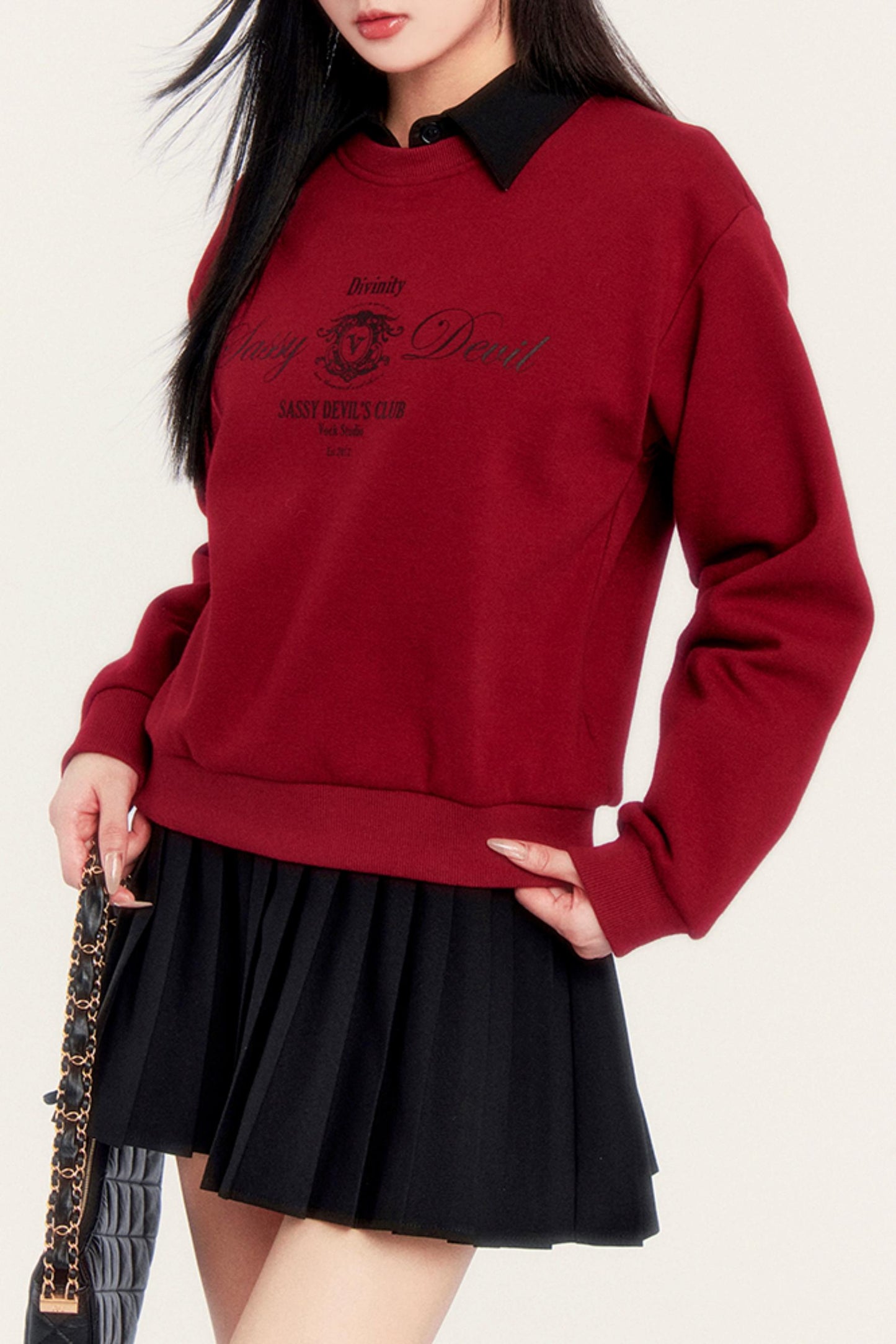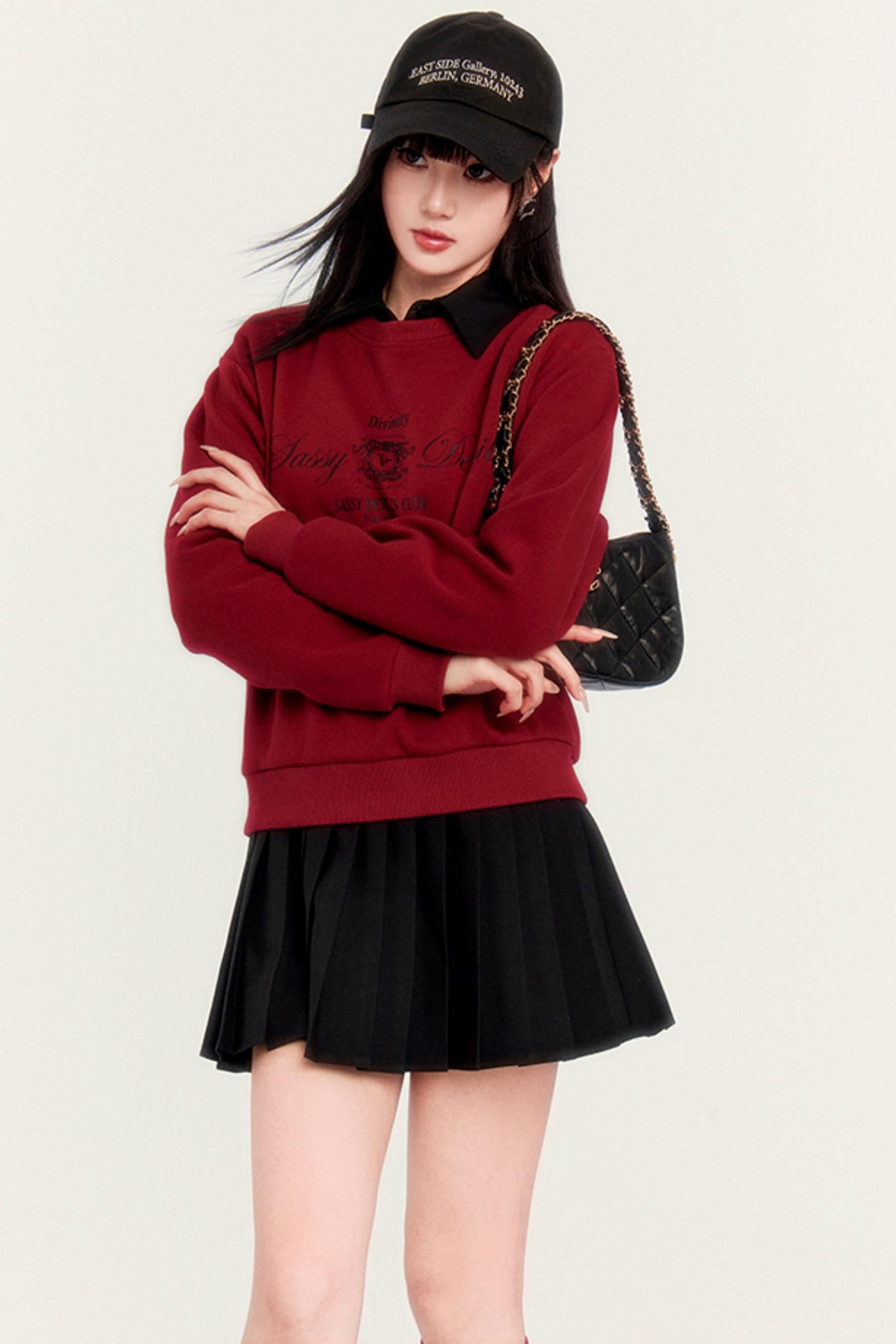 Round Neck Velvet Crop Sweatshirt