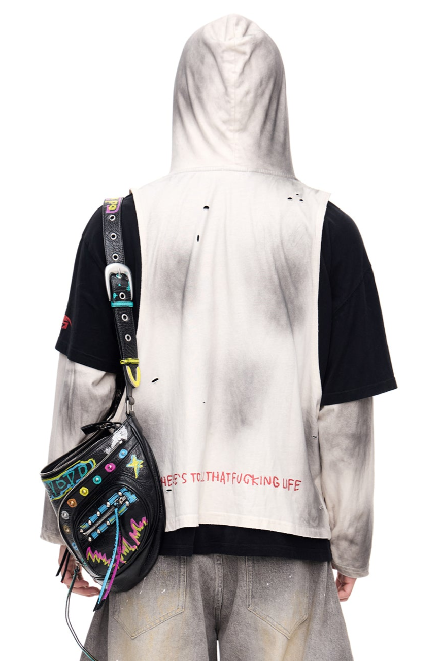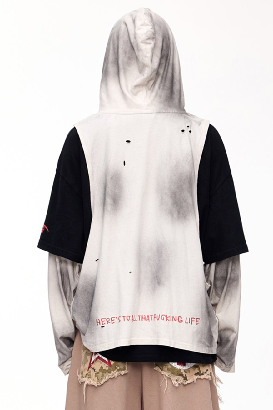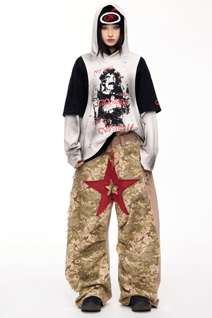 Rubbed Print Patchwork Long Sleeve Hoodie