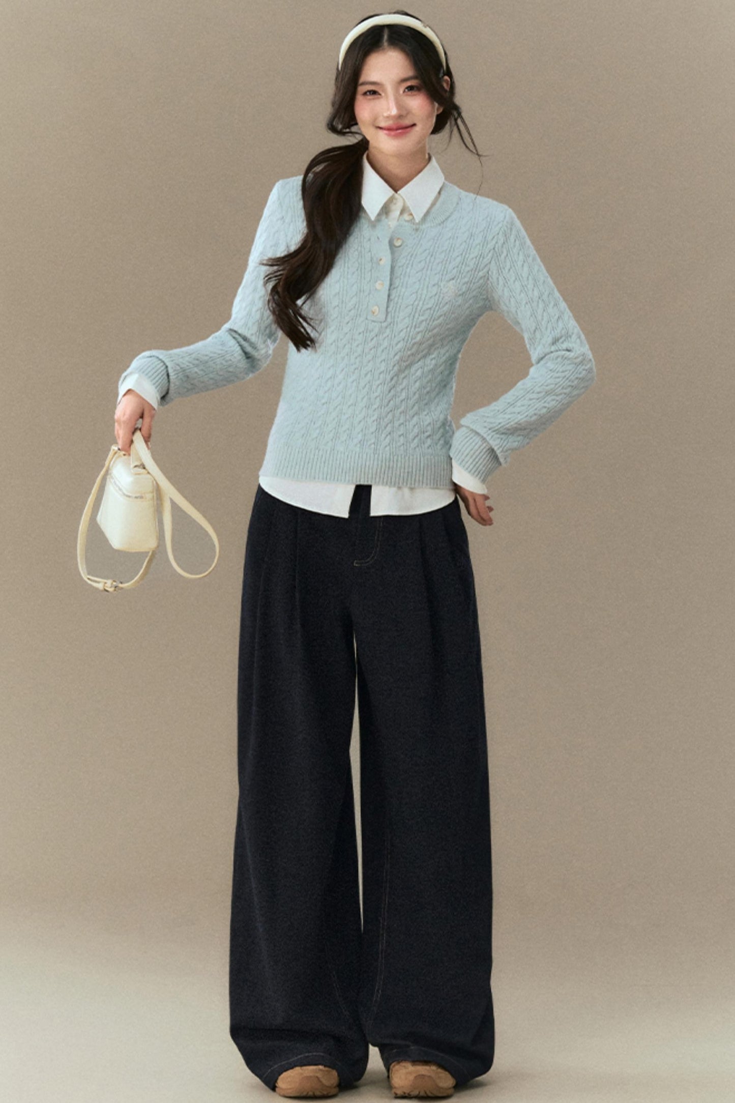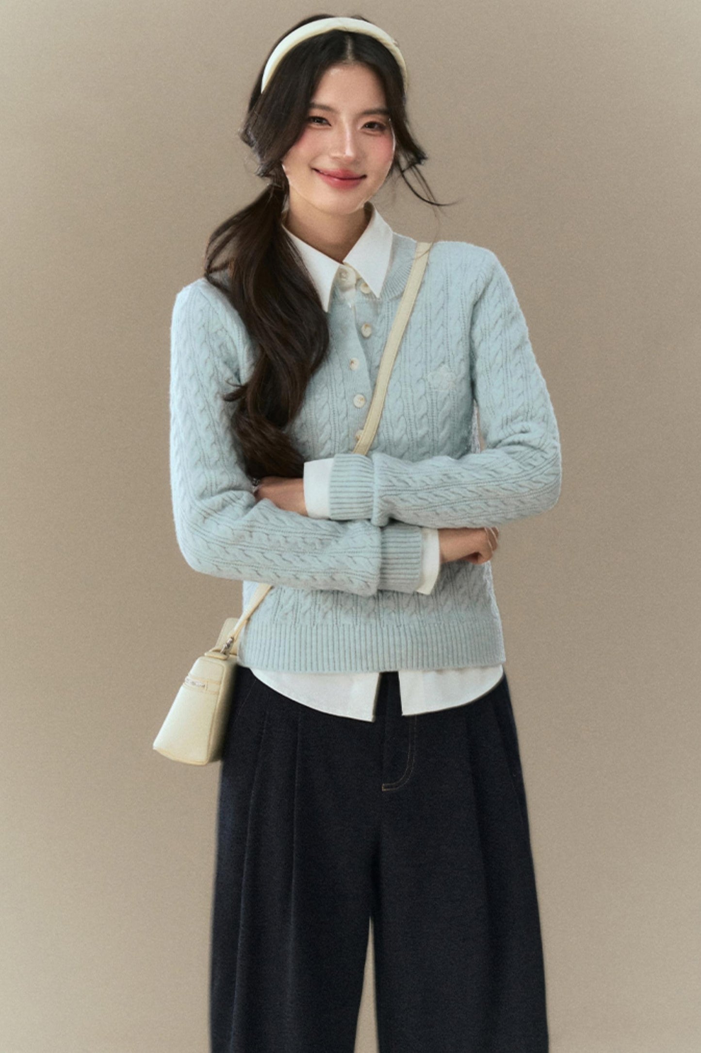 Semi-Open Cable Knit Sweater
