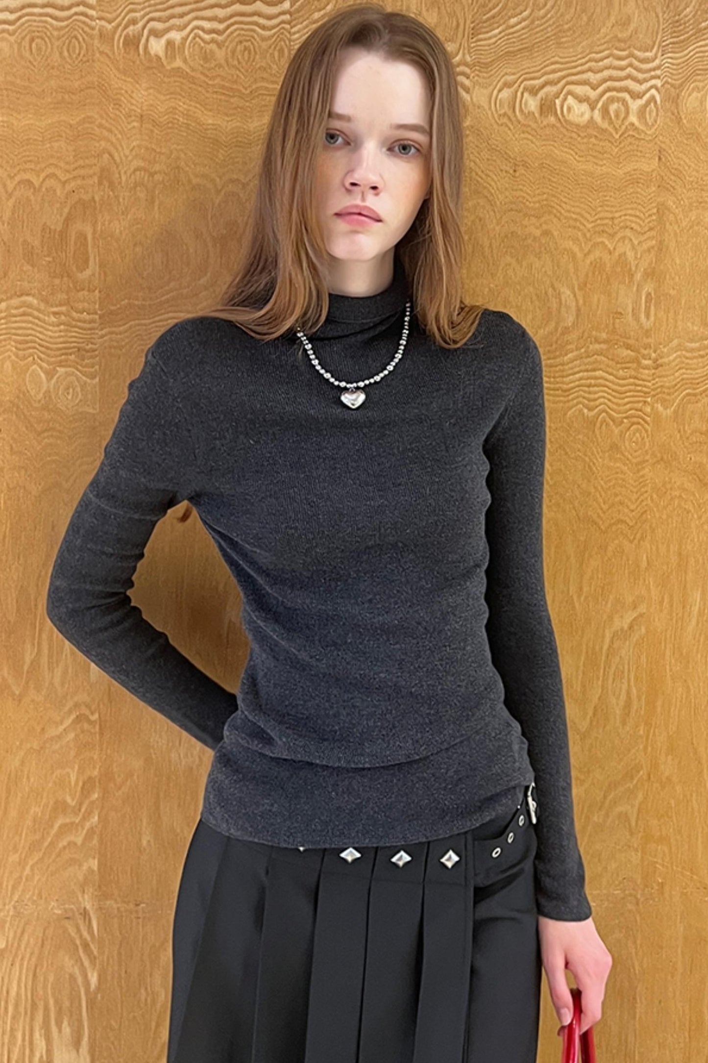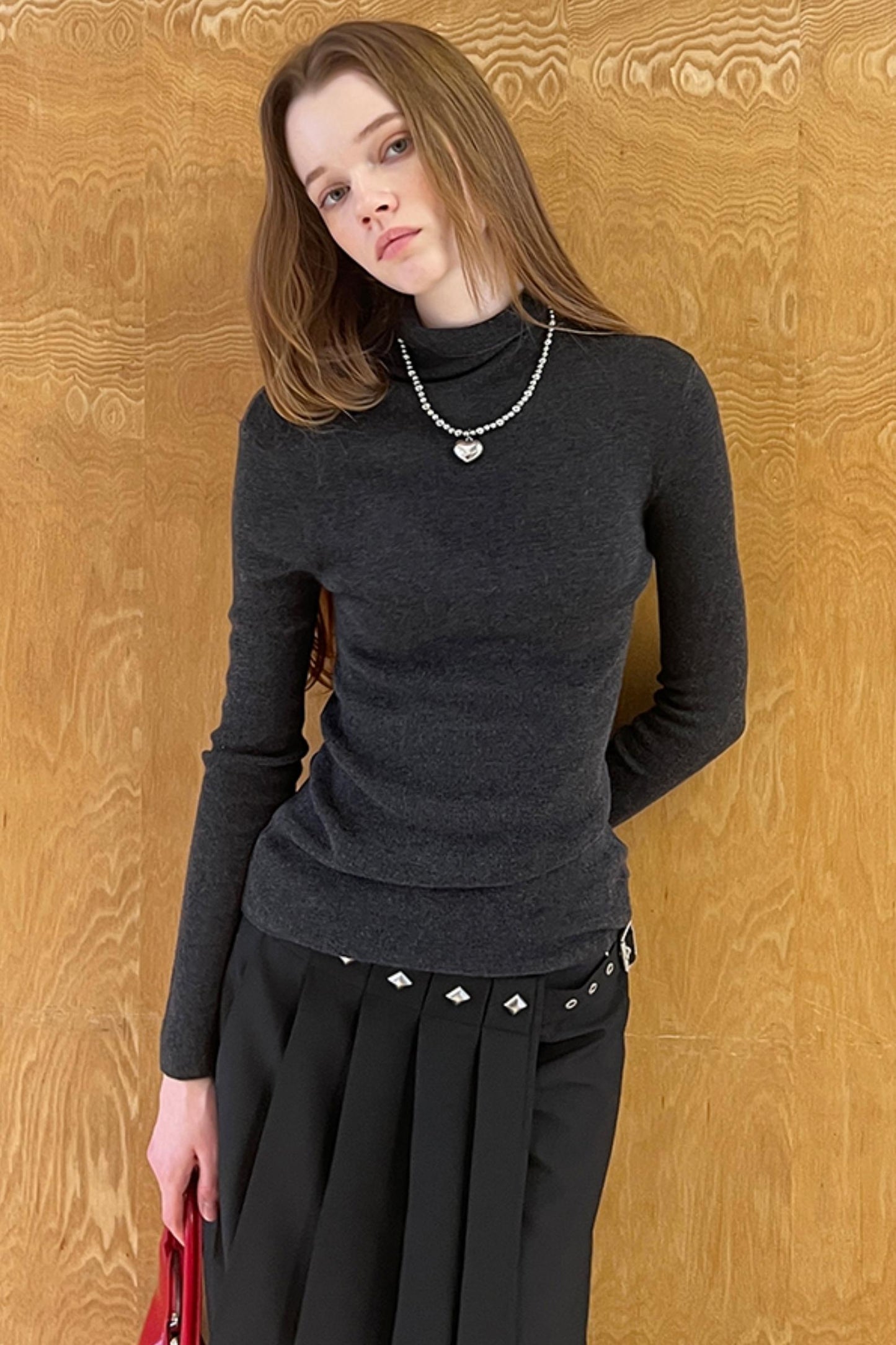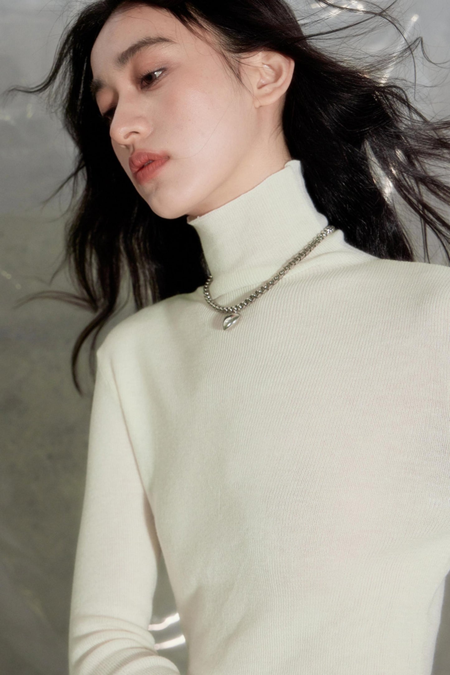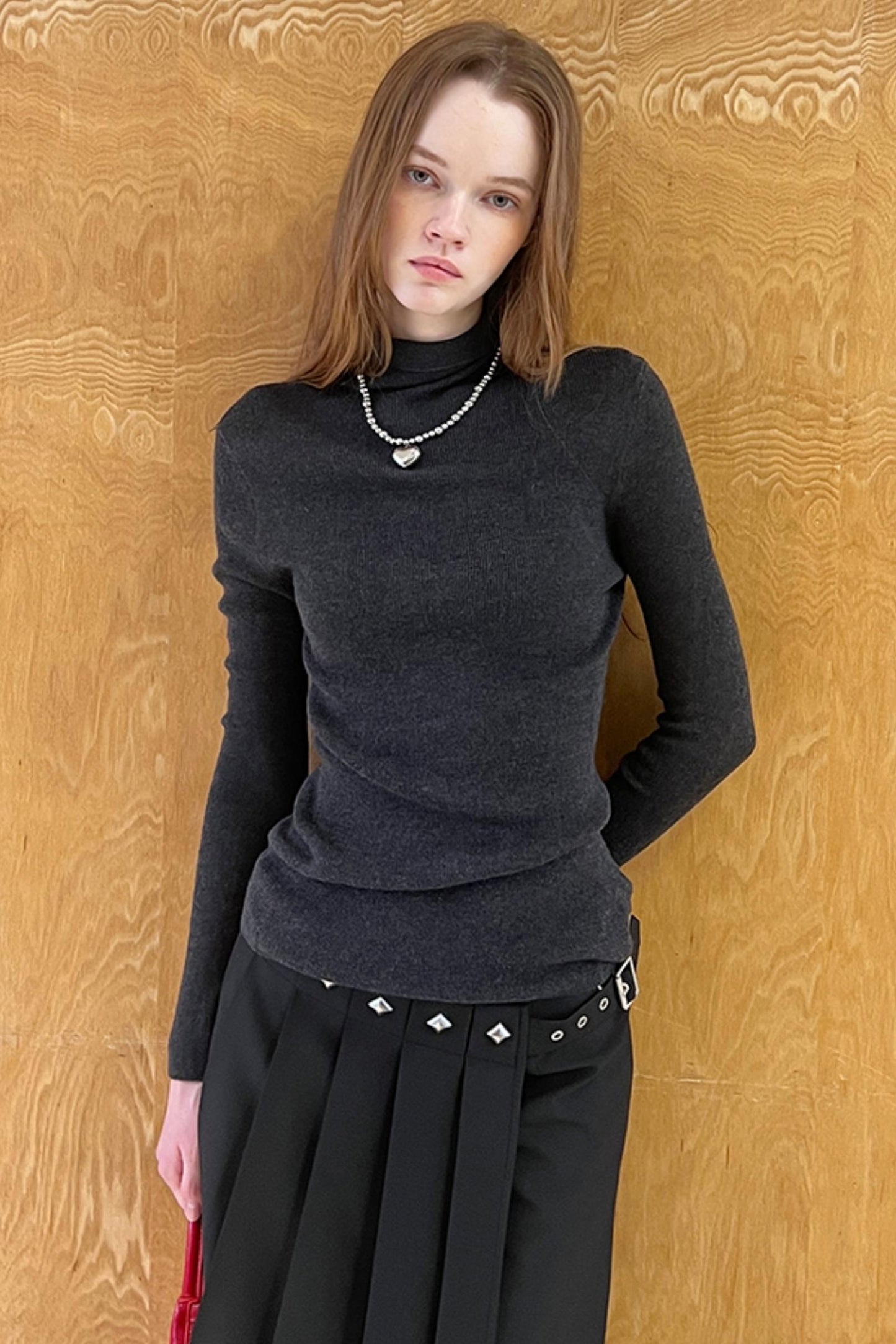 Slim Fit High Neck Wool Knit Top