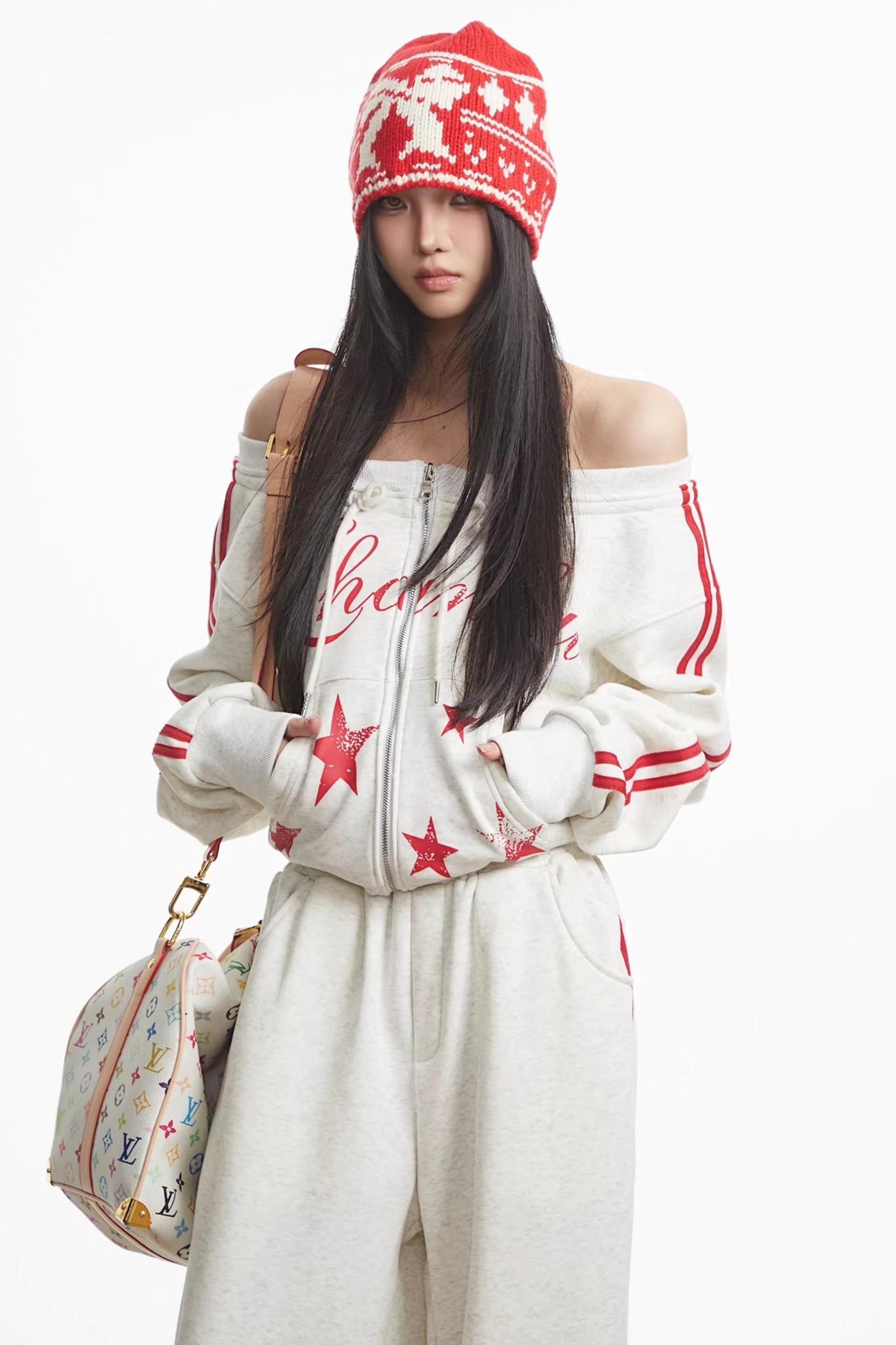 Spicy Girl Off-Shoulder Sweatshirt Set-Up
