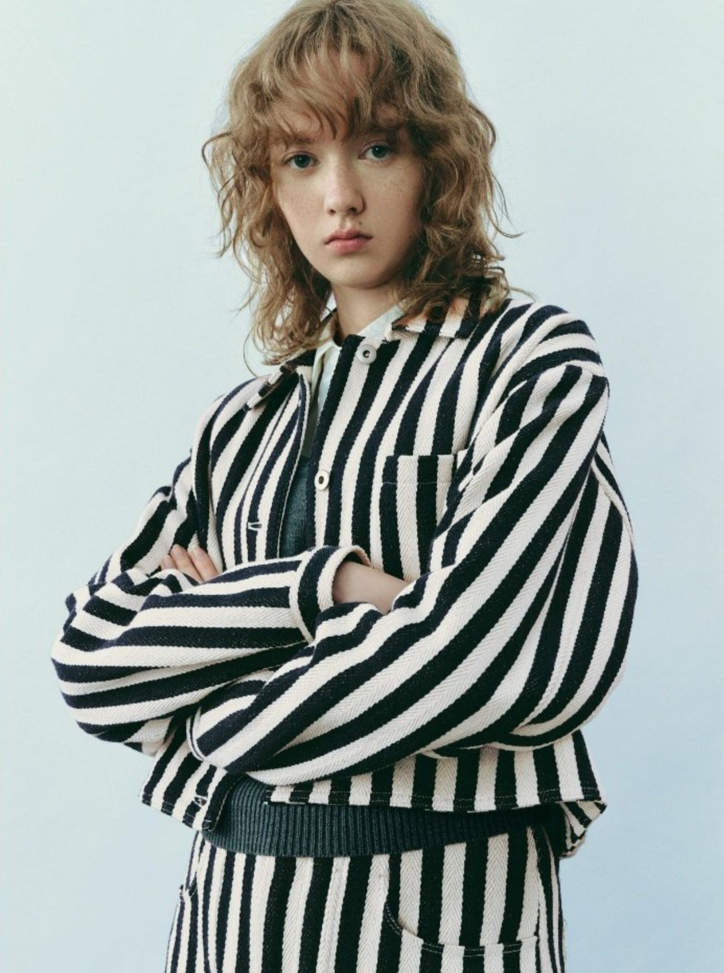 Striped Pocket Button Loose Jacket