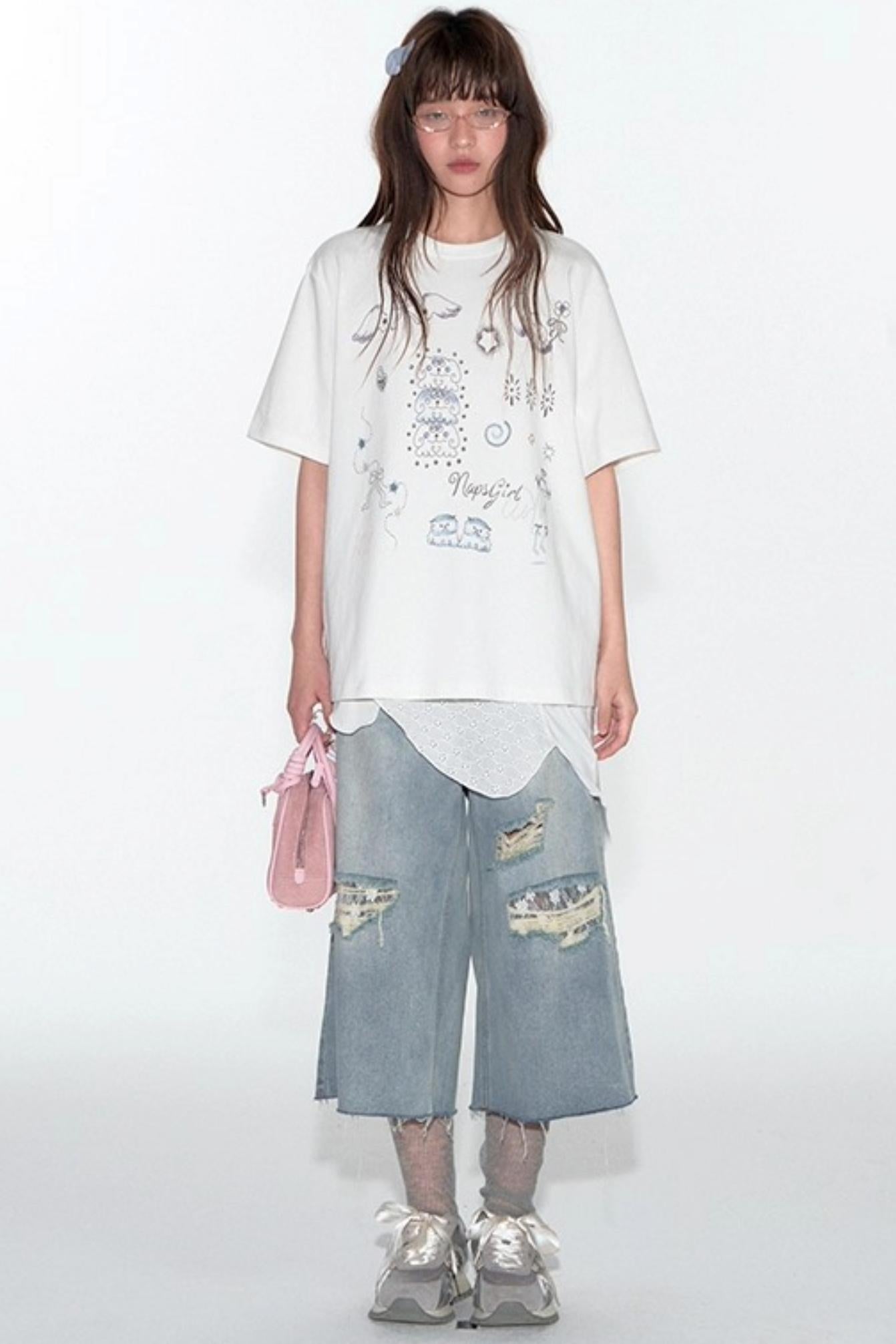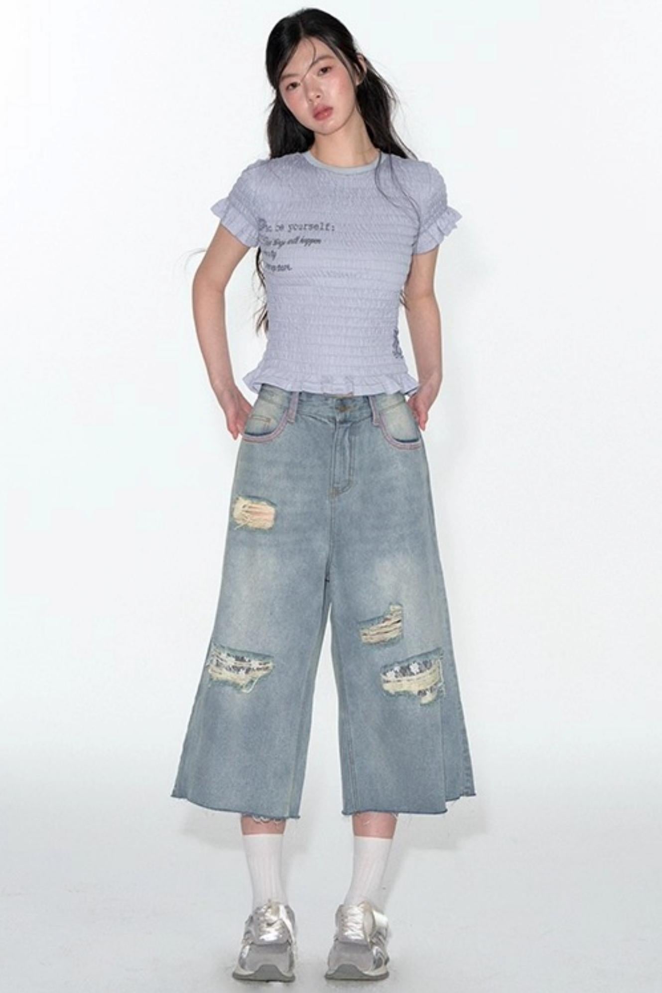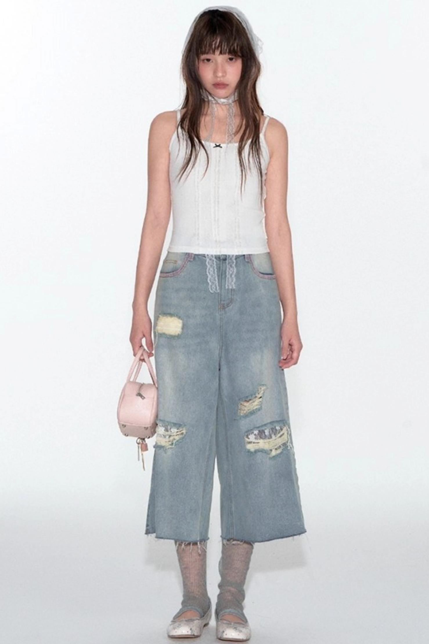 Summer Lace Ripped Wide-Leg Pants