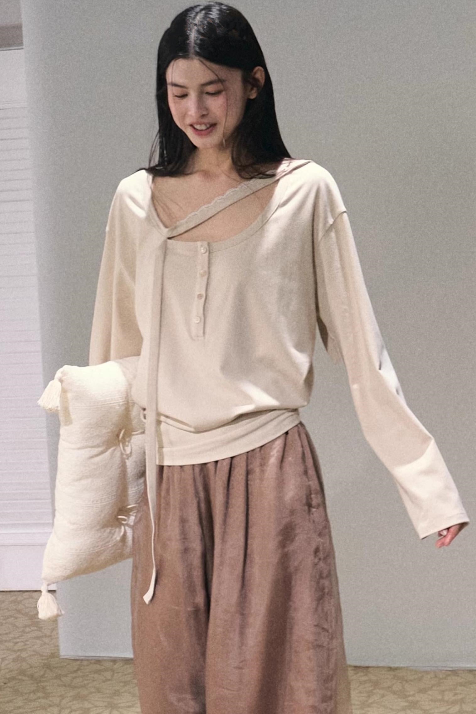 Twilight & Autumn Long-Sleeved Cinched Waist Knit Top