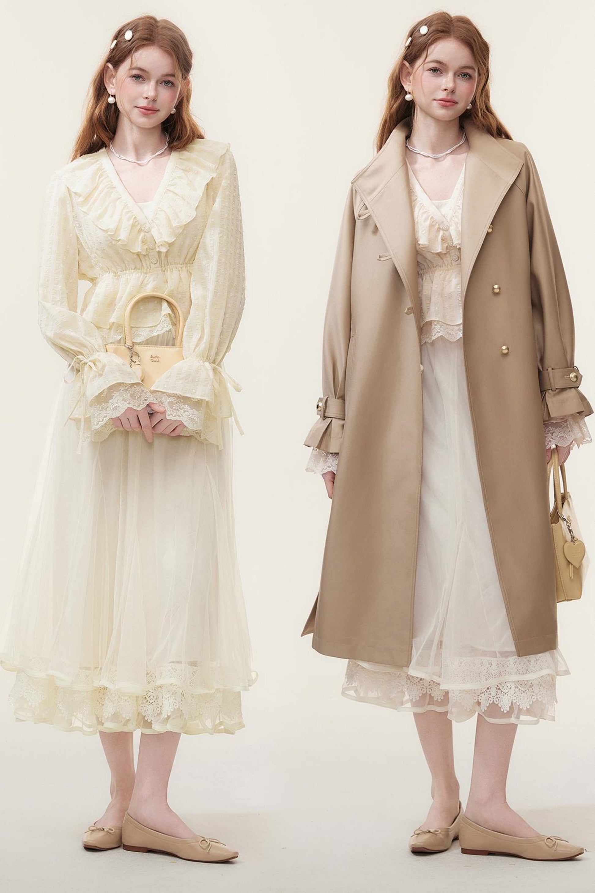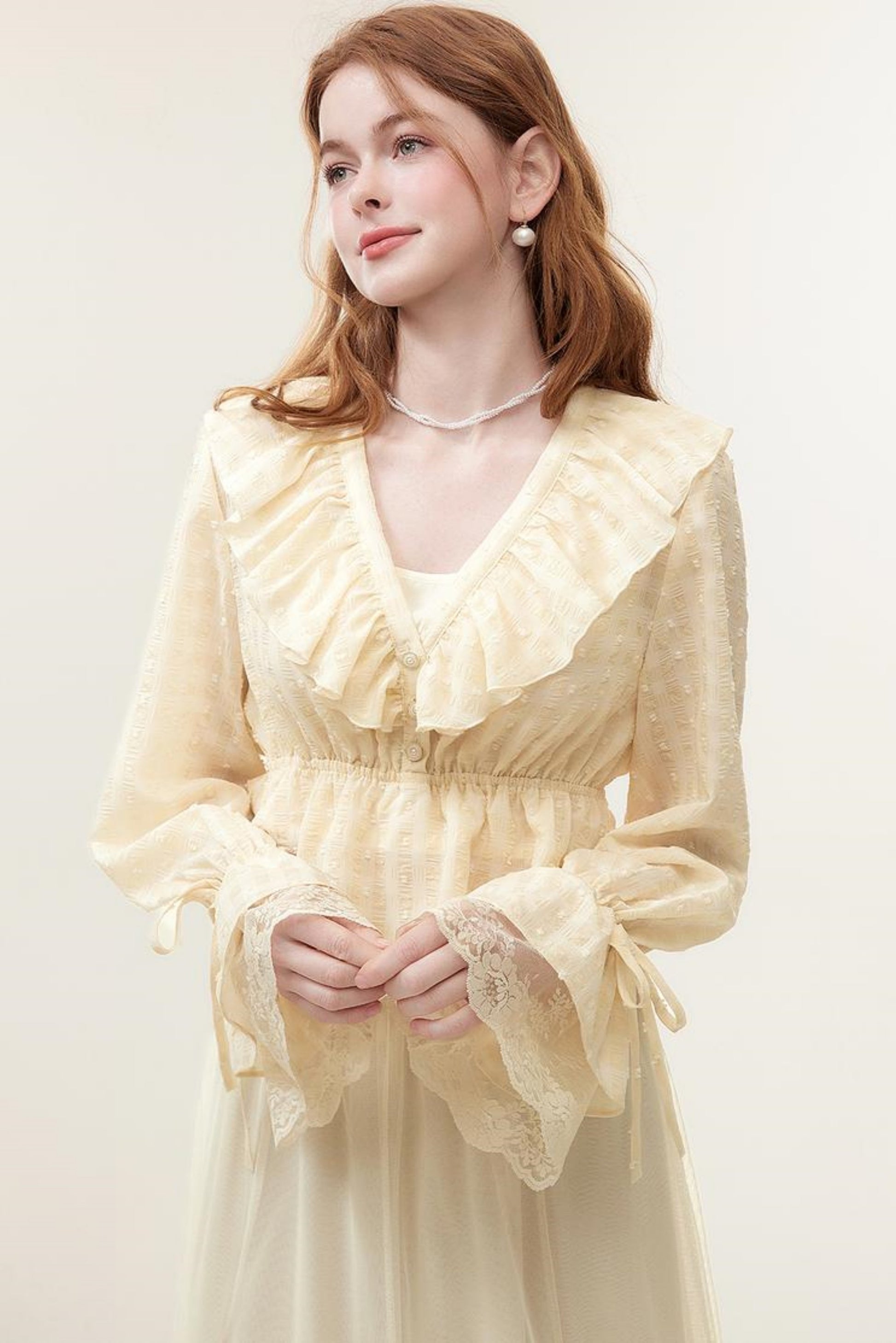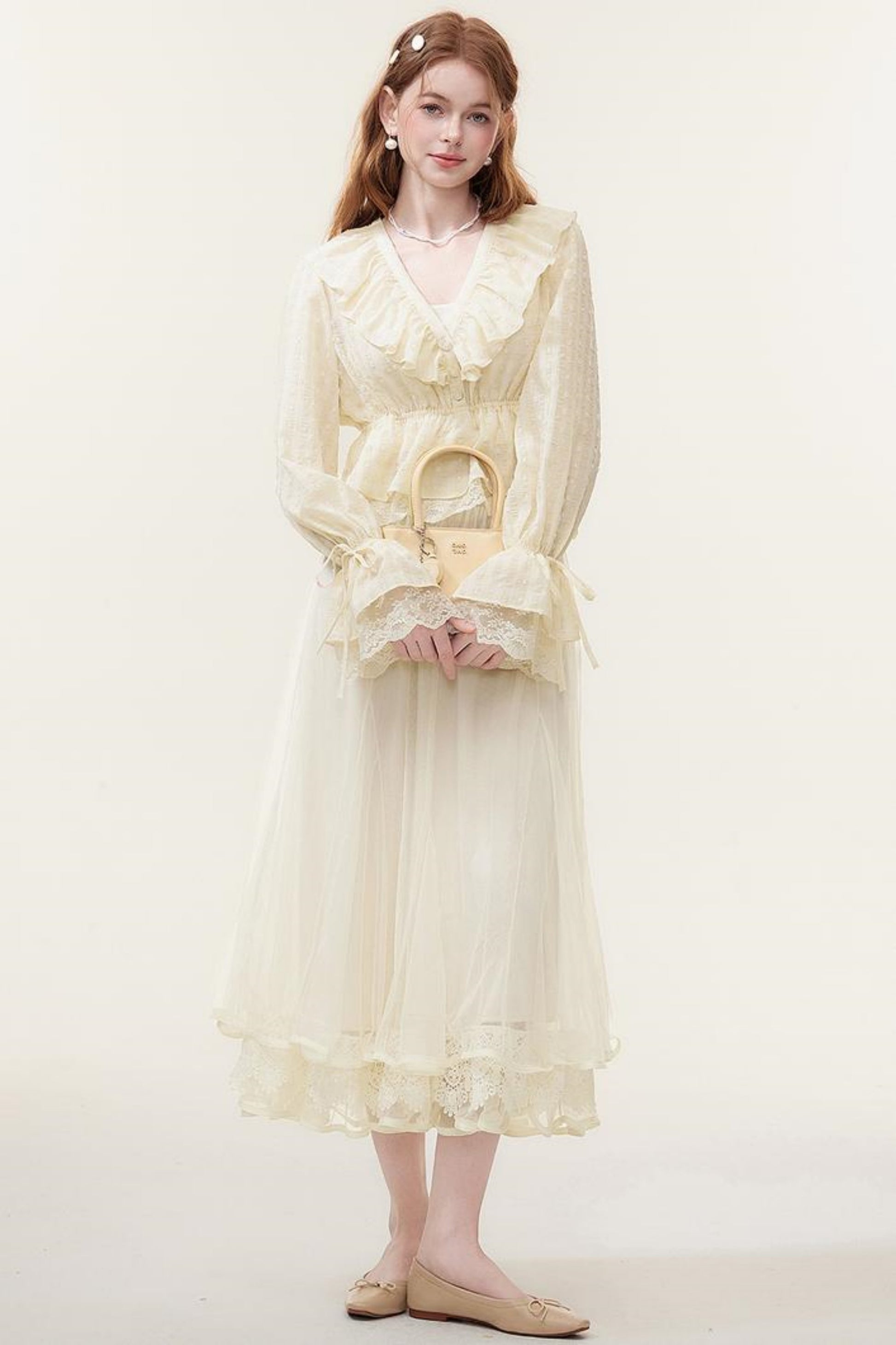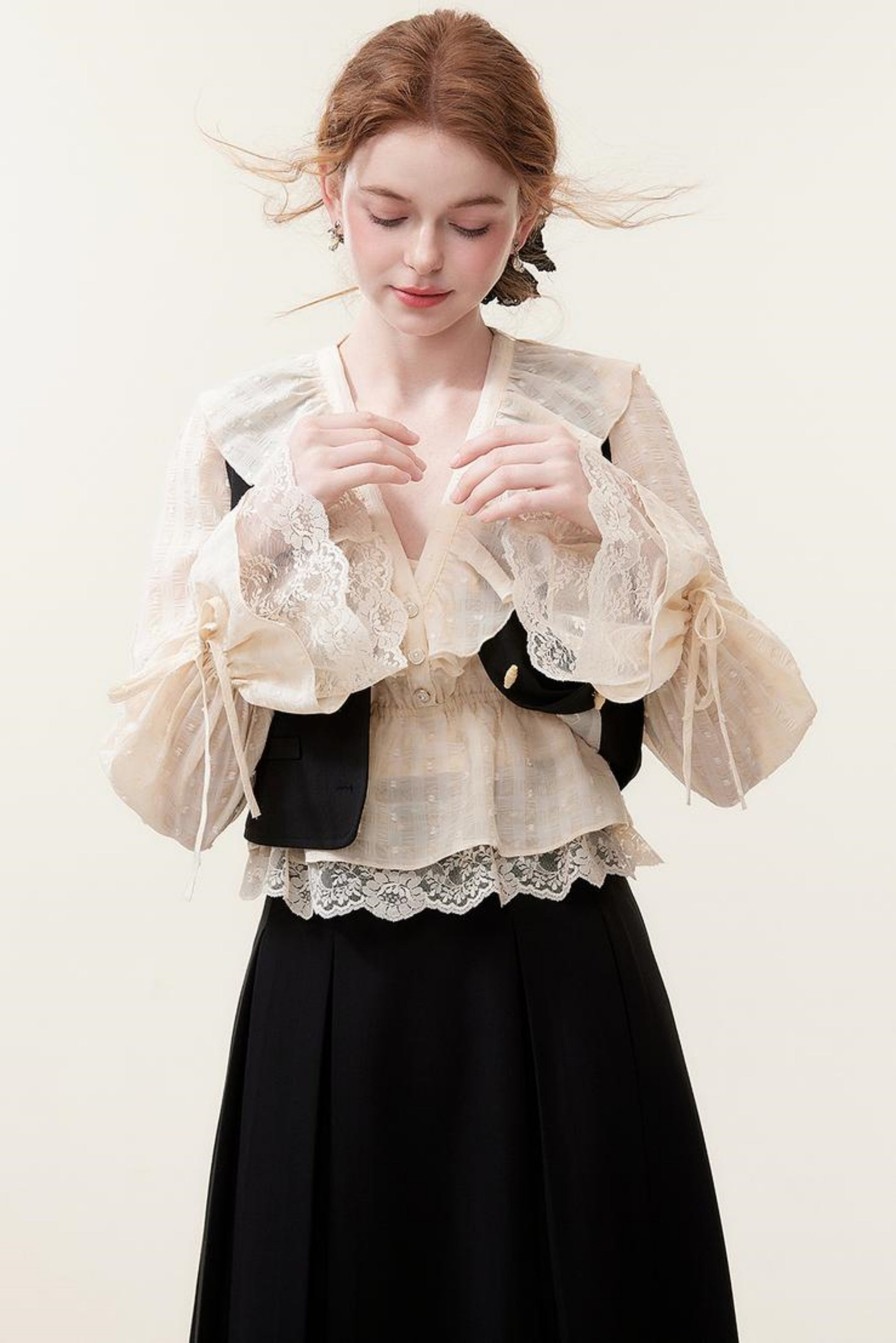 V-Neck Lace Ruffle Blouse