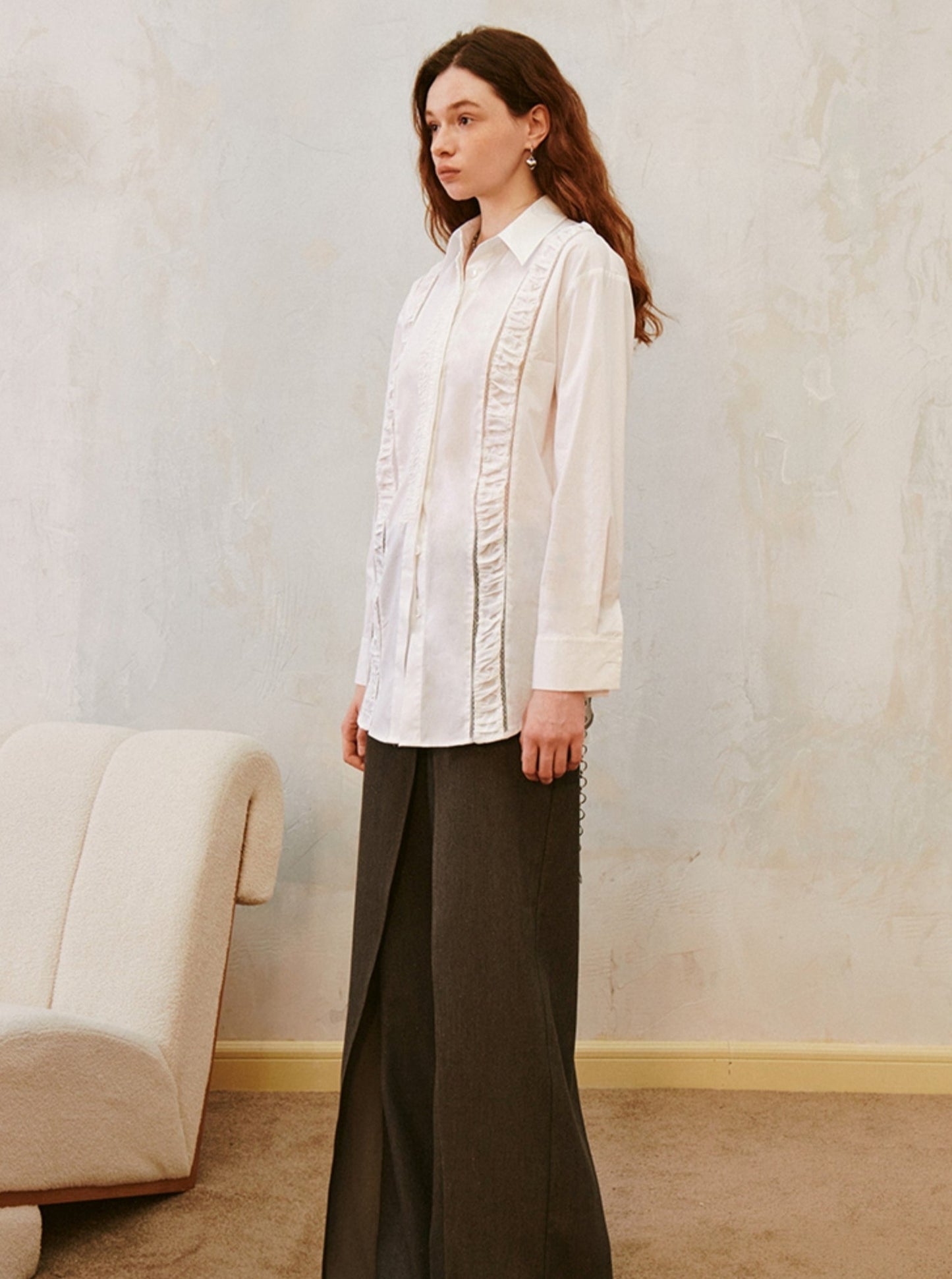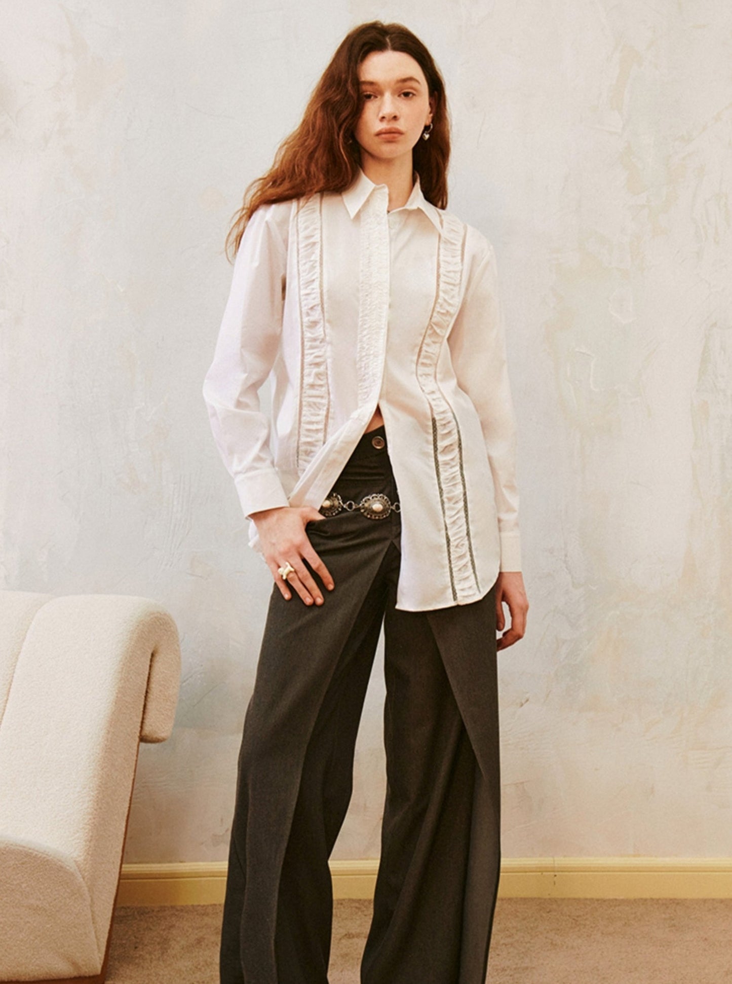 Vintage Cut-Out Lace Panelled Shirred Shirt