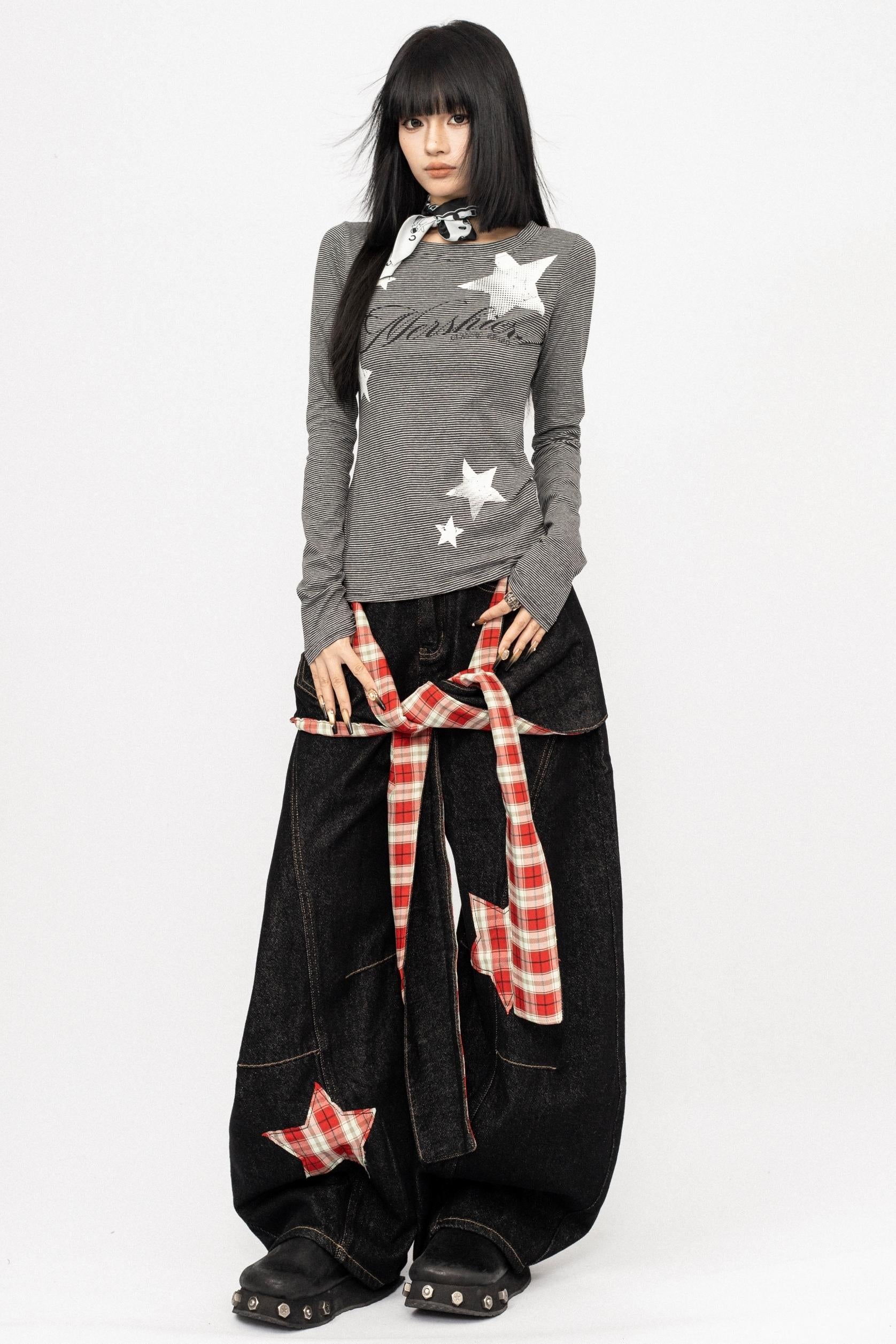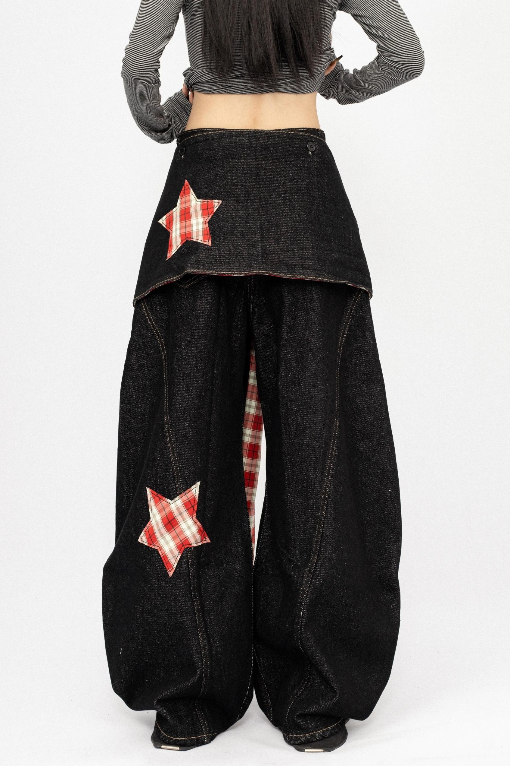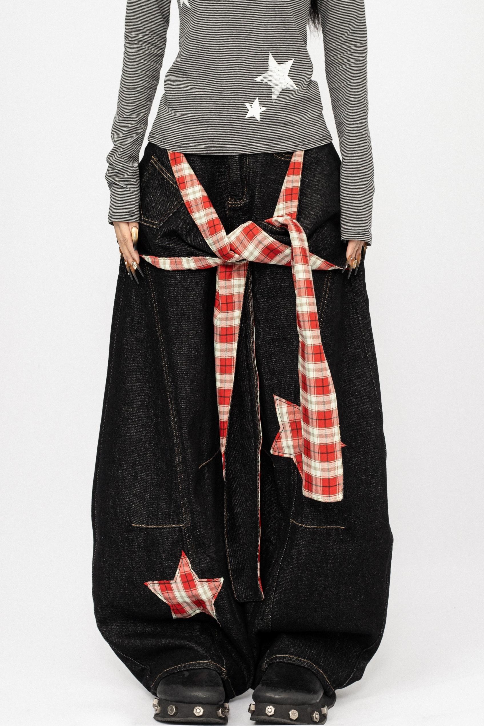 Vintage Spice Girl Plaid Stitched Wide-leg Pants
