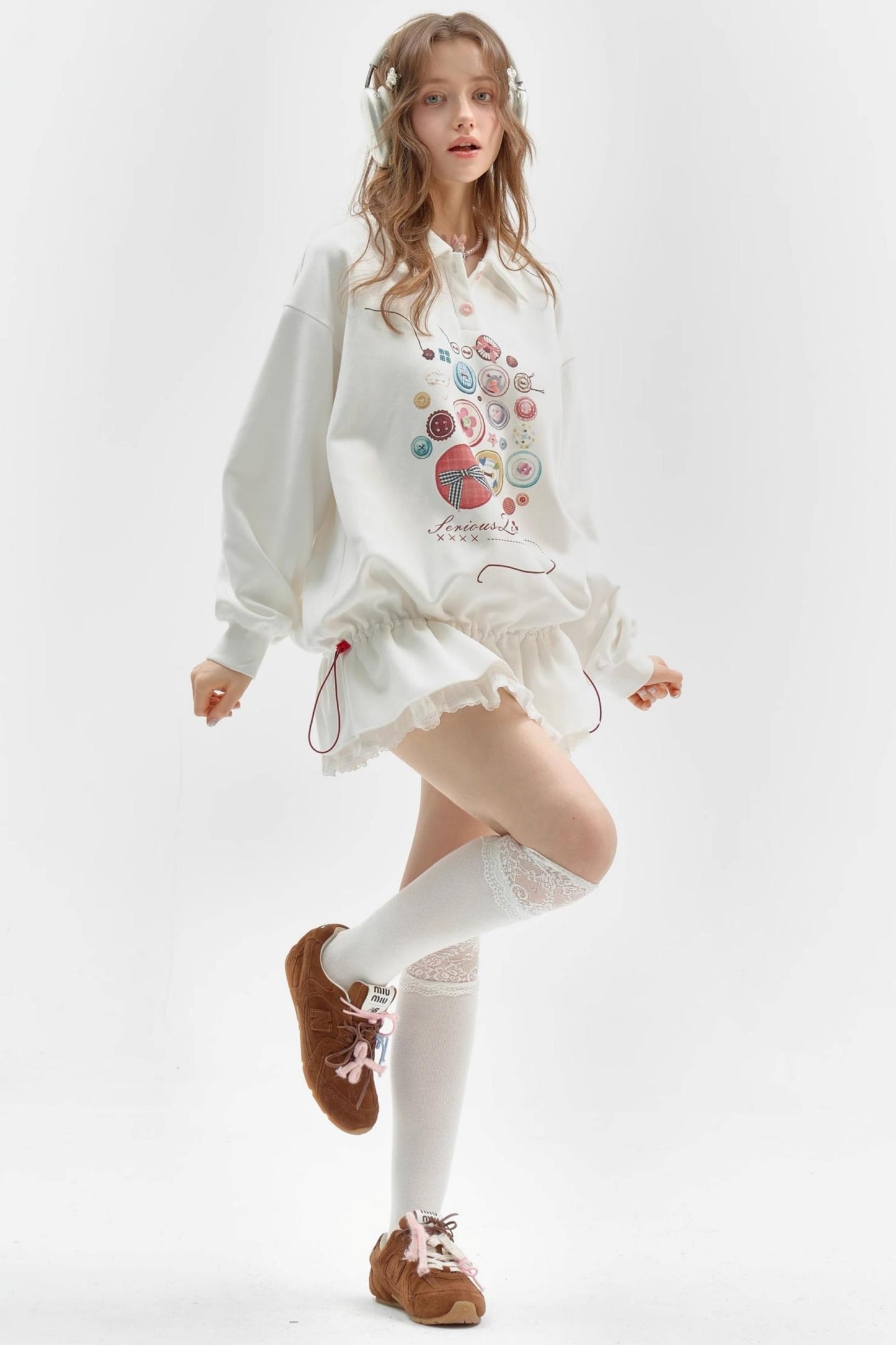 White Polo Collar Retro Dress