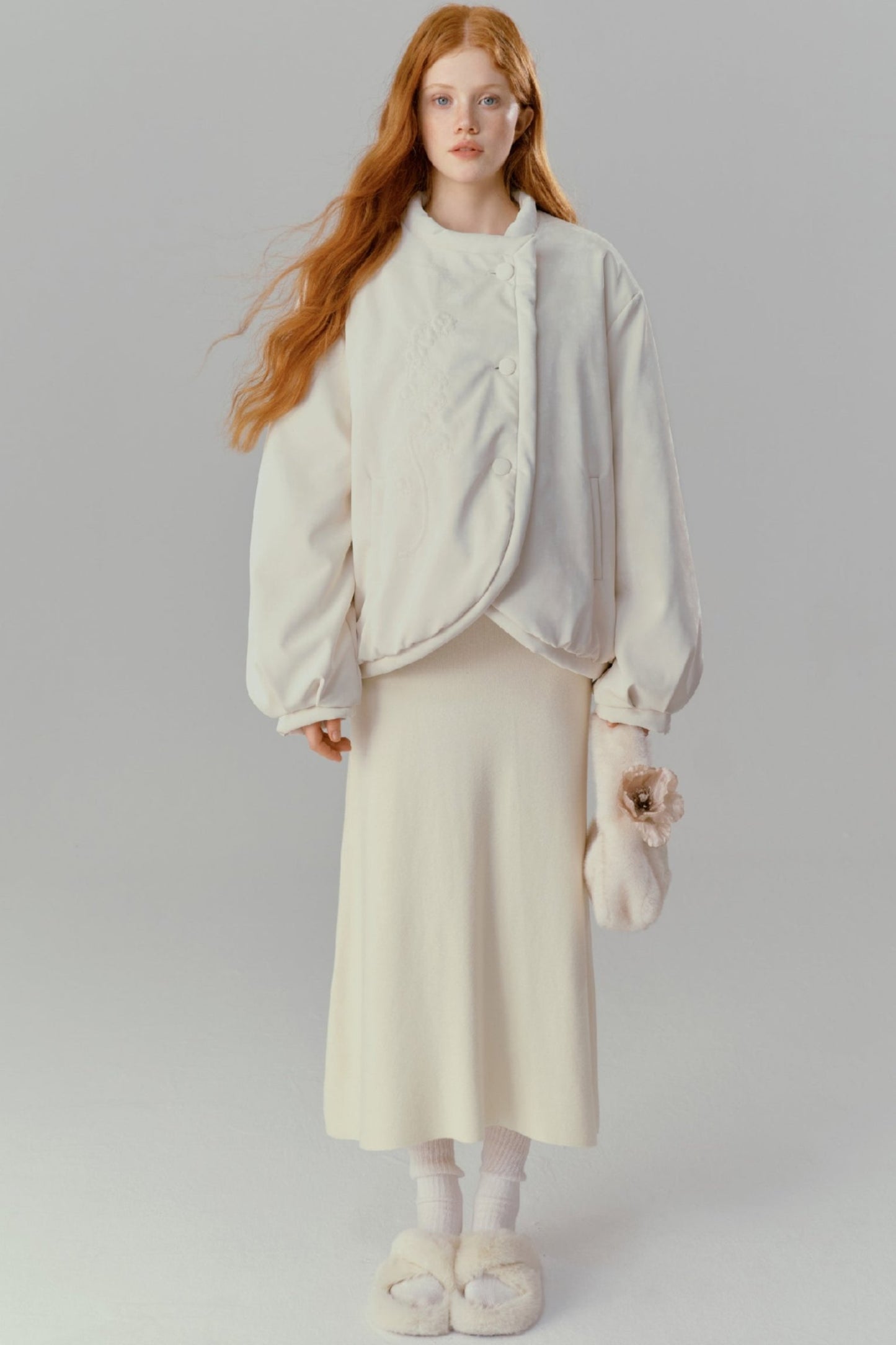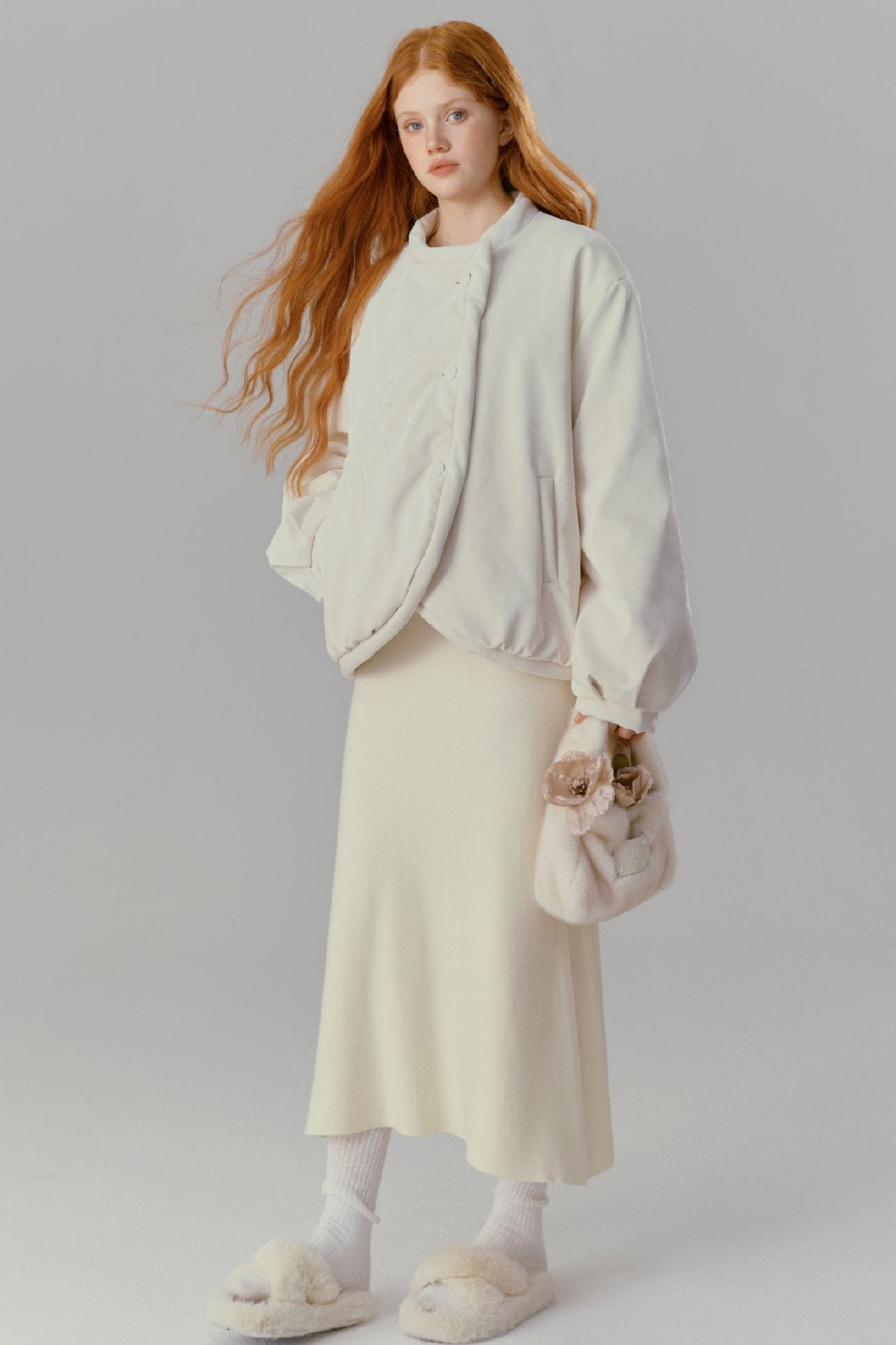 | サイズ | 後中の着丈(㎝/in) | 胸囲(㎝/in) | 袖丈(㎝/in) | 肩幅(㎝/in) | 袖口(㎝/in) | 裾周り(㎝/in) |