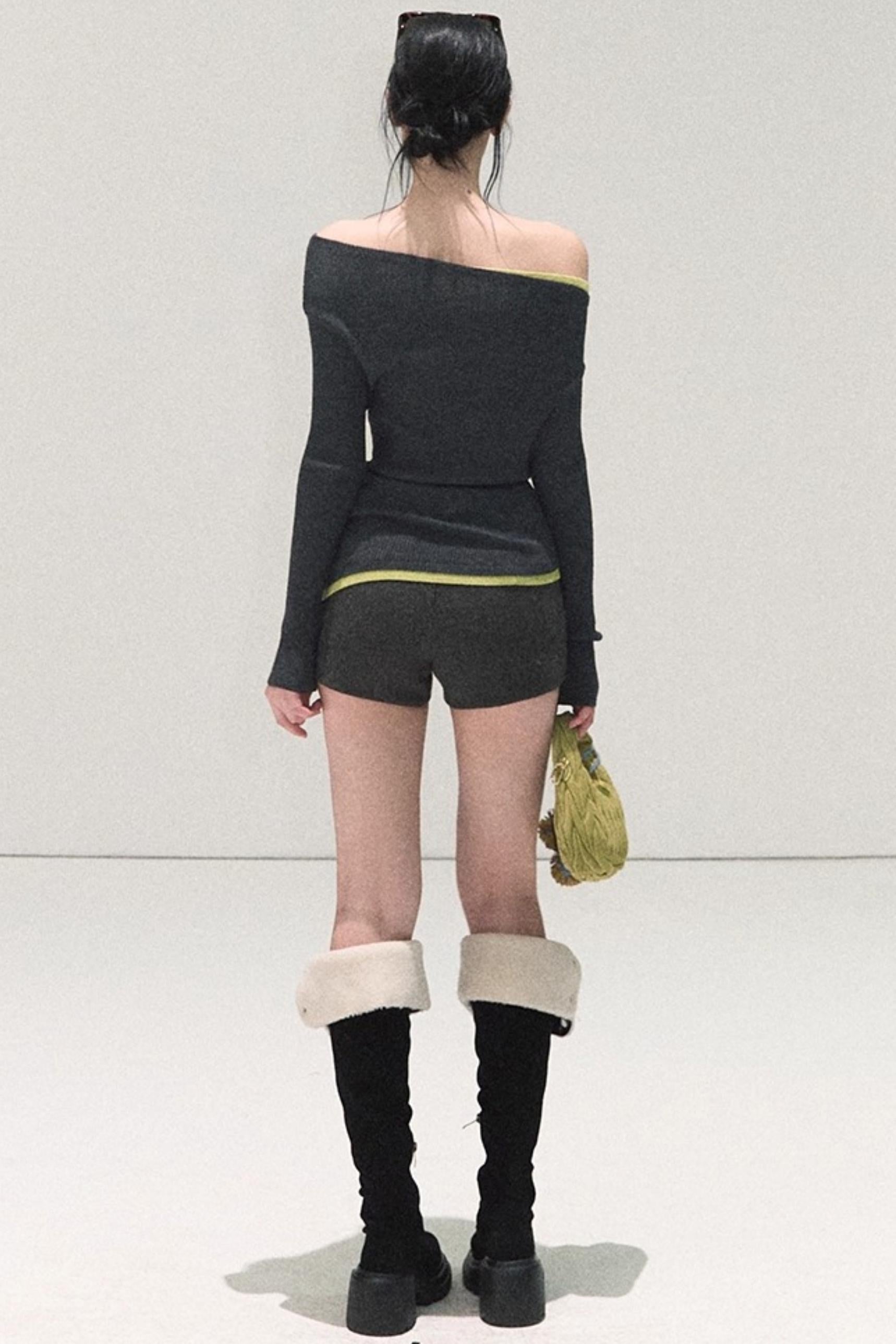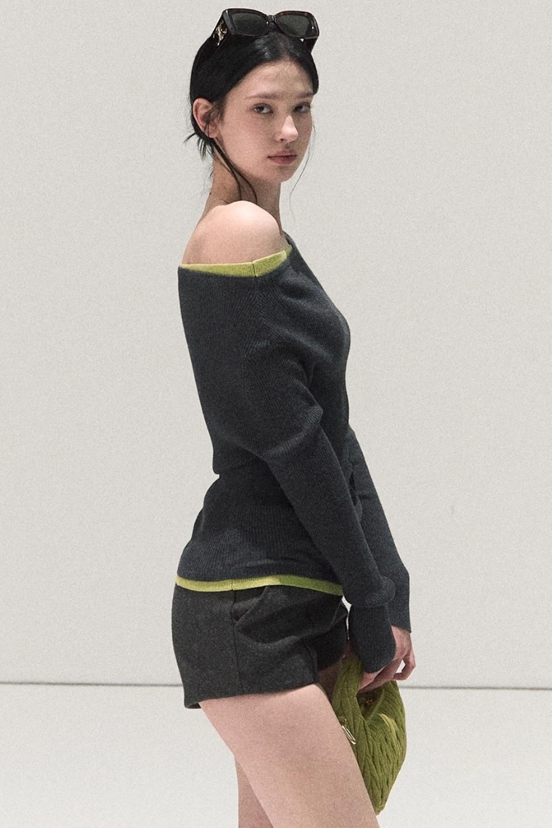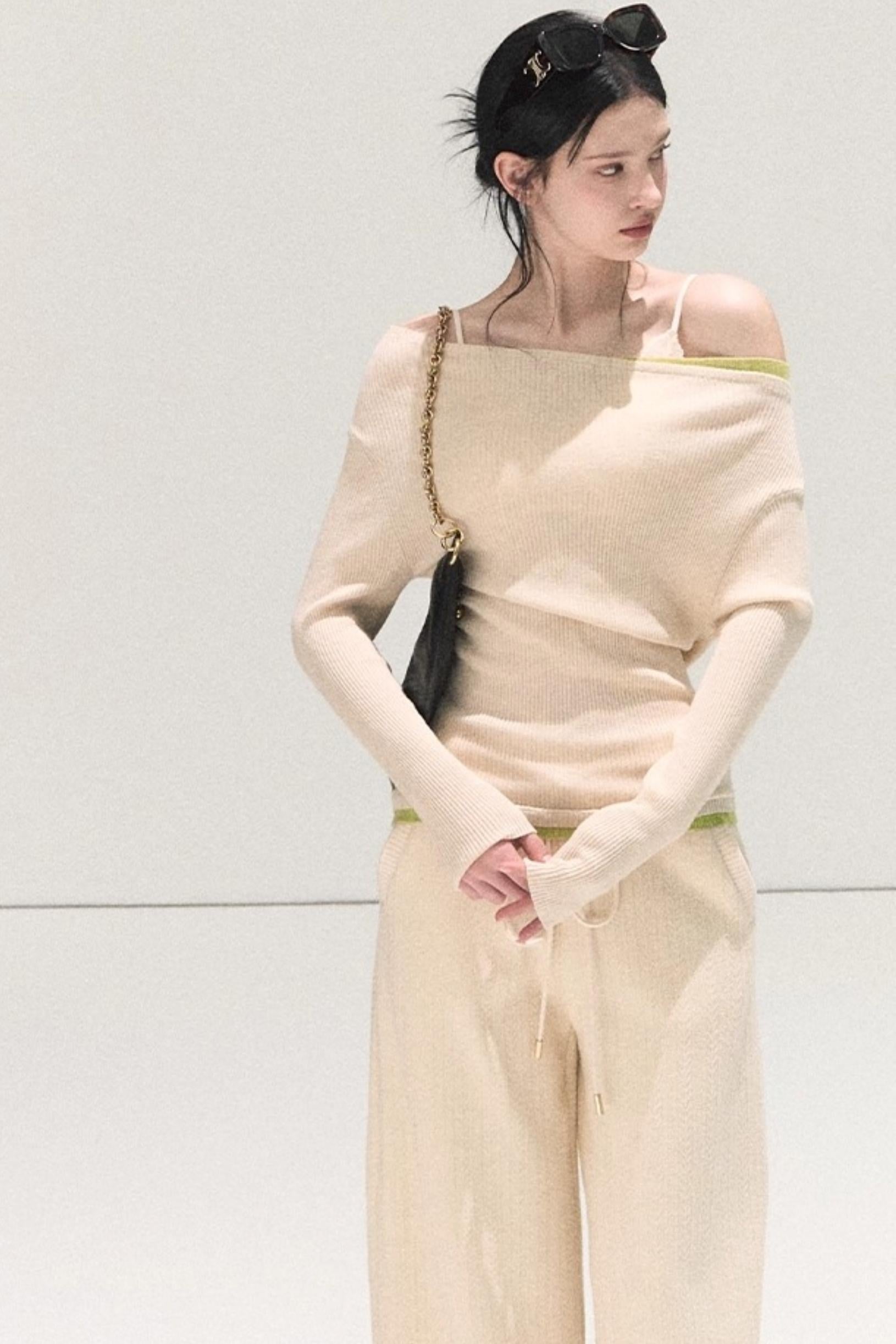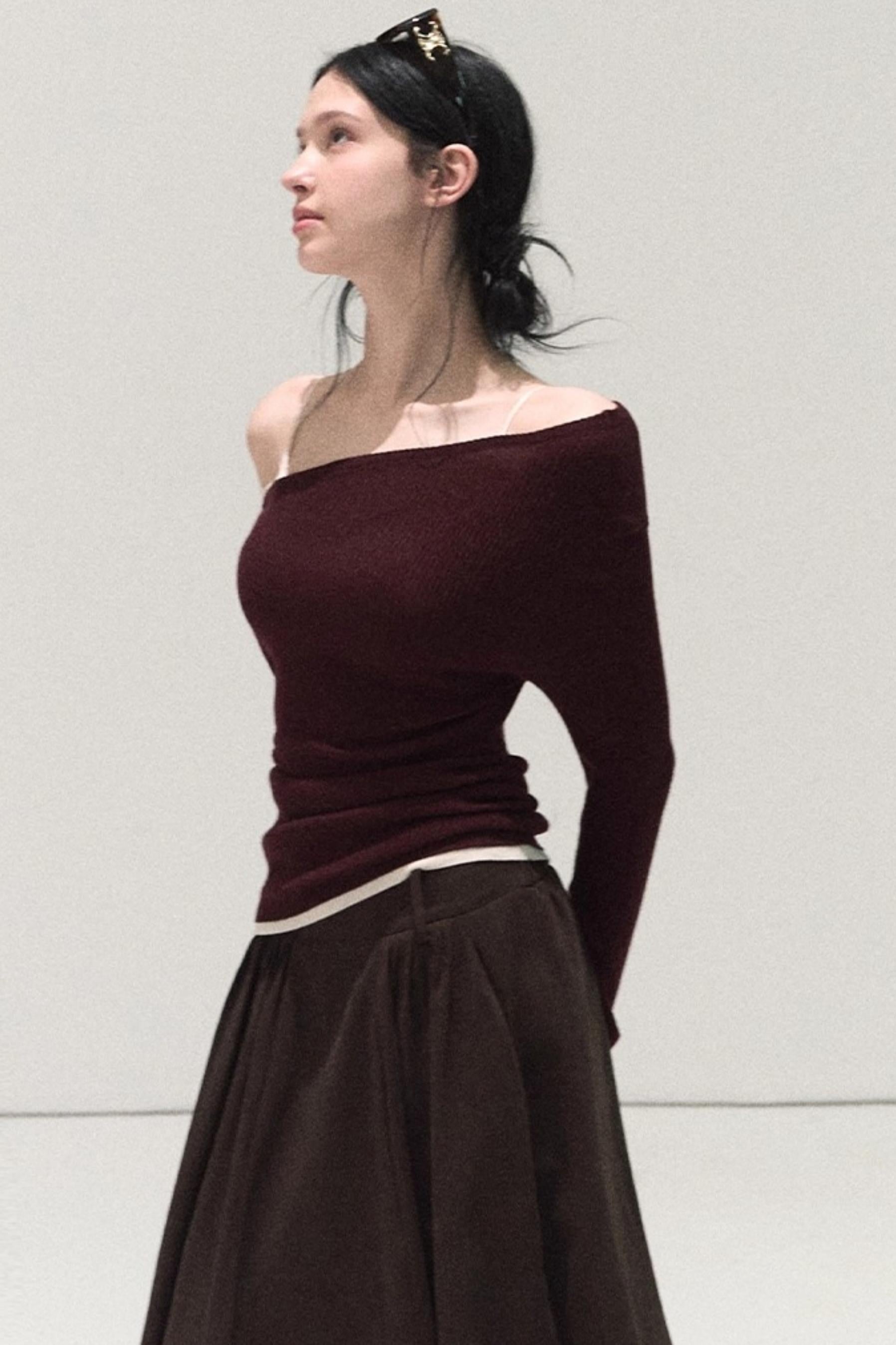 Wool Off-Shoulder Knit Top