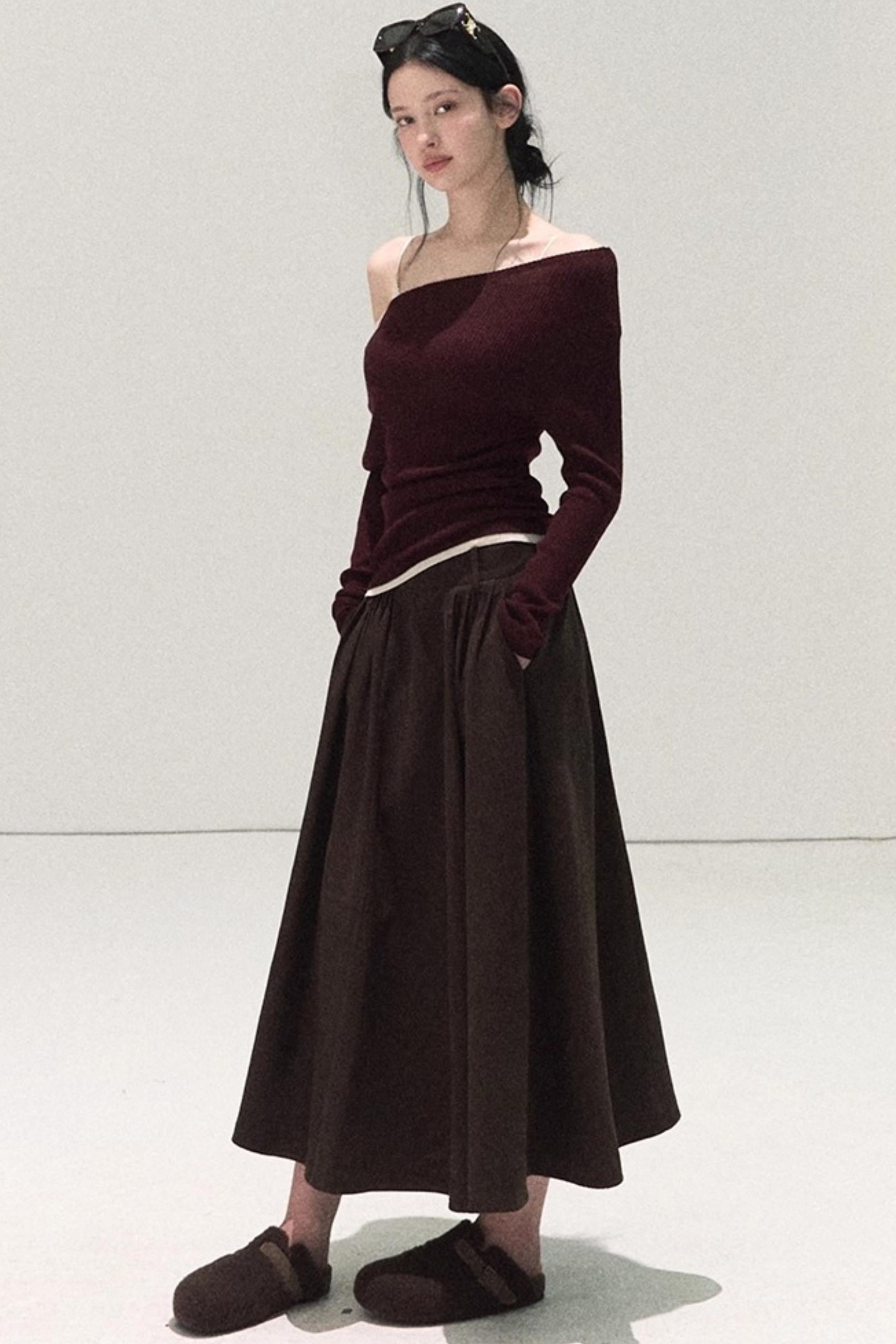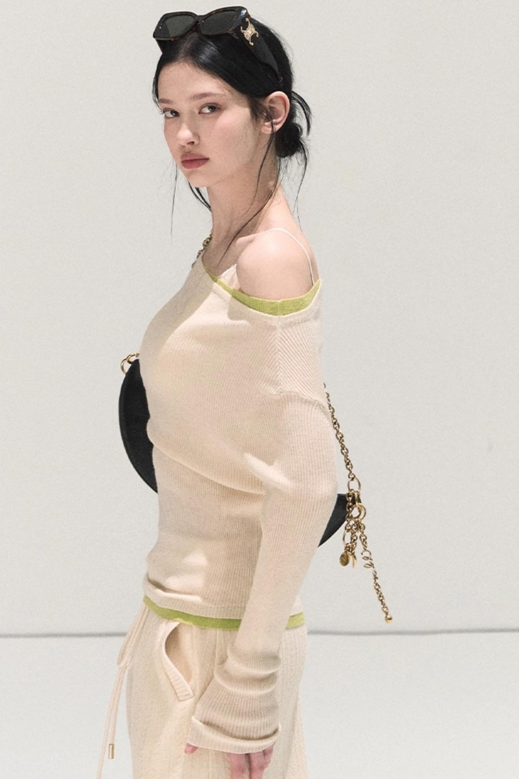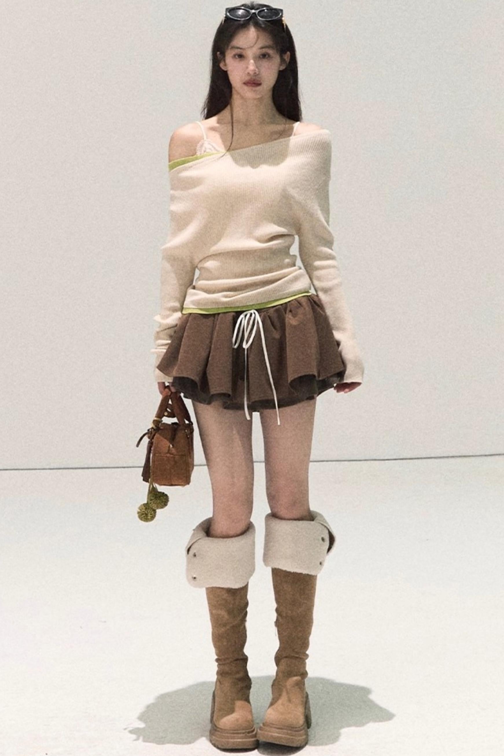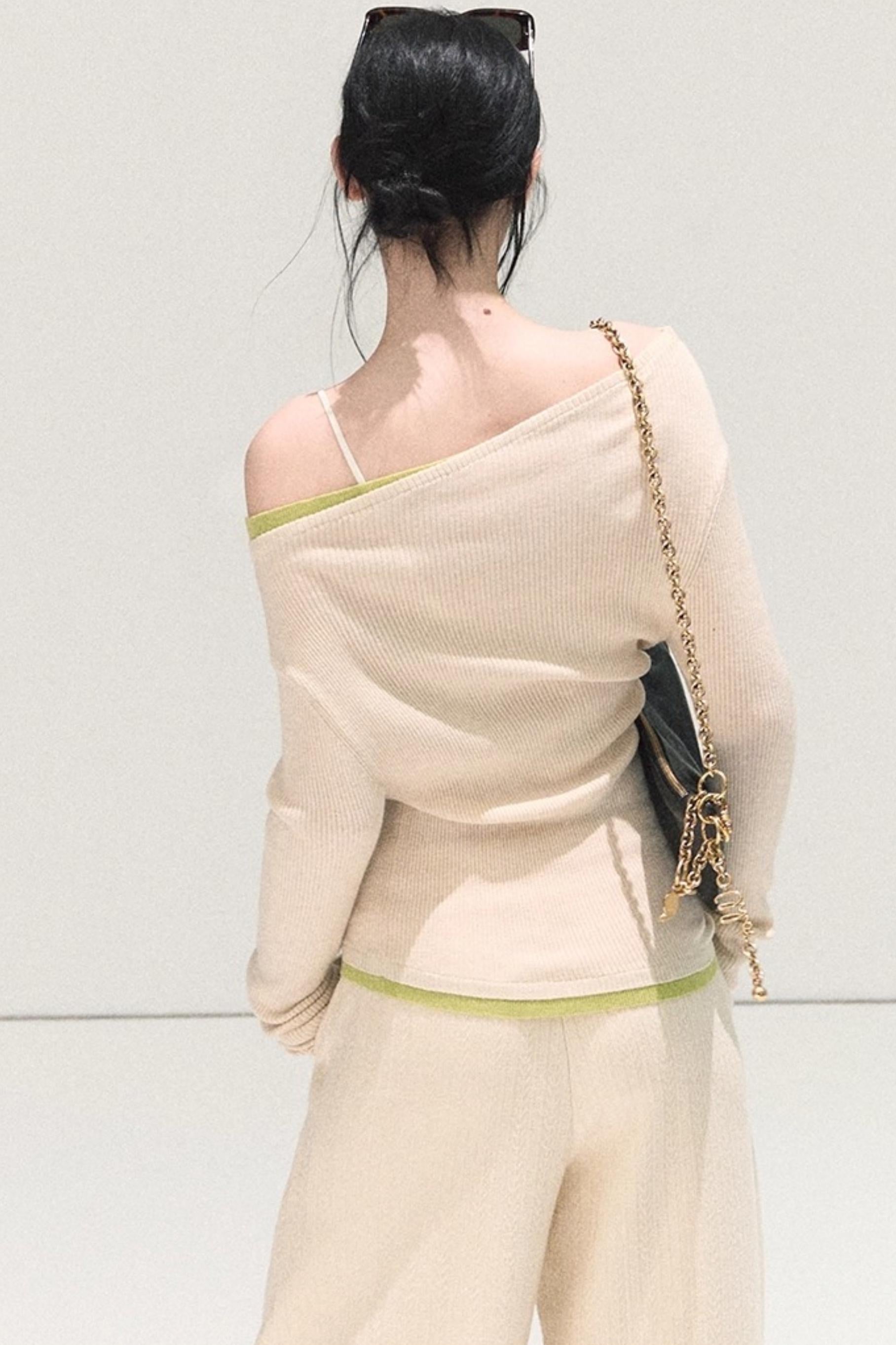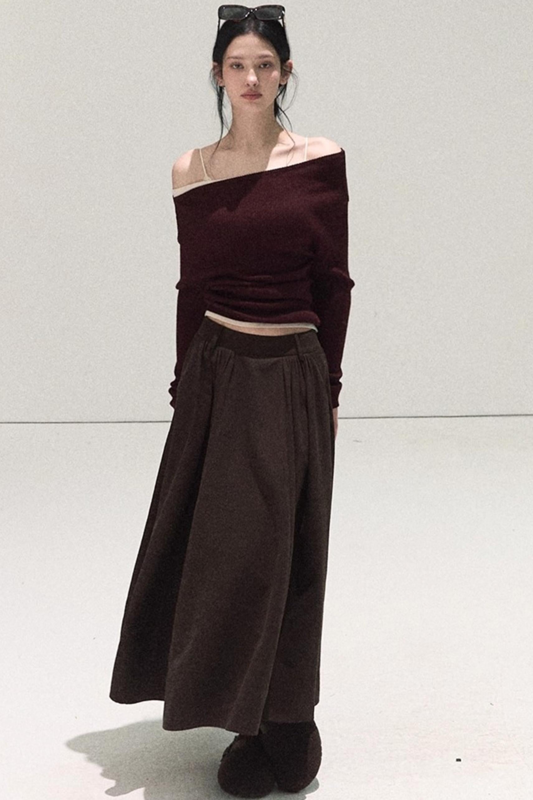 Wool Off-Shoulder Knit Top