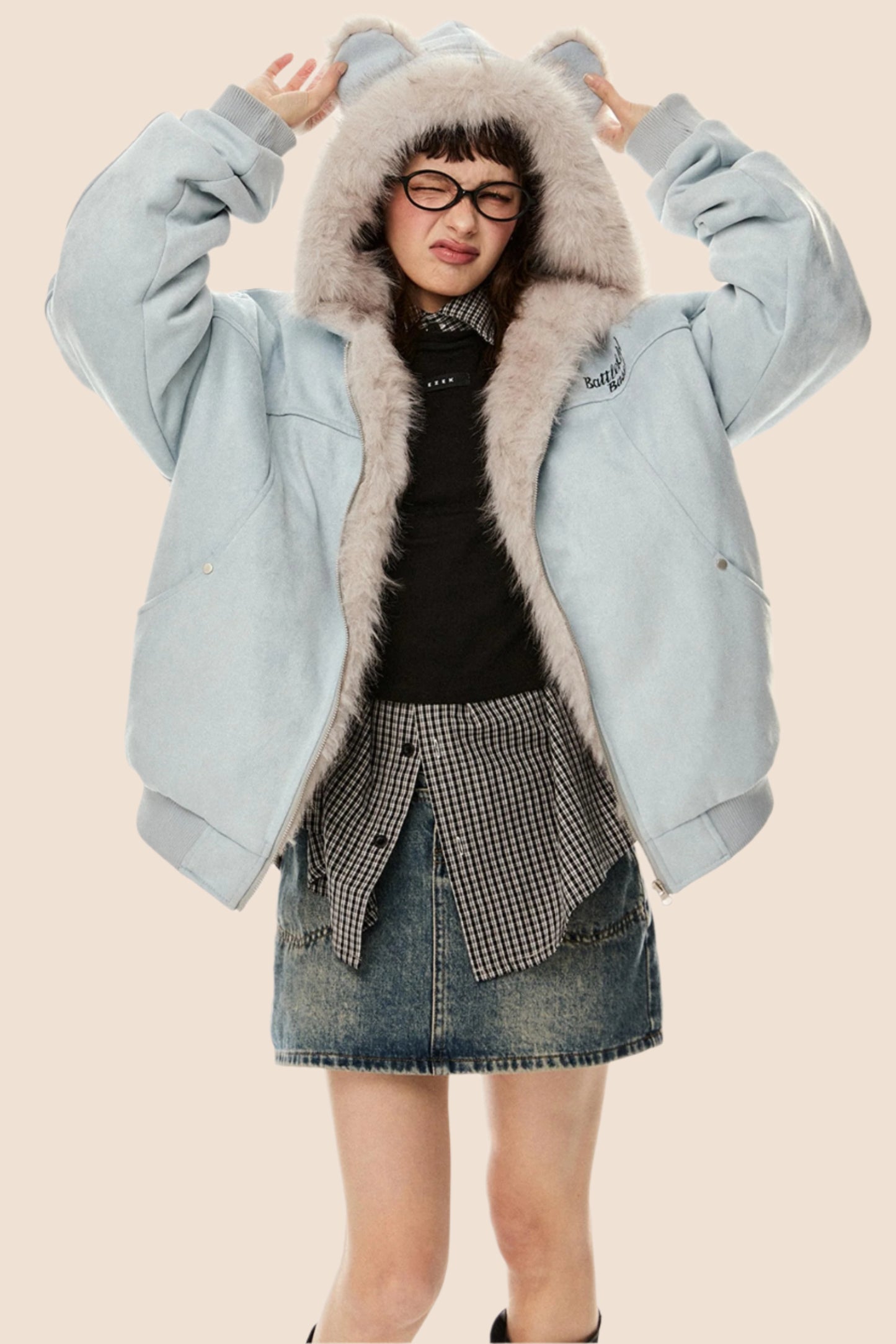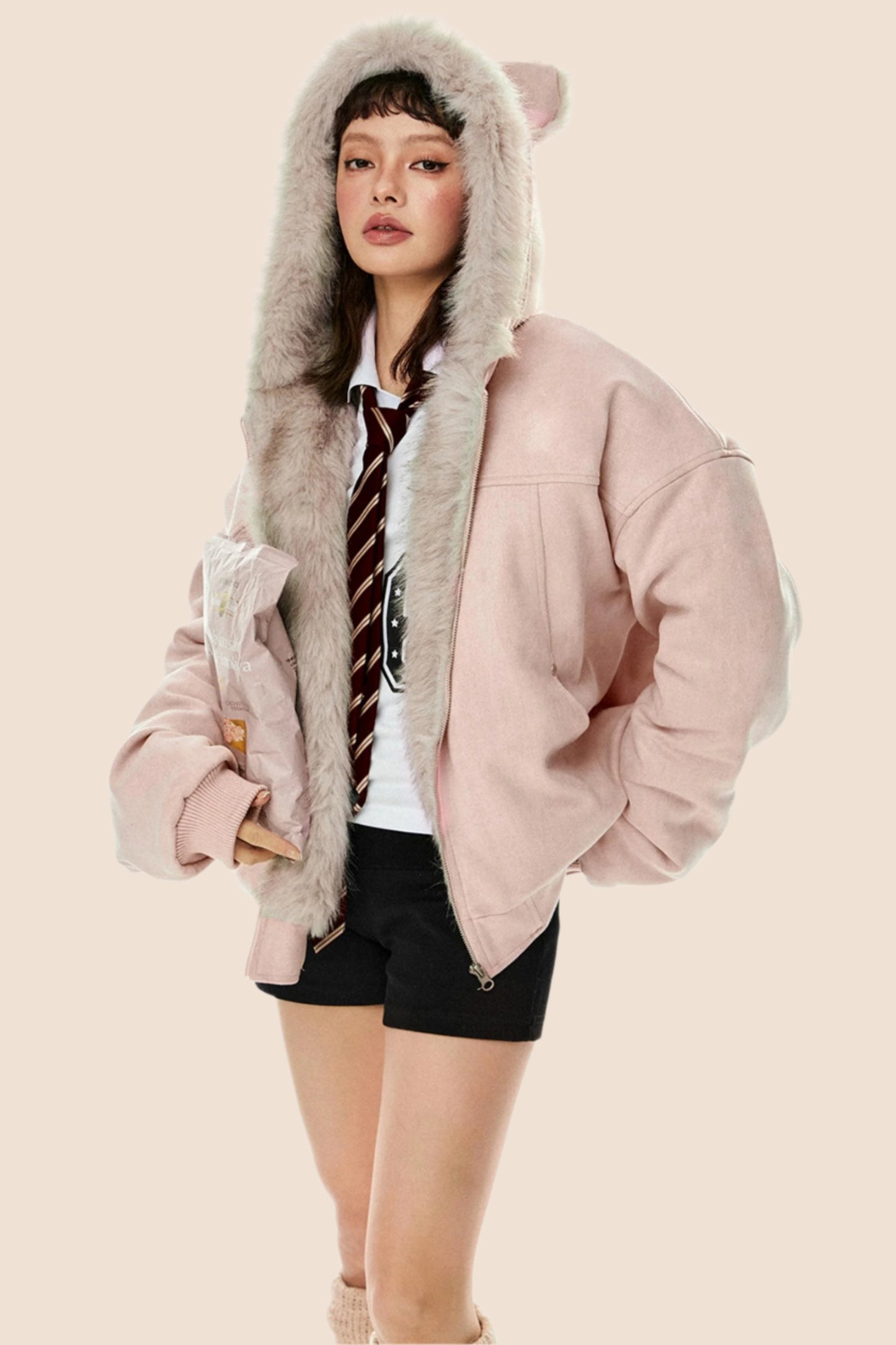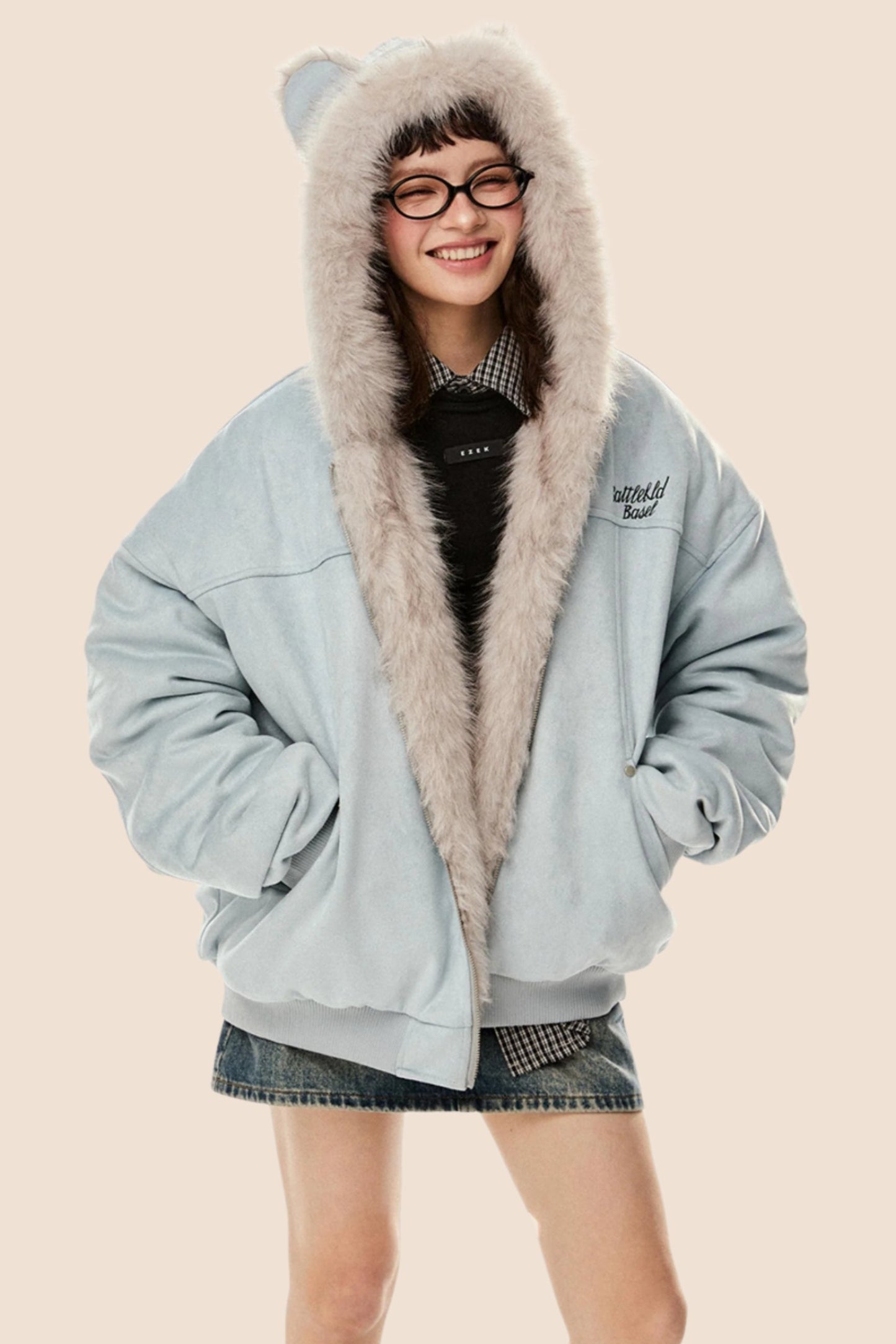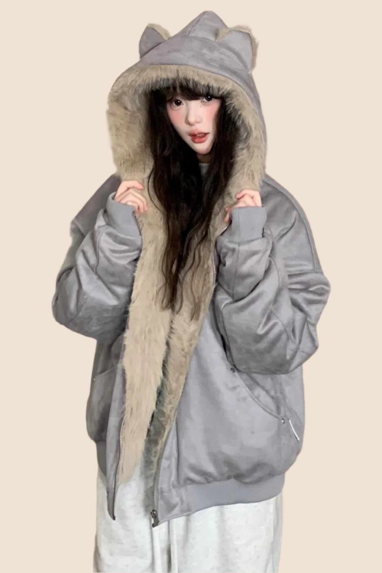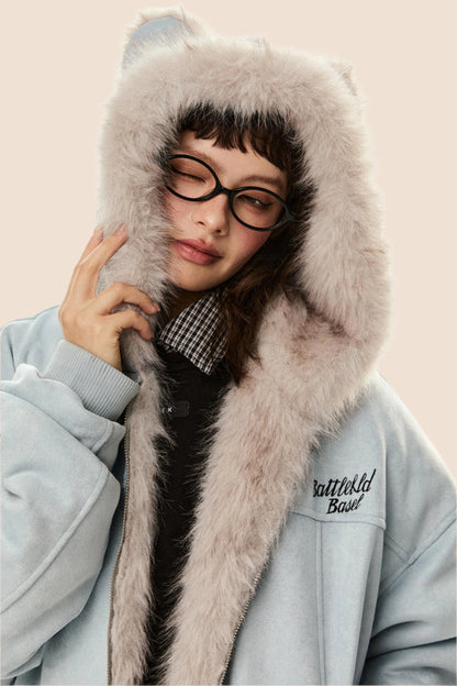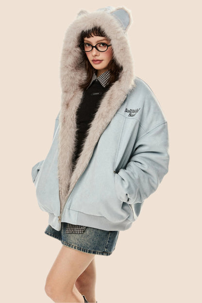 Wool Suede Fur Hooded Jacket